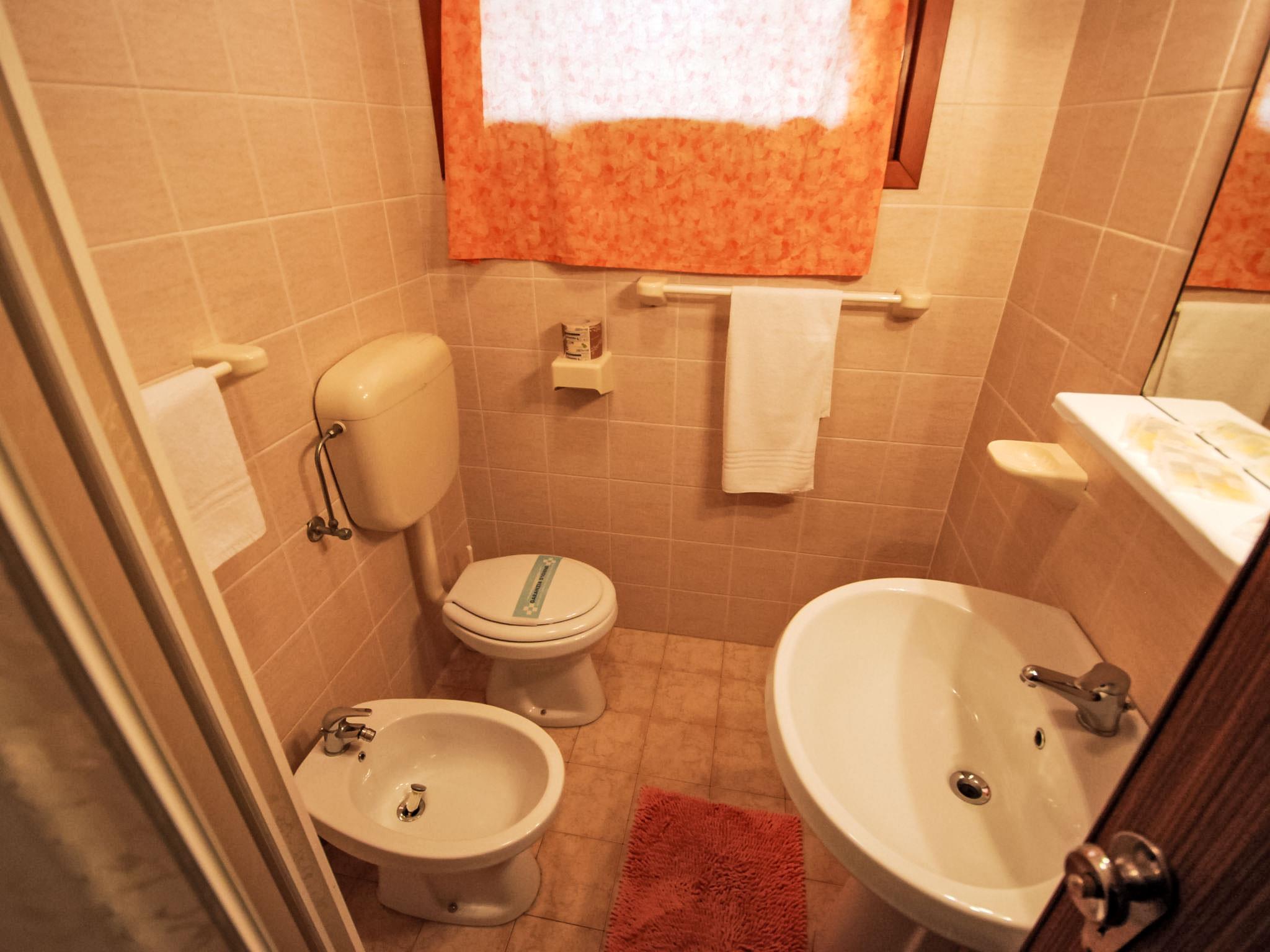 3-room apartment 40 m2. Bright, simple and practical furnishings: living/dining room with 1 double sofabed, dining table and TV. 1 room with 2 beds. 1 room with 1 double bed. Kitchenette (4 hot plates, oven, freezer). Shower/bidet/WC. Air-conditioning. No heating option. Facilities: children's high chair, baby cot (extra). Internet (WiFi, free). Please note: non-smokers only. Maximum 1 pet/ dog allowed. IT029040B4R0N5KZBJ