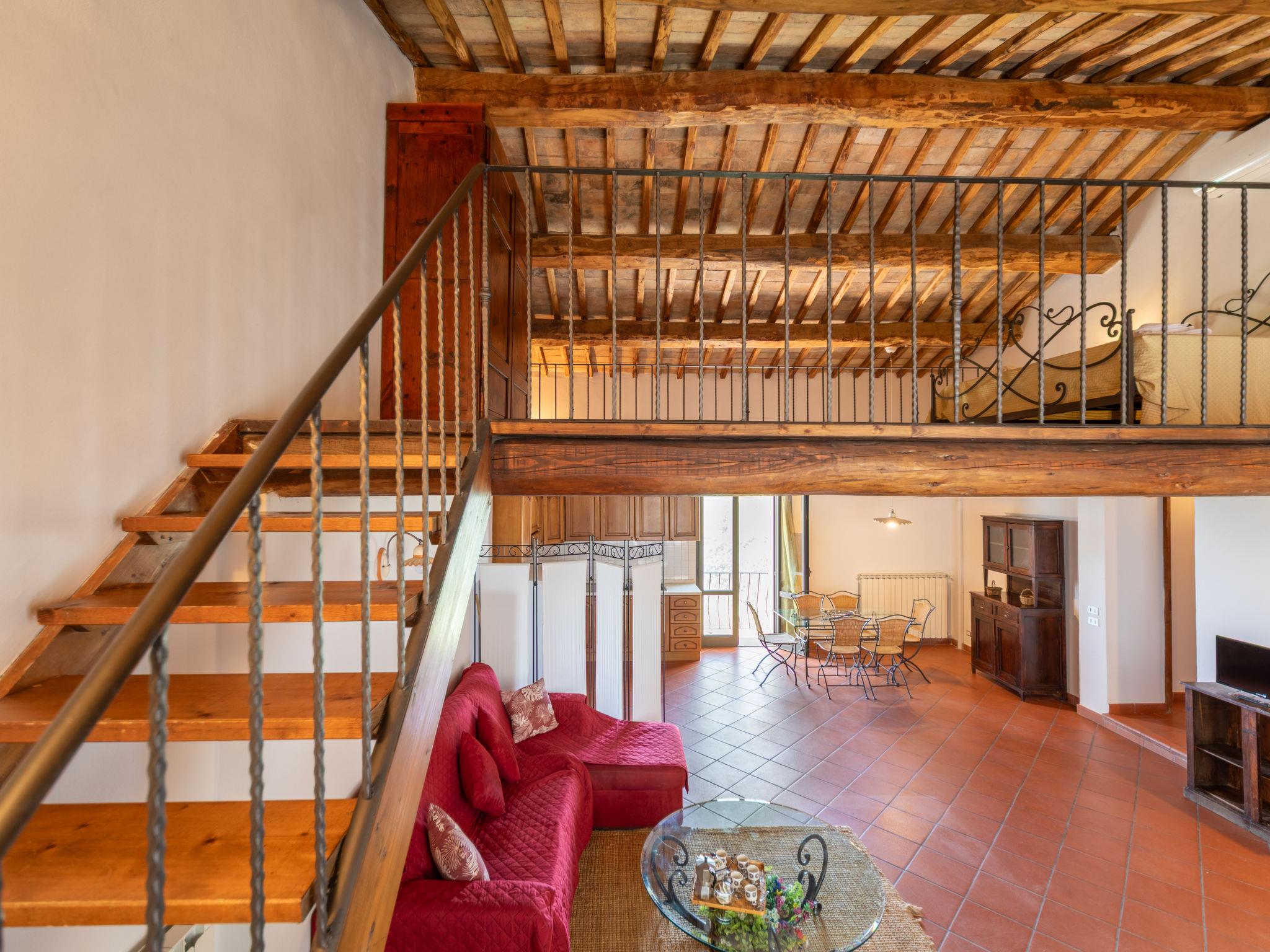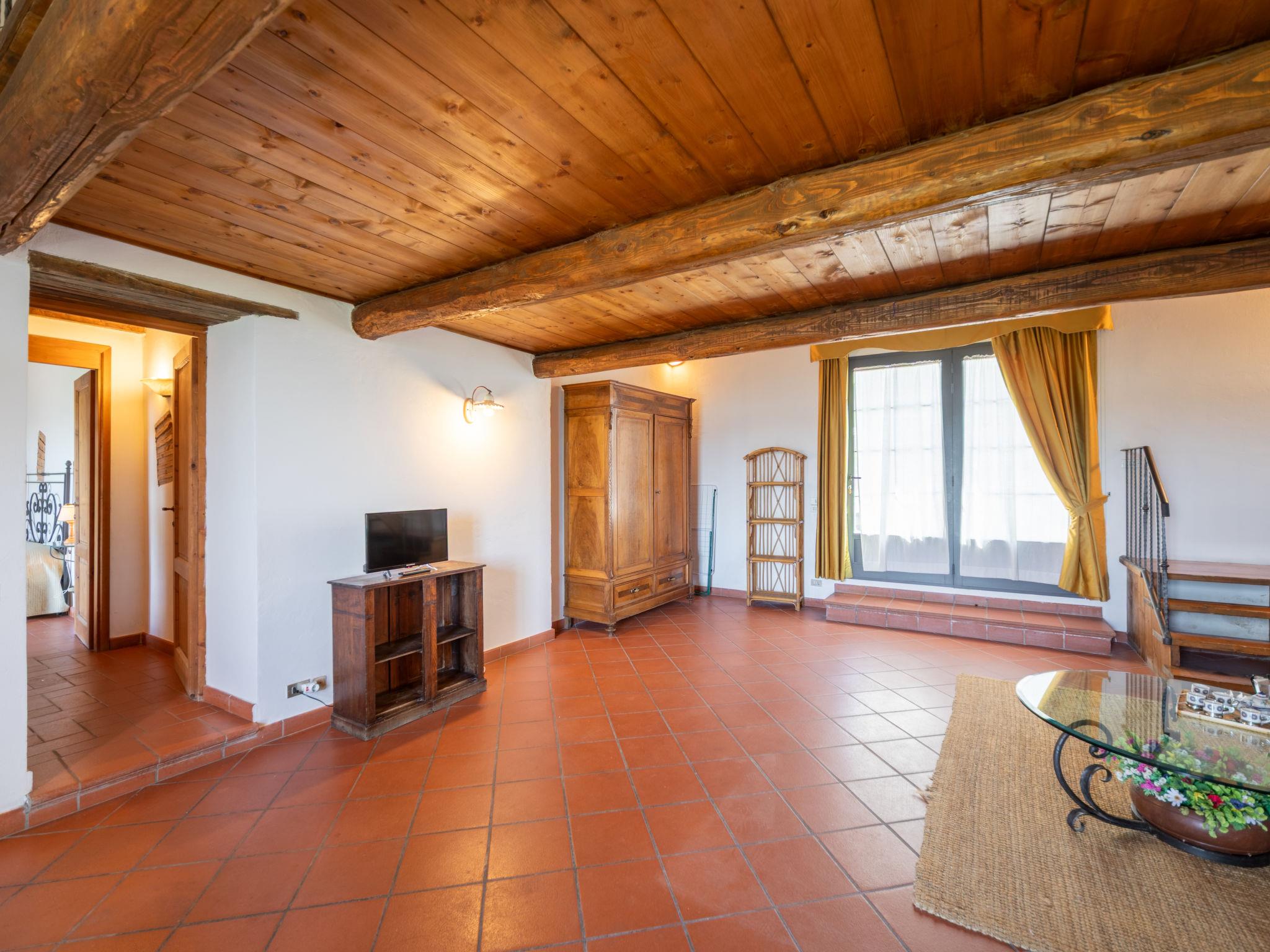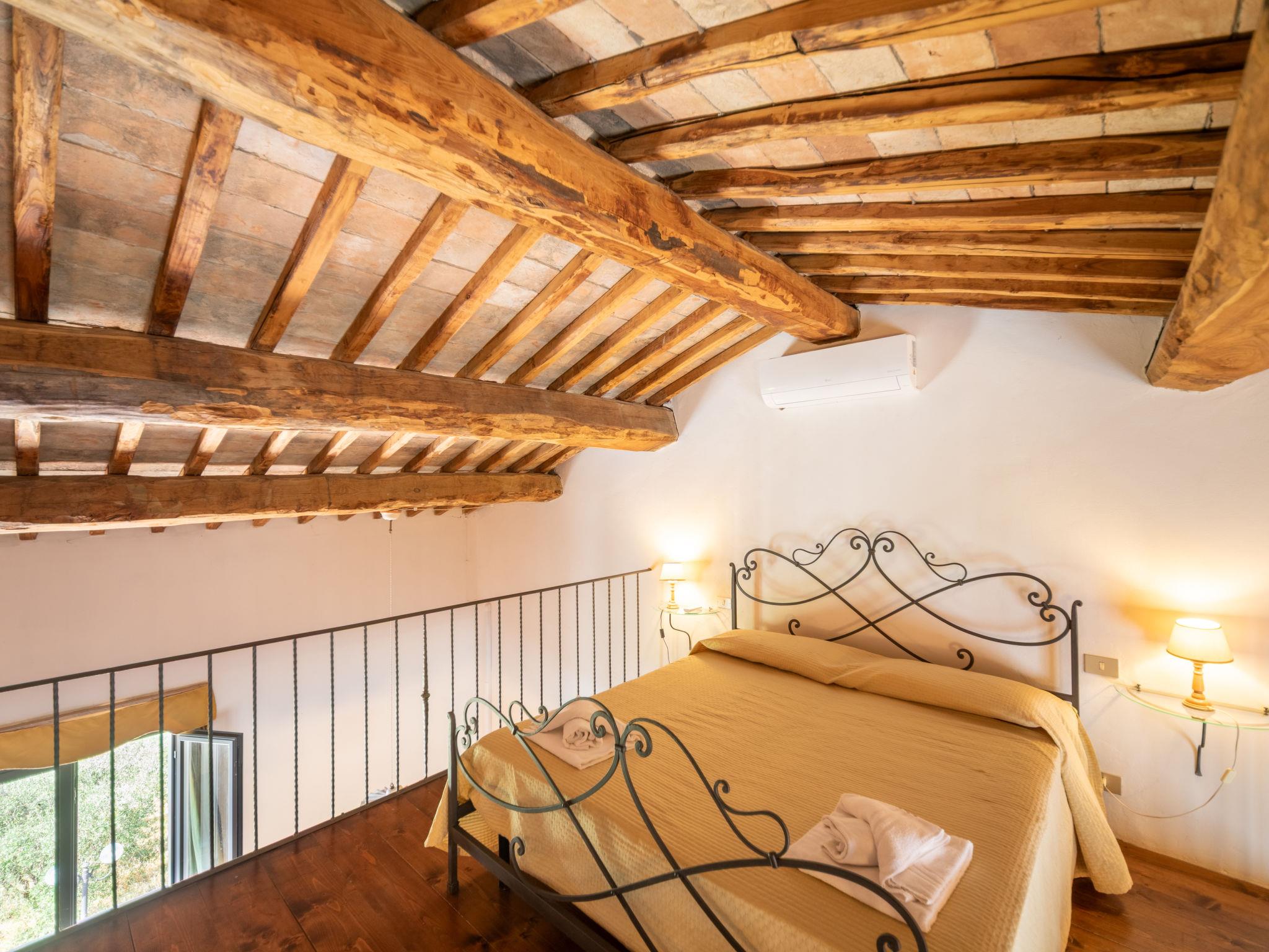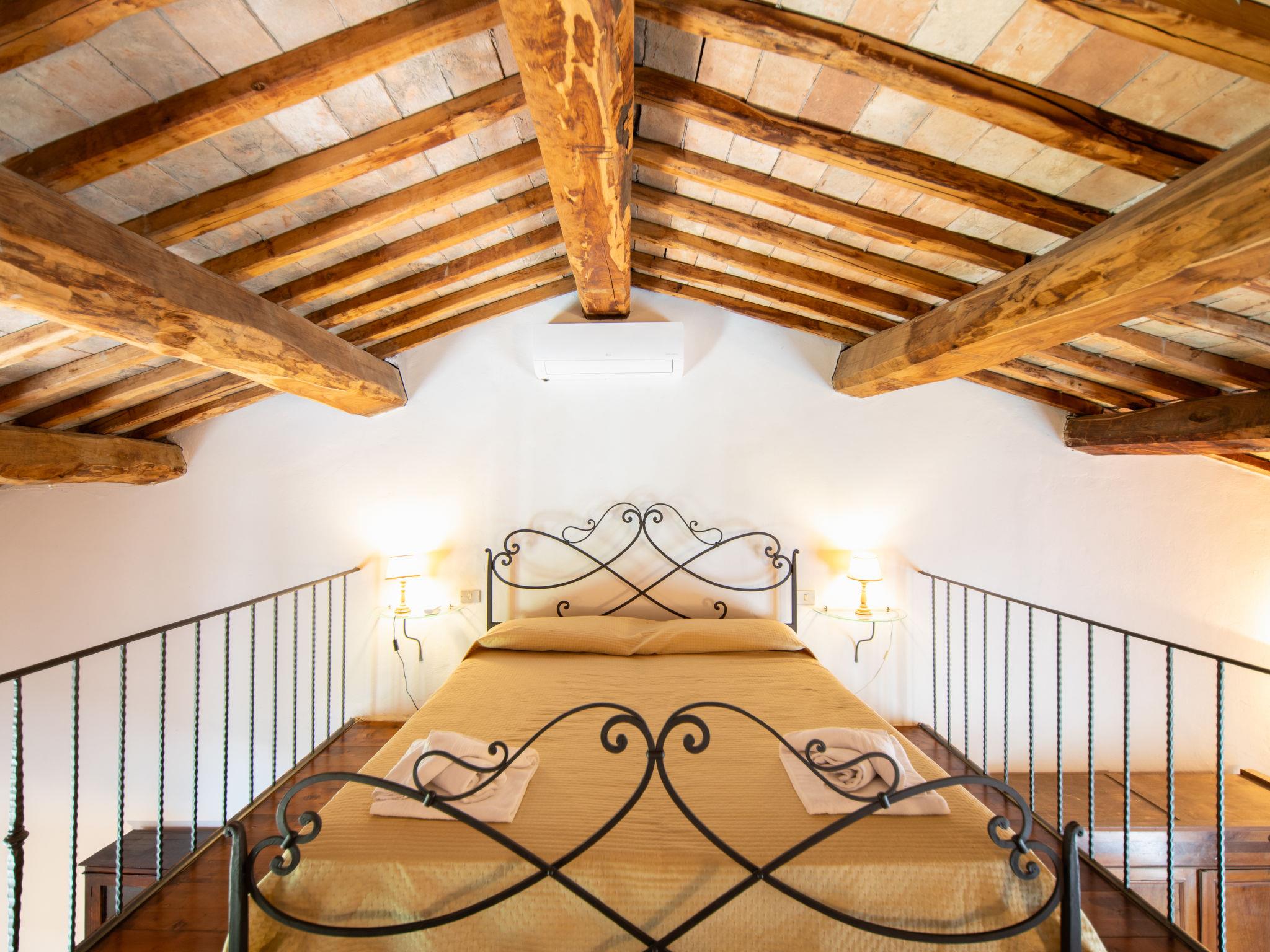 "Antico Loggiato", 11-room semi-detached house on 2 levels, on the ground floor. Object suitable for 14 adults. Rustic and cosy furnishings: living/dining room with shower/bidet/WC and TV. 3 double bedrooms. Living/dining room with shower/bidet/WC and TV. 1 double bedroom with air conditioning. Gallery with 1 double bed. Living/dining room with TV. 1 double bedroom with air conditioning. Living/dining room with shower/bidet/WC and TV. 1 double bedroom with air conditioning. Kitchenette (4 hot plates, toaster, kettle, microwave, freezer). Terrace furniture, barbecue. Panoramic view of the countryside. Facilities: baby cot for up to 2 year olds (extra), hair dryer. Internet (WiFi, free). Maximum 1 pet/ dog allowed. No internal connecting door between the separated properties. IT048033B5S2NHKPIG