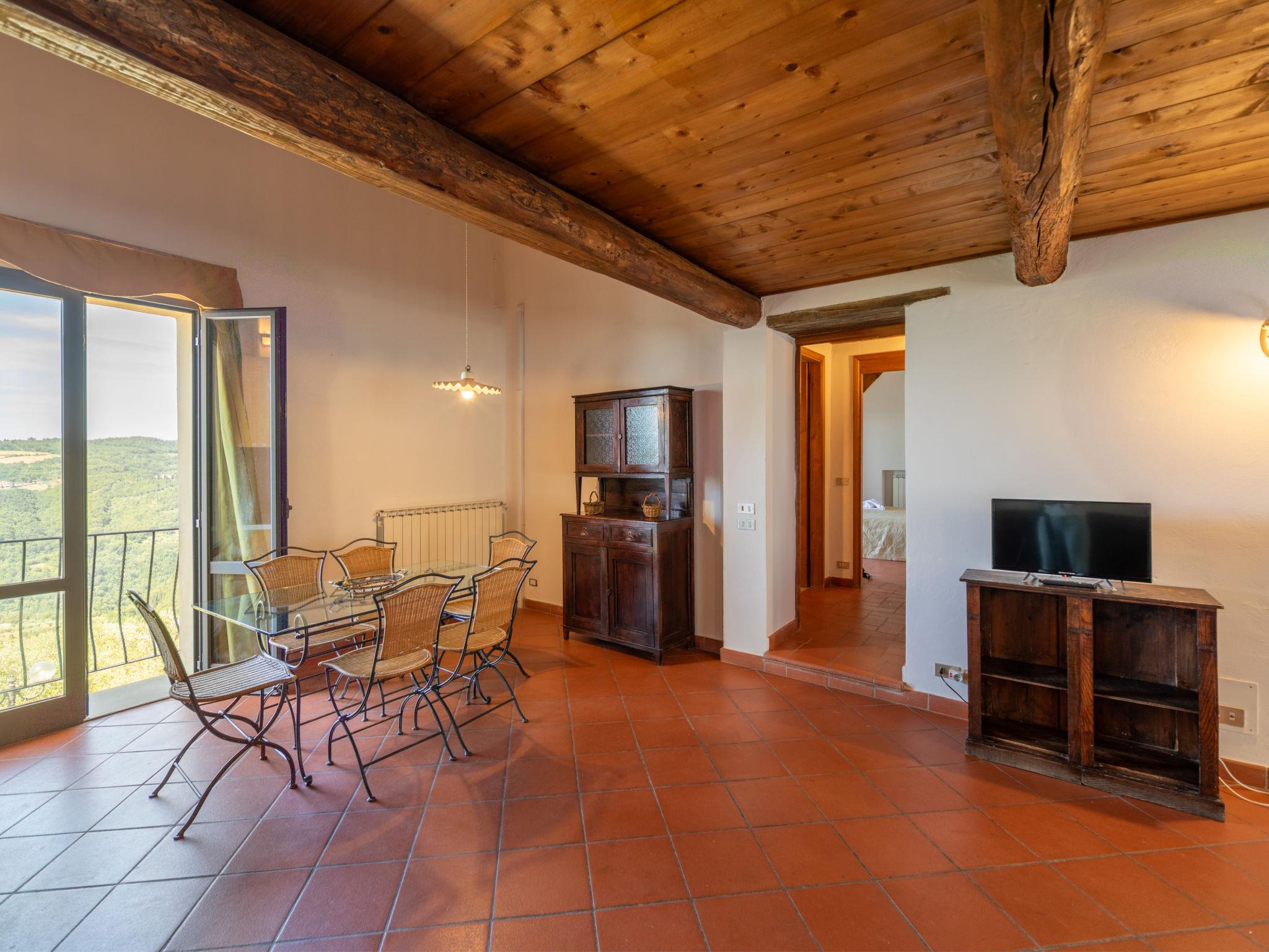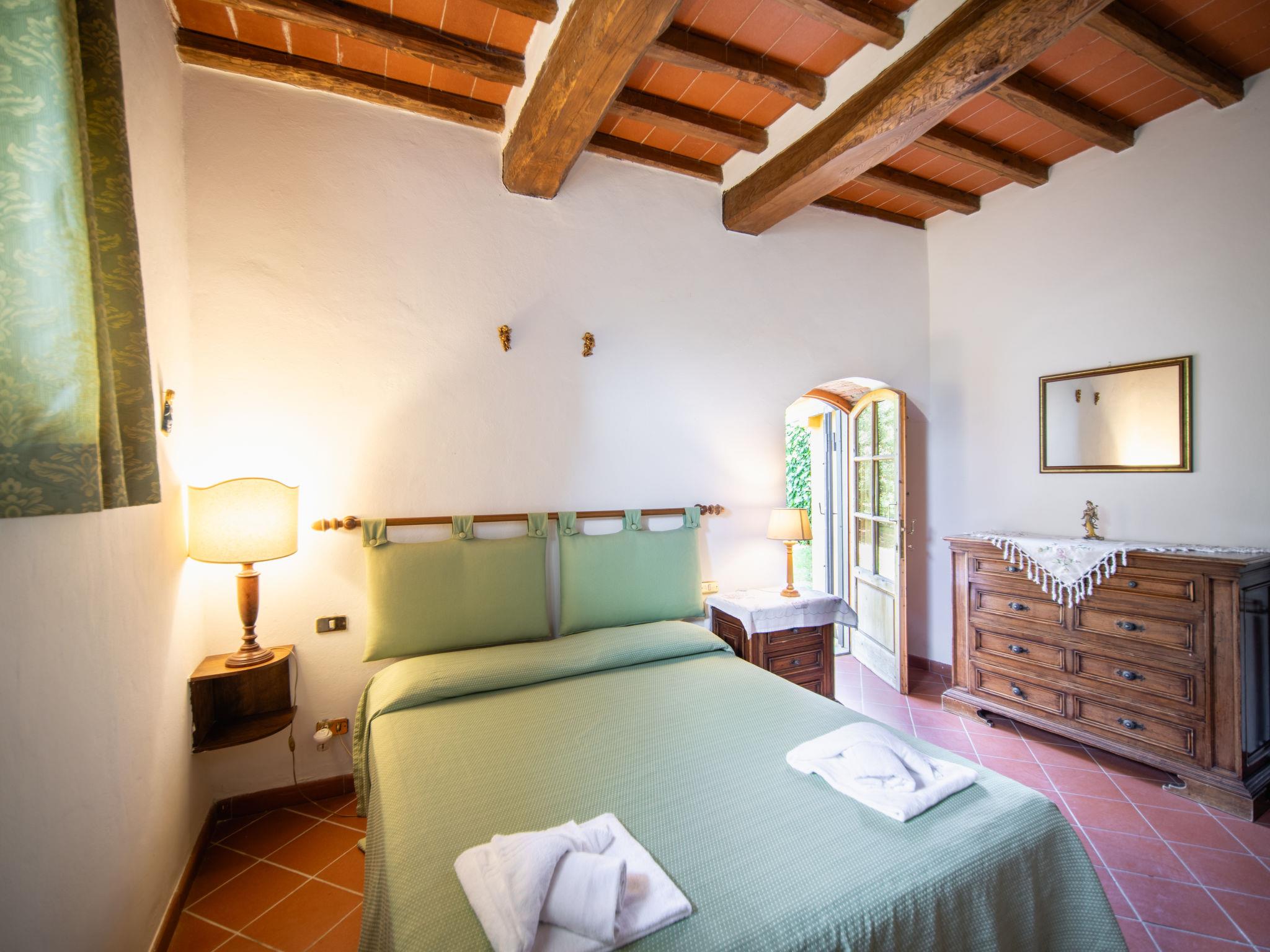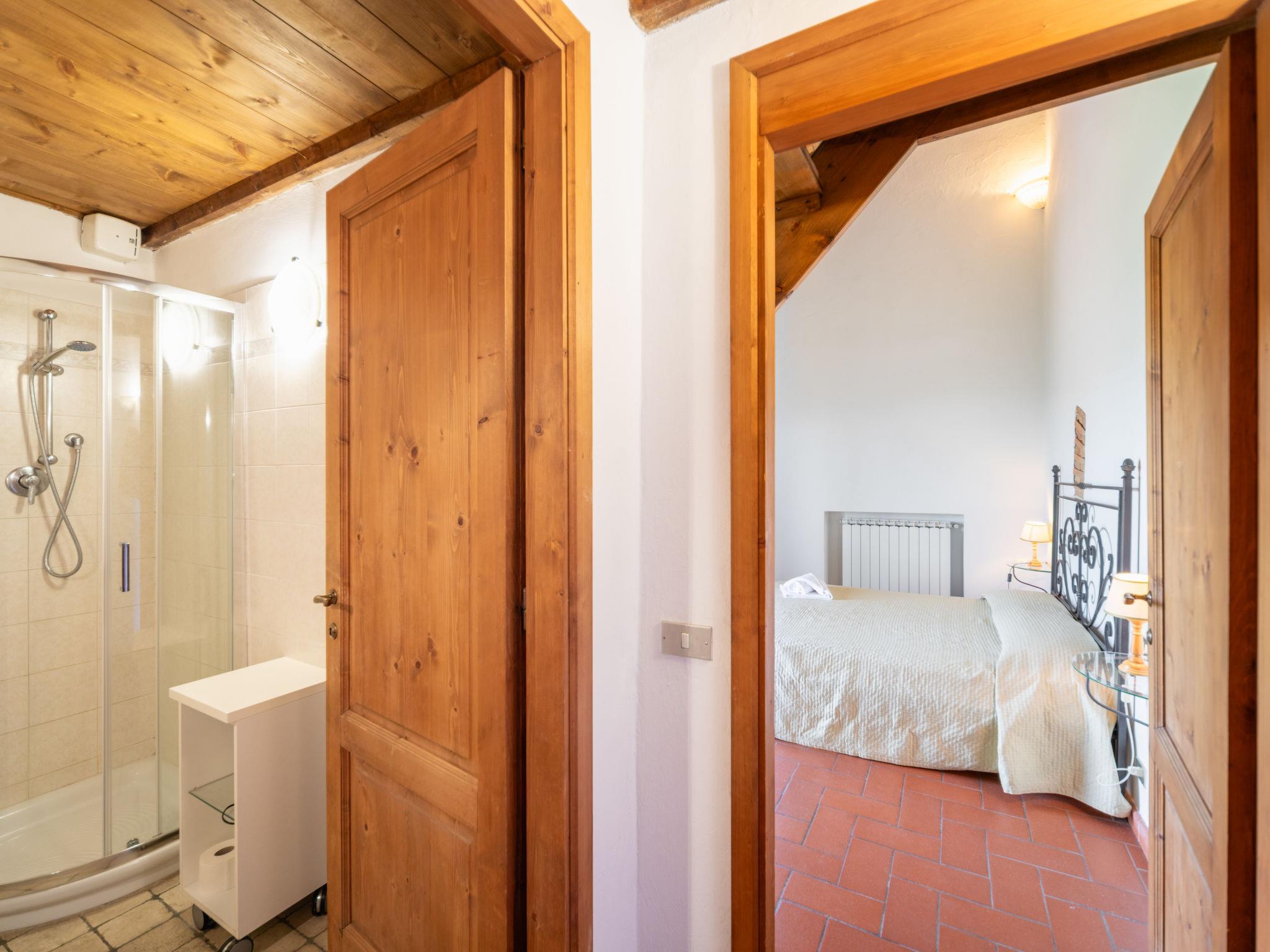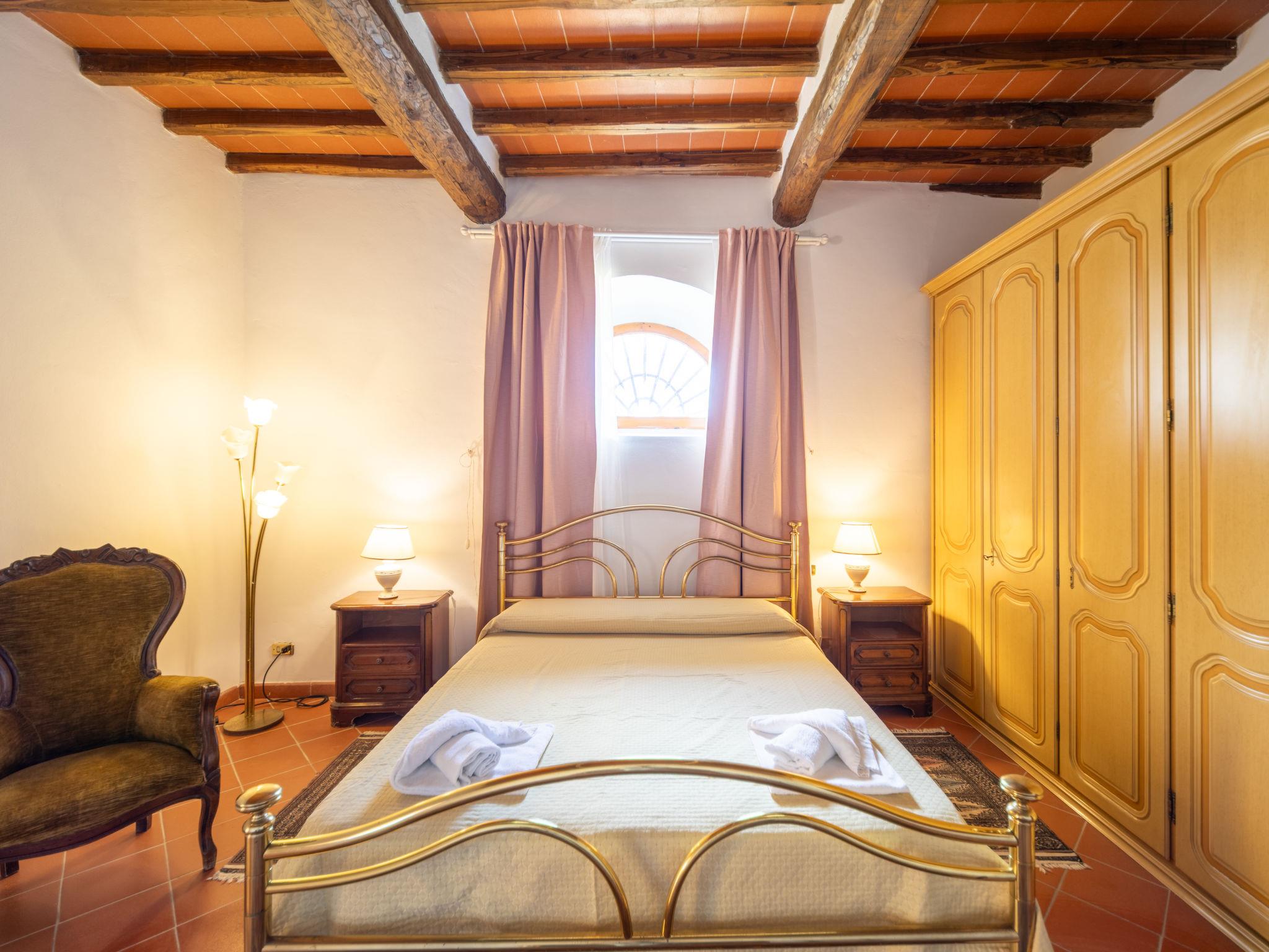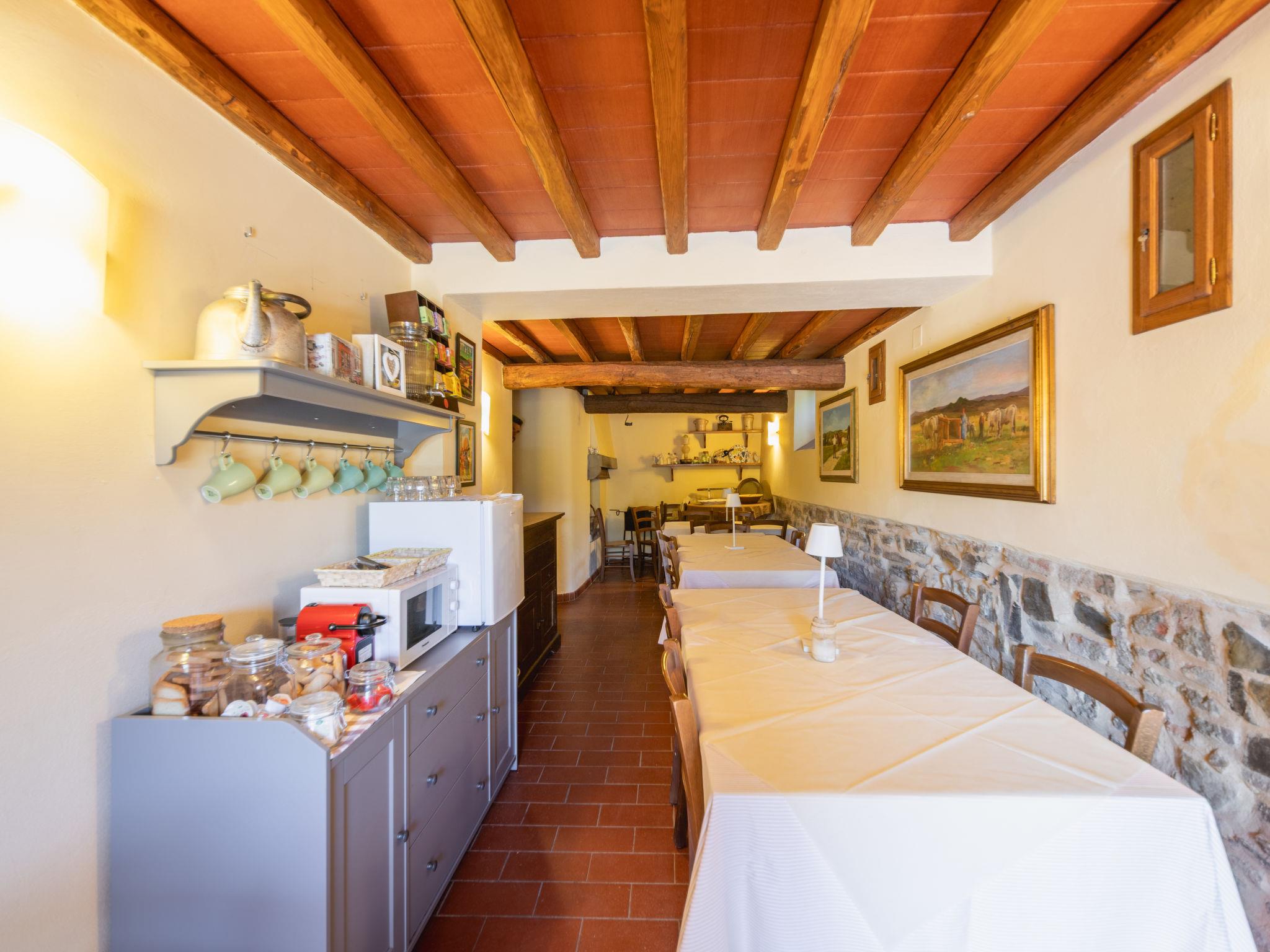"Antico Loggiato", 11-room semi-detached house on 2 levels, on the ground floor. Object suitable for 14 adults. Rustic and cosy furnishings: living/dining room with shower/bidet/WC and TV. 3 double bedrooms. Living/dining room with shower/bidet/WC and TV. 1 double bedroom with air conditioning. Gallery with 1 double bed. Living/dining room with TV. 1 double bedroom with air conditioning. Living/dining room with shower/bidet/WC and TV. 1 double bedroom with air conditioning. Kitchenette (4 hot plates, toaster, kettle, microwave, freezer). Terrace furniture, barbecue. Panoramic view of the countryside. Facilities: baby cot for up to 2 year olds (extra), hair dryer. Internet (WiFi, free). Maximum 1 pet/ dog allowed. No internal connecting door between the separated properties. IT048033B5S2NHKPIG
