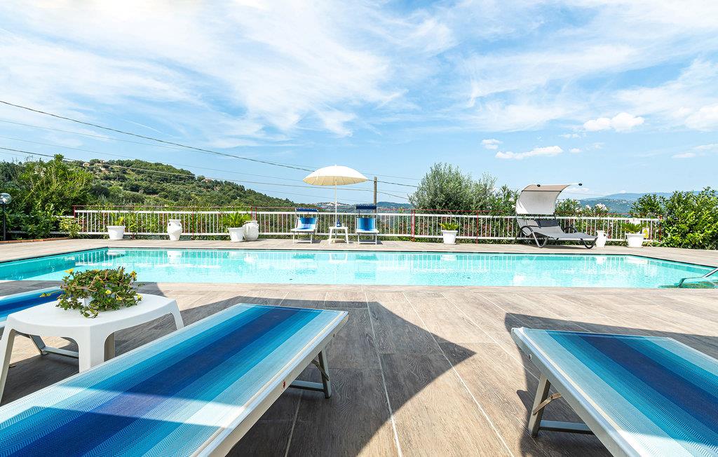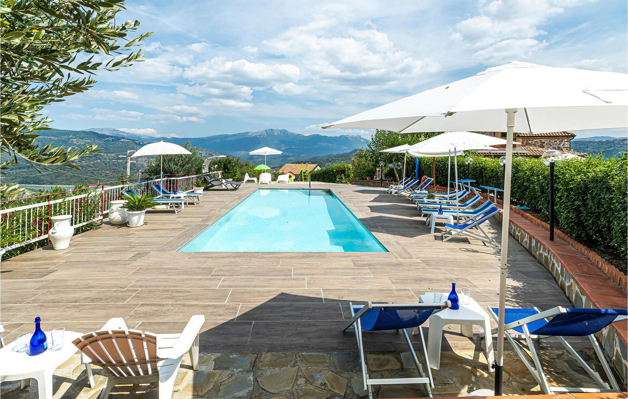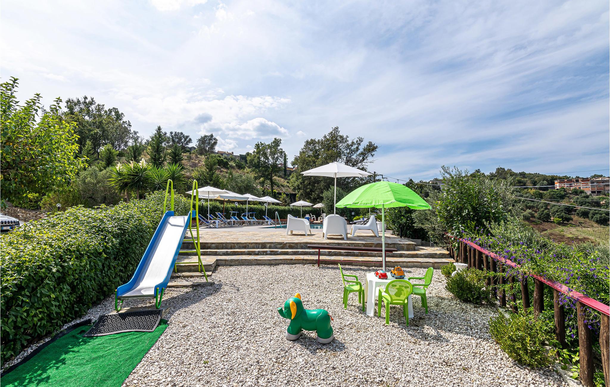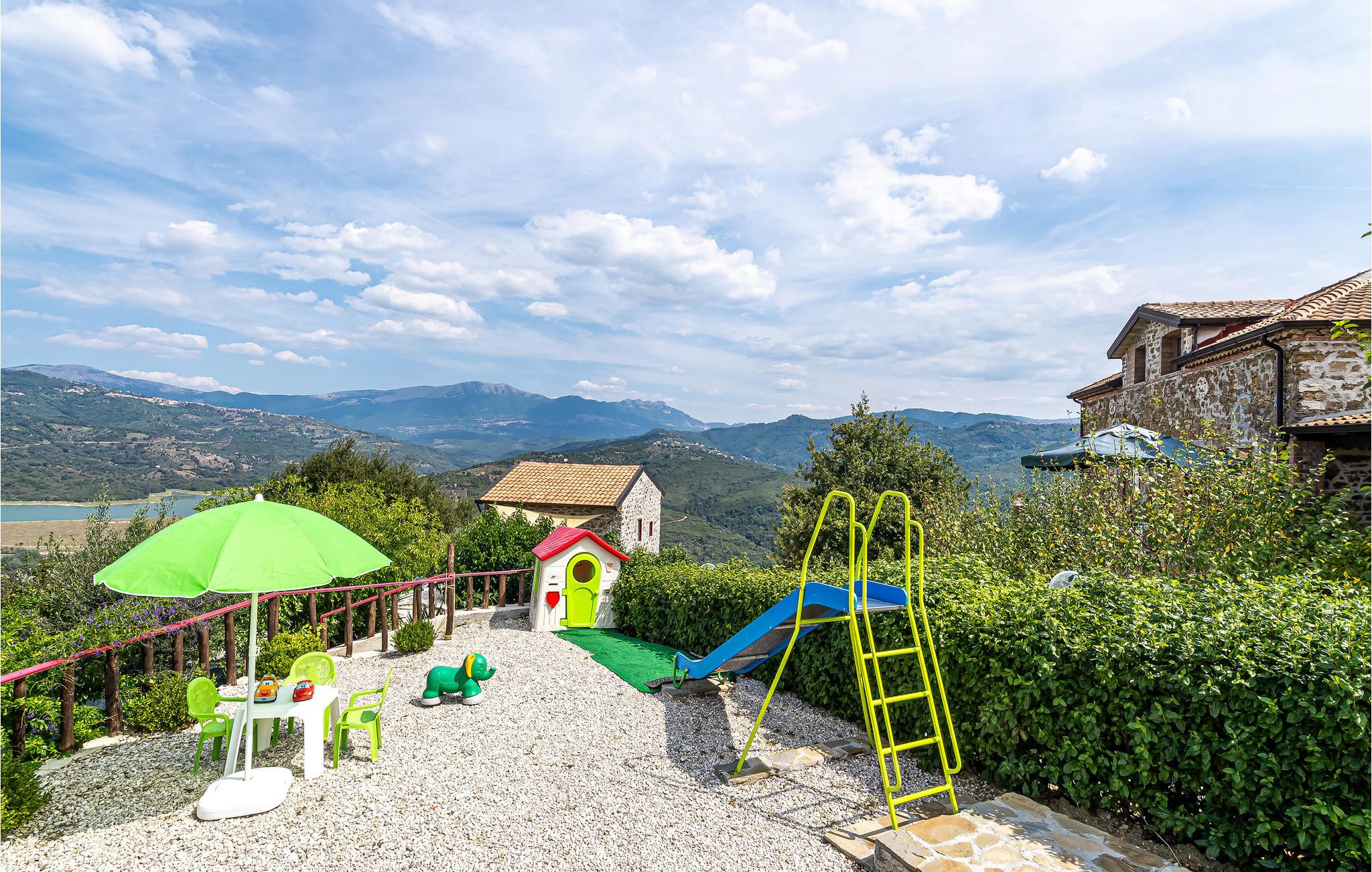 Nyd den betagende udsigt over bjergene fra balkonen. I haven tilbyder den skjulte pool en vidunderlig forfriskning, og i det udendørs køkken kan I lave vidunderlig mad sammen, mens børnene har det sjovt i legerummet. Her er hyggelige havemøbler, hvor man kan slappe af, og der er også grill.