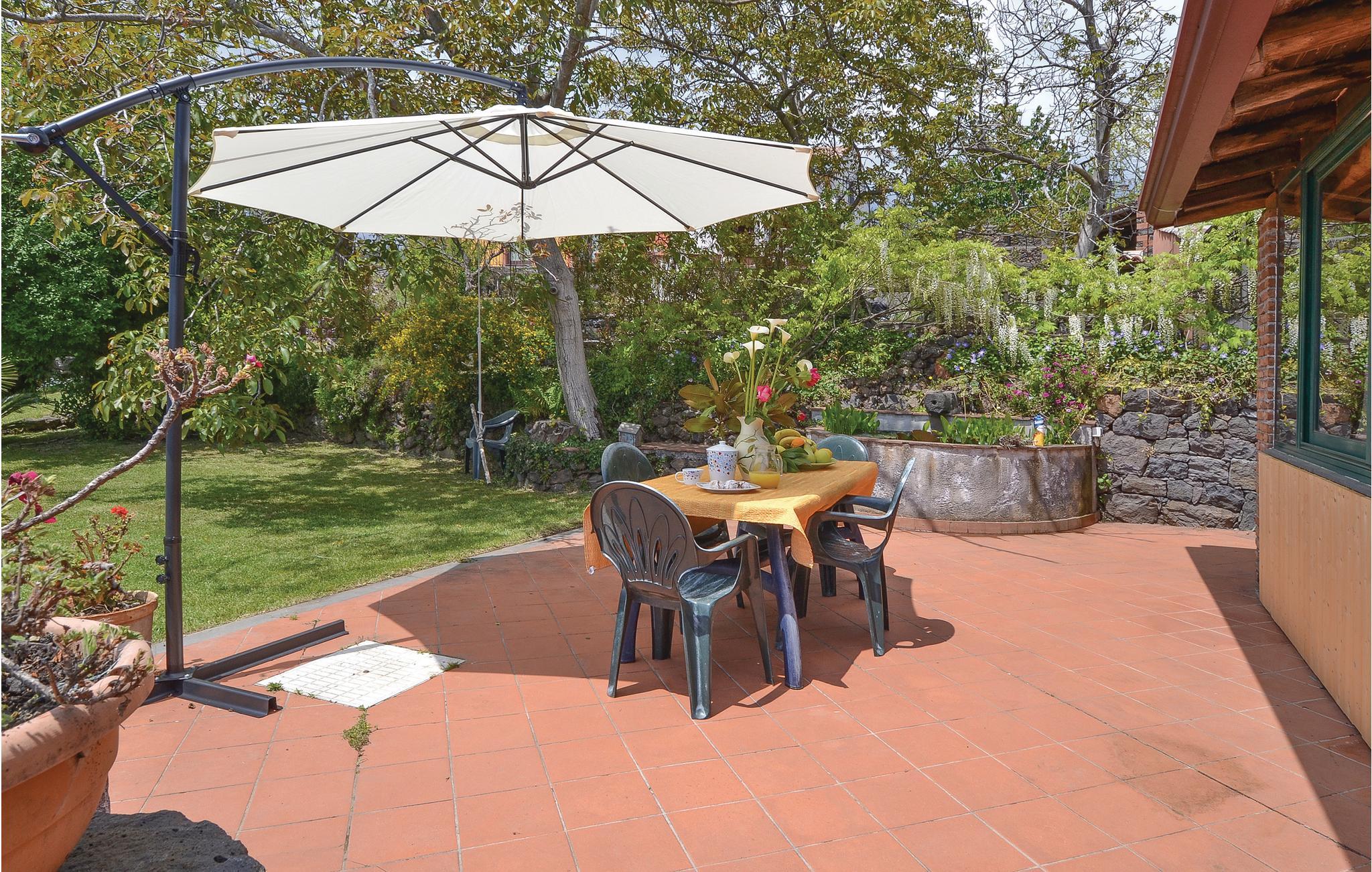 På Etnas bjergside, med sine fascinerende landskaber, ligger dette charmerende feriehus, helt ideelt til et skøn ophold i tæt samspil med naturen og samtidig ikke langt fra kysten og Middelhavet. Til boligen hører en have, hvor I kan nyde måltiderne i det fri, i behagelige havemøbler. Huset er omgivet af yppig vegetation og en skøn saftig plæne, hvorfra der er en betagende udsigt over Cyclops-kysten. Ud over en tur op til vulkanen, kan I også se det berømte 100 Cavalli-kastanjetræ, som siges at være et af Europas ældste træer og som har en helt speciel form. Besøg også egnens mange smukke byer, fx fra Taormina til Catania, Acireale, Etnas karakteristiske byer og de spektakulære Alcantara-slugter. Huset består af to enheder der er forbundet af en udendørs trappe. Helt perfekt til jer, der vil på ferie sammen men med bevarelse af privatlivets fred.