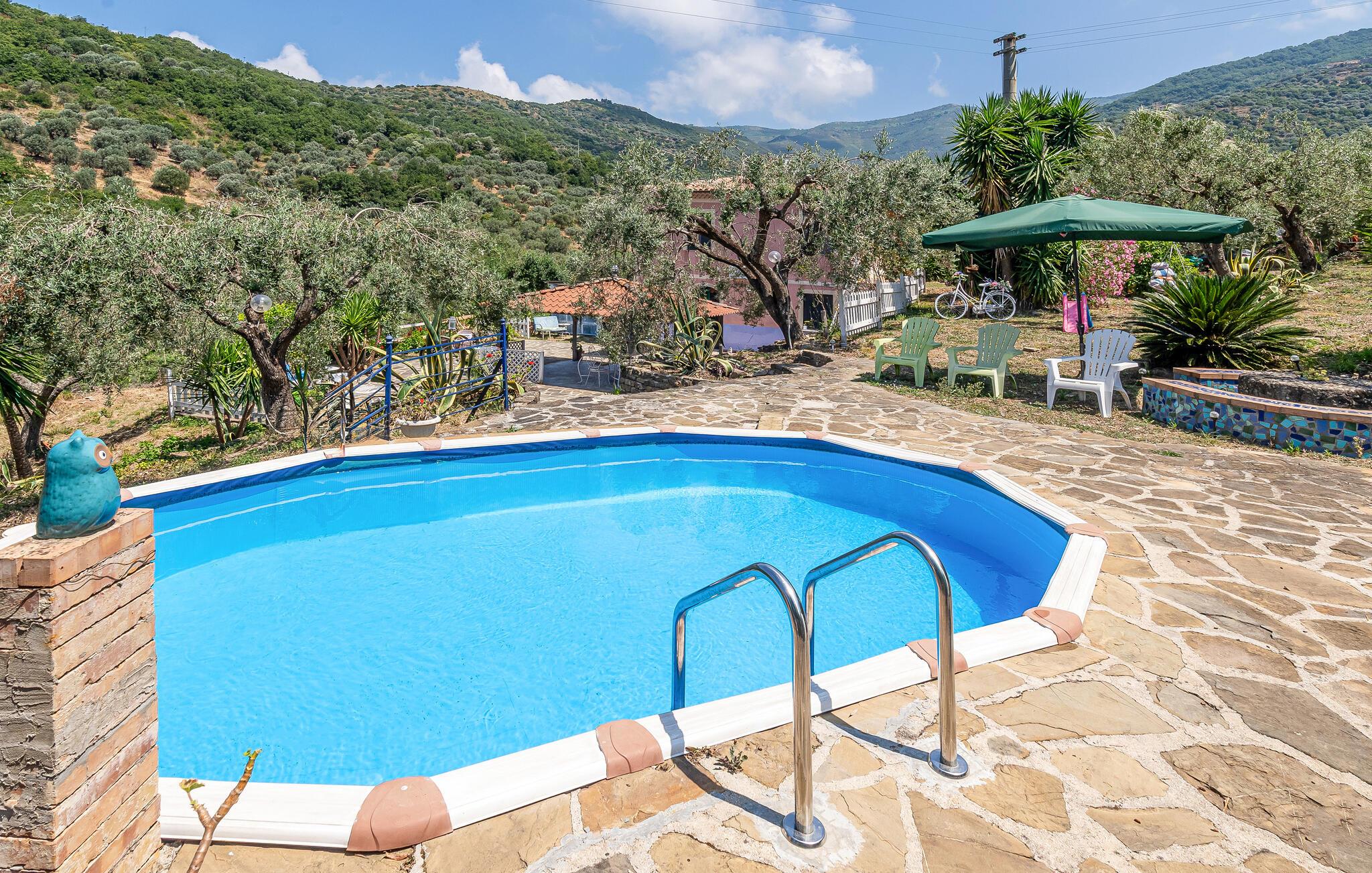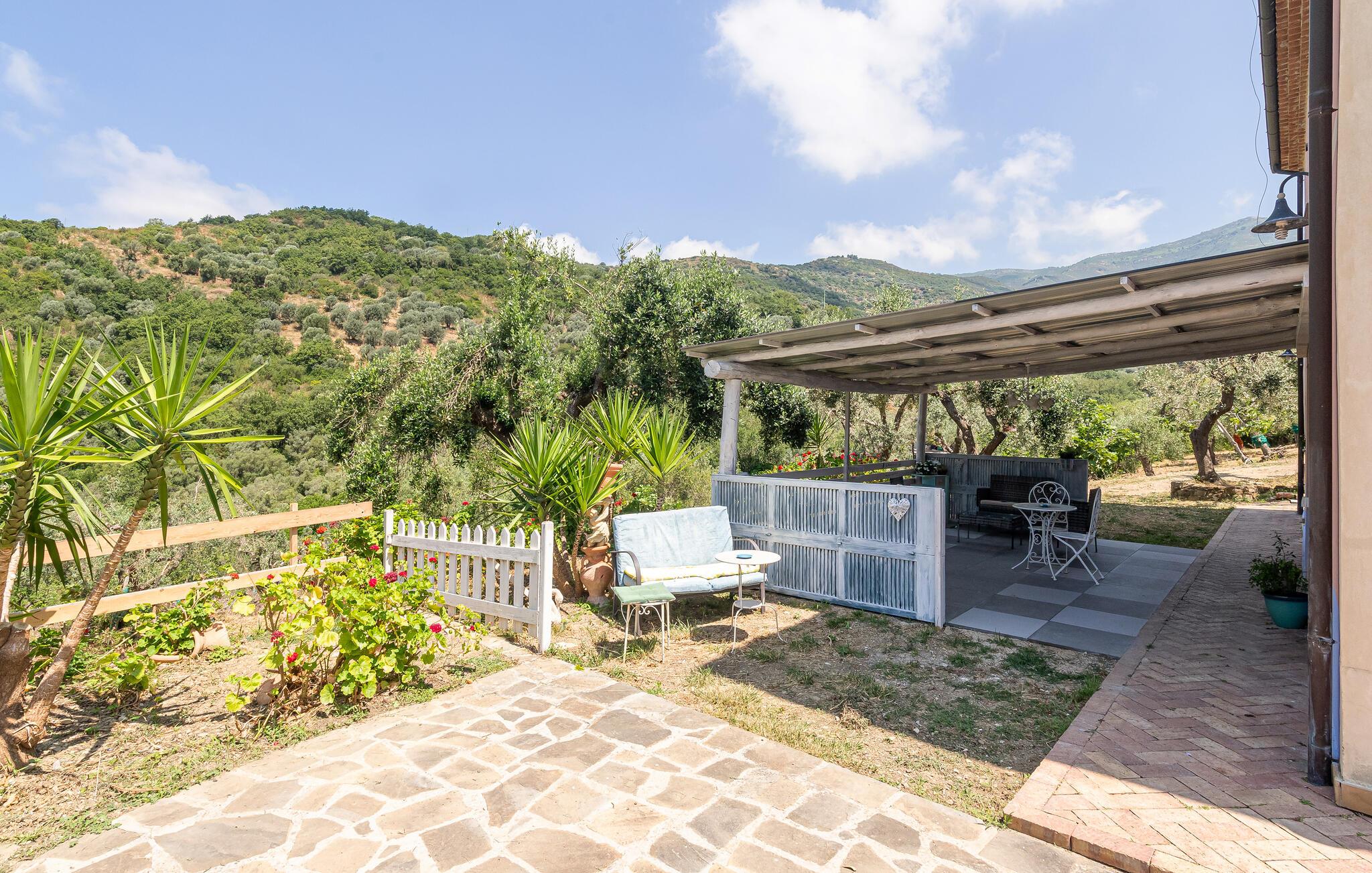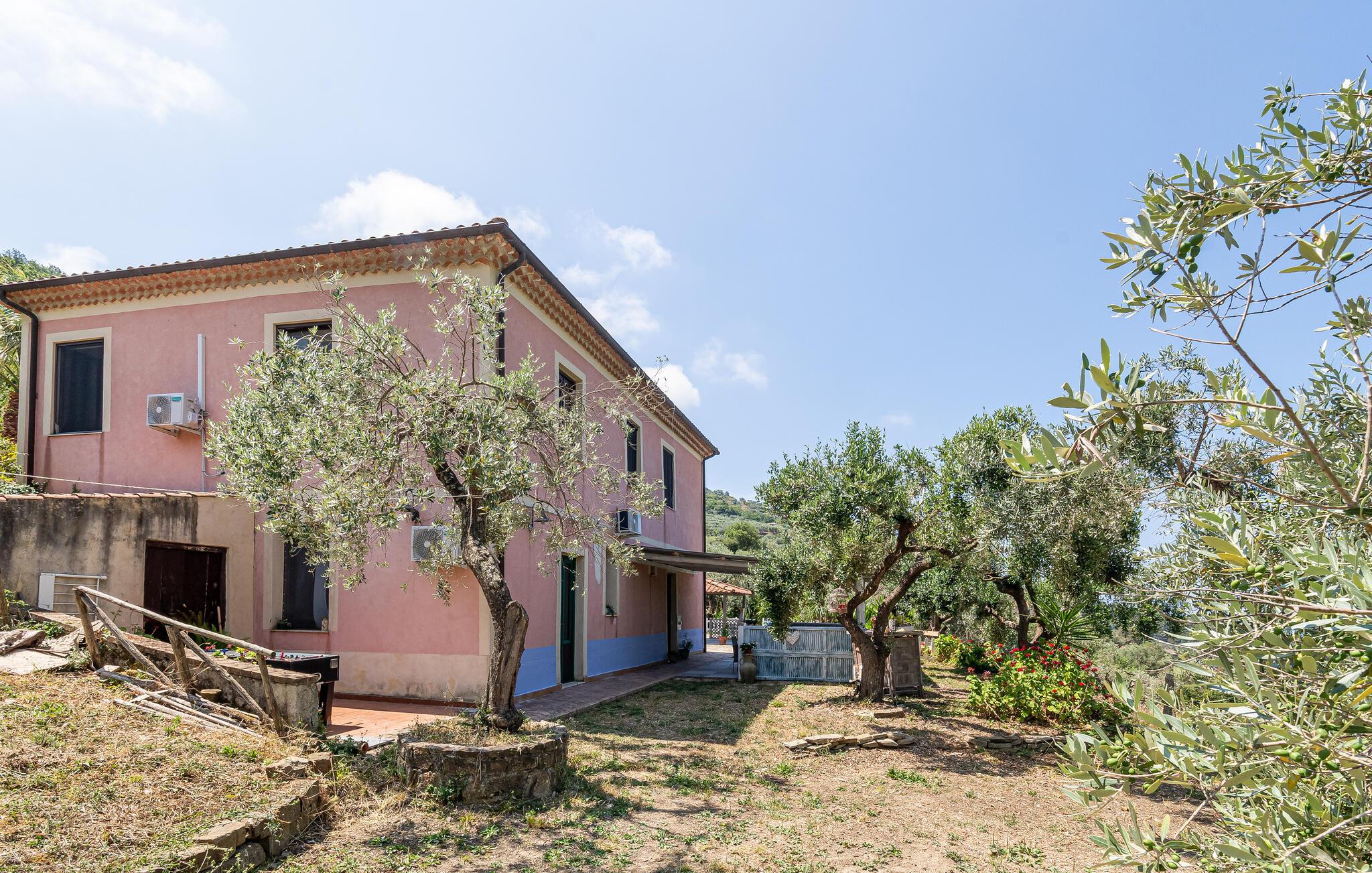 Dette flotte feriehus fra slutningen af 1800-tallet ligger mellem stejlkyst, sandstrande og middelhavstypisk buske og skove i den vidunderlige region Cilento, kendt for sit solrige klima, traditionerne og det fremragende køkken. Huset ligger afsides på landet i en 2 ha stor olivenlund, hvor fremragende jomfruolivenolie bliver fremstillet, ca. 2 km fra Agnone, den nærmeste by.