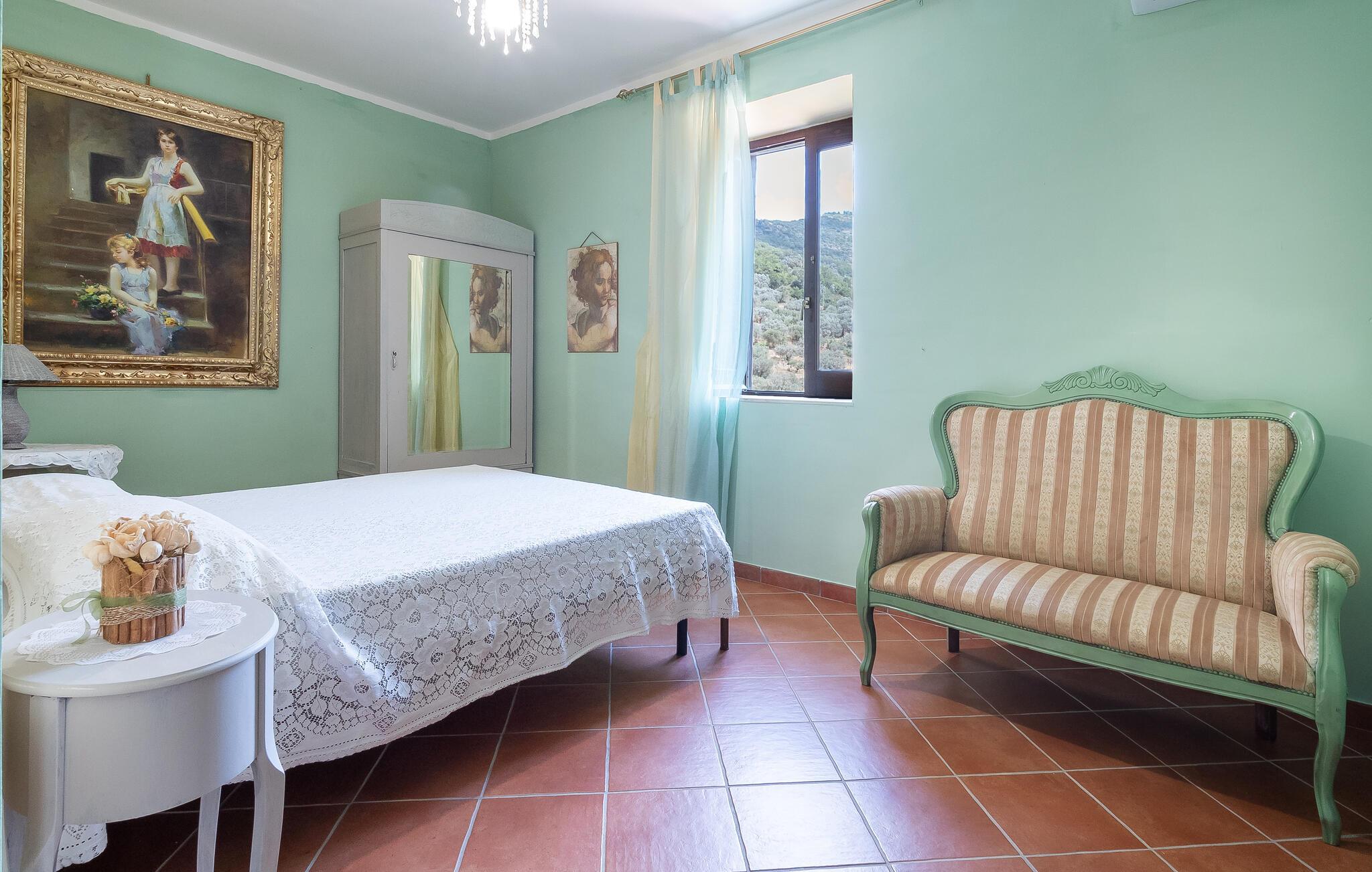 I det tiltalende indrettede hus kan I finde byggelementer som træ, terrakotta og fliser fra Vietri sul Mare. Der er fire soveværelser med badeværelse, spisestue og et lille køkken.