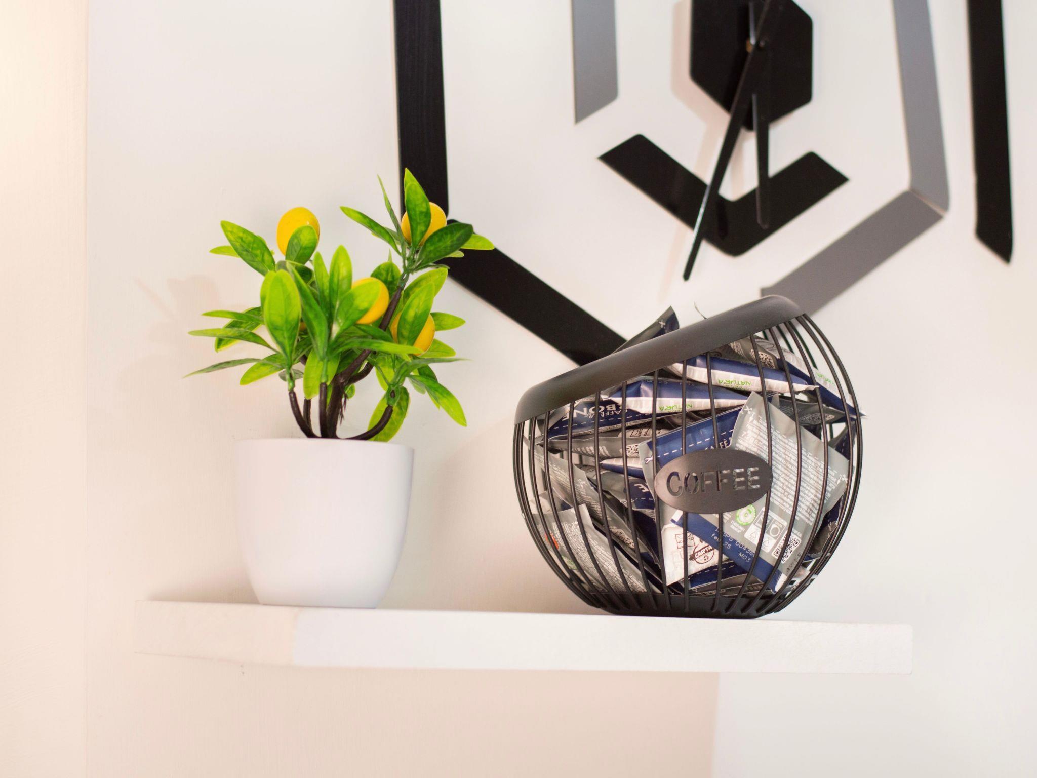 The kitchen is fully equipped with an oven, cooker, microwave, fridge, kettle, toaster, blender, juicer and freezer. In the bedroom, you will find a cosy double bed with memory foam mattress and pillows, a cot for small guests (on request), a built-in wardrobe for personal belongings and a large desk for those who wish to work.