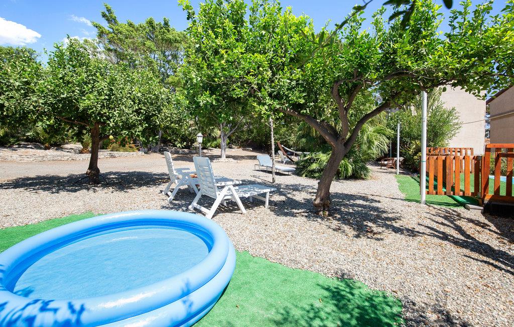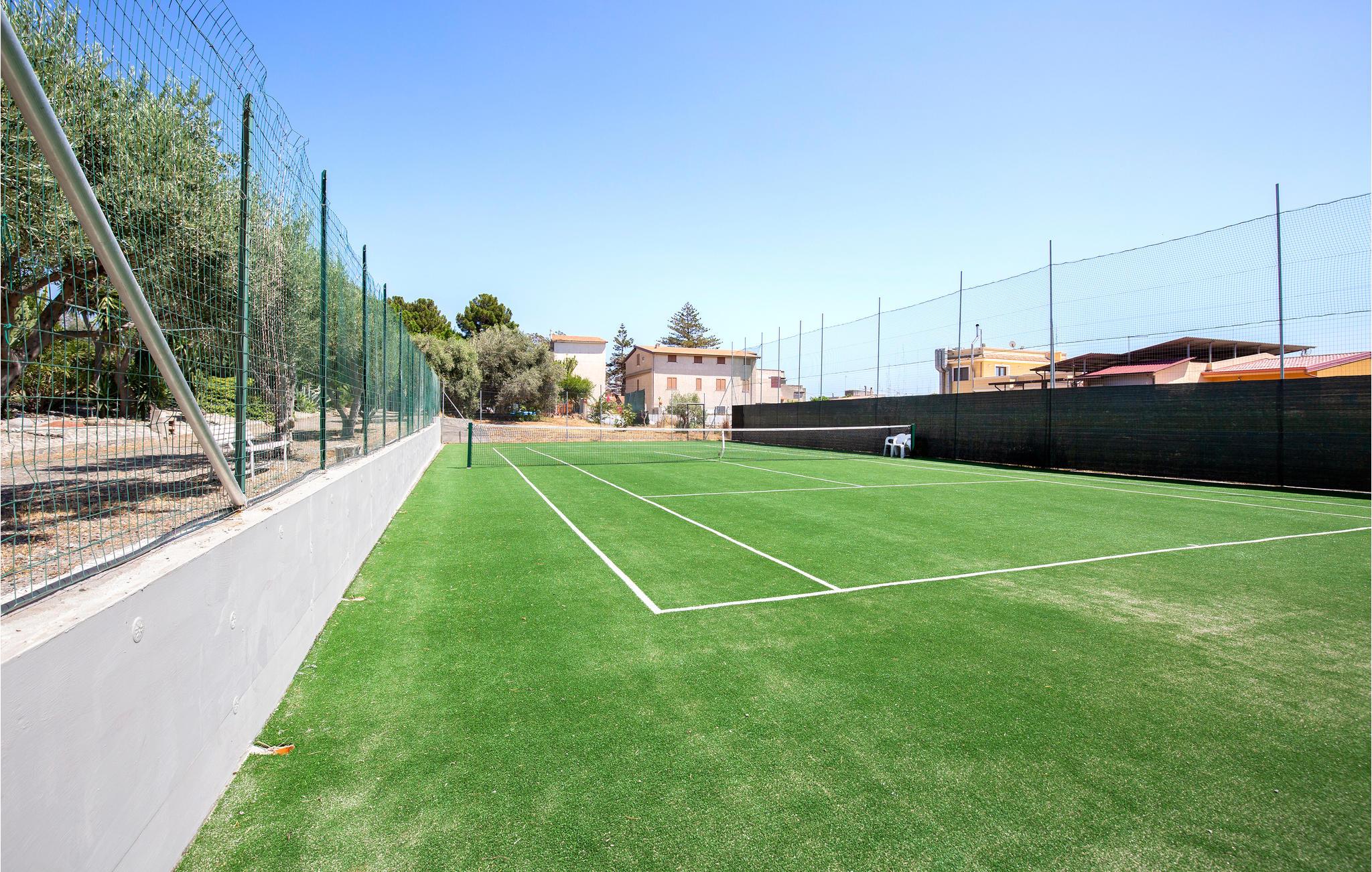 Slap af på terrassen i komfortable havemøbler med lækre retter fra grillen og snup en frisk dukkert selv i den overjordiske pool eller spil et spil tennis på banen på ejendommen.