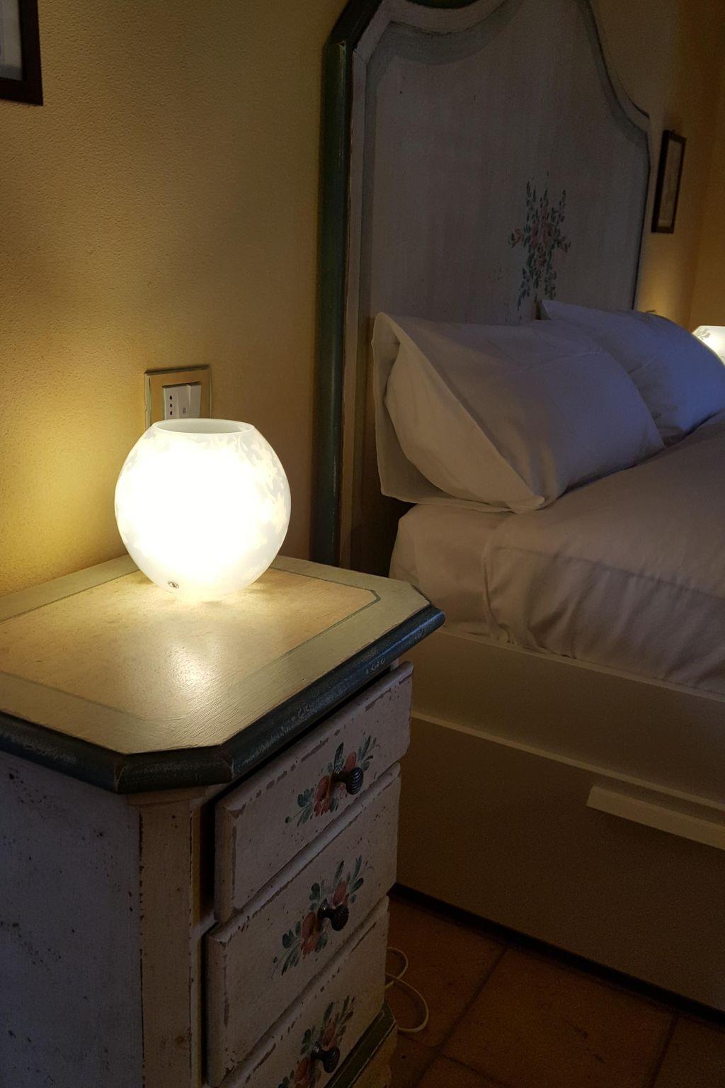 The flat has a separate entrance and is on two levels. On the ground floor there is a bedroom of approximately 20 m² with a double bed and a single bed. On request it is possible to add a single bed or a cot (for children up to 2 years old). Next to the bedroom is the bathroom with shower, bidet, toilet and washbasin. There is a small storage room under the stairs. The floors are made of handmade clay tiles. On the first floor is the living room with kitchenette and dining table. The kitchenette is equipped with a gas cooker, microwave oven, toaster and refrigerator with freezer. The living area consists of a double sofa bed, two armchairs, a coffee table and a television. The floors on the first floor are made of antique oak. The furniture is rather simple and in pastel colours. Every wall of the room has windows overlooking the moraine hills.