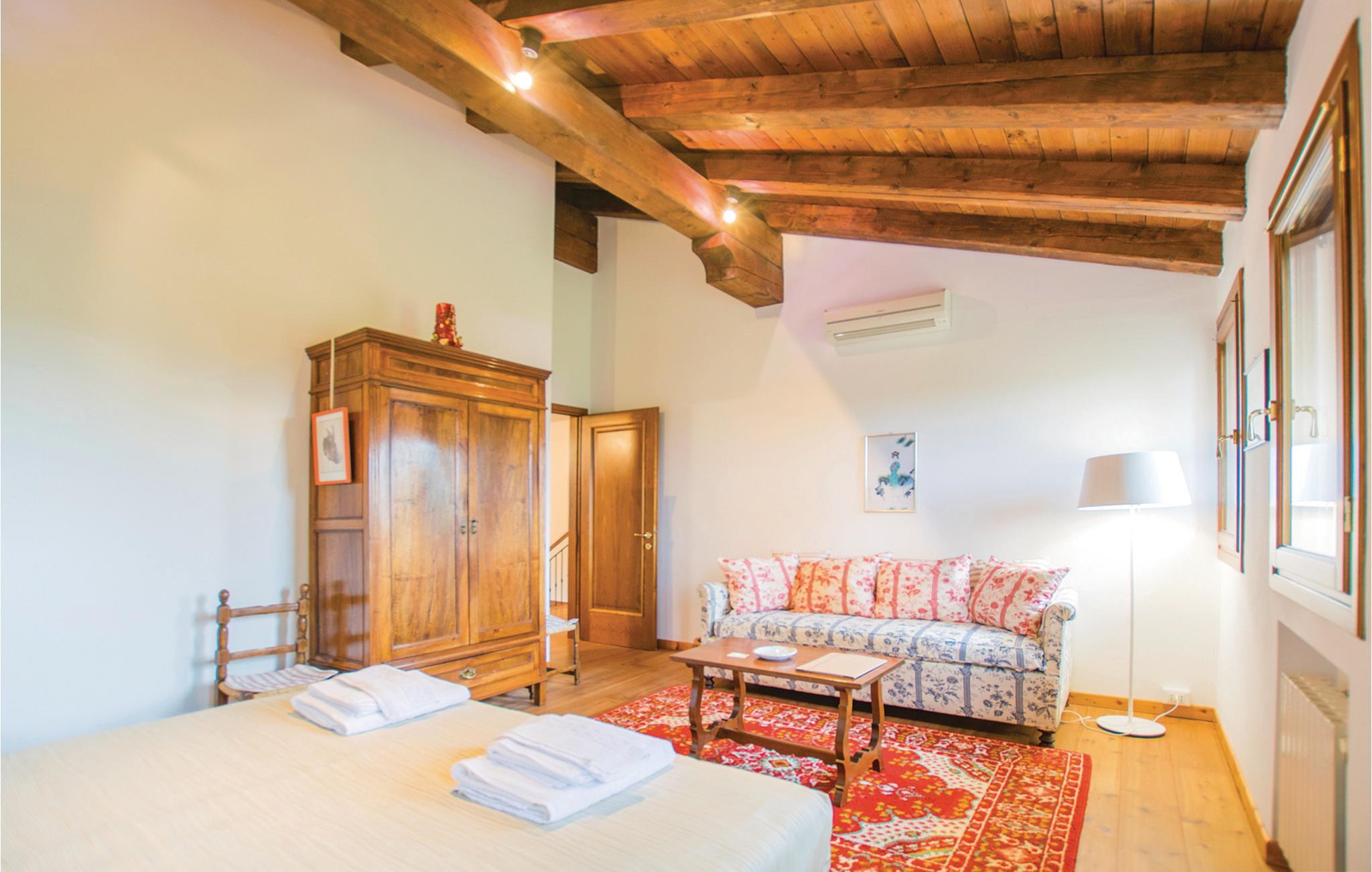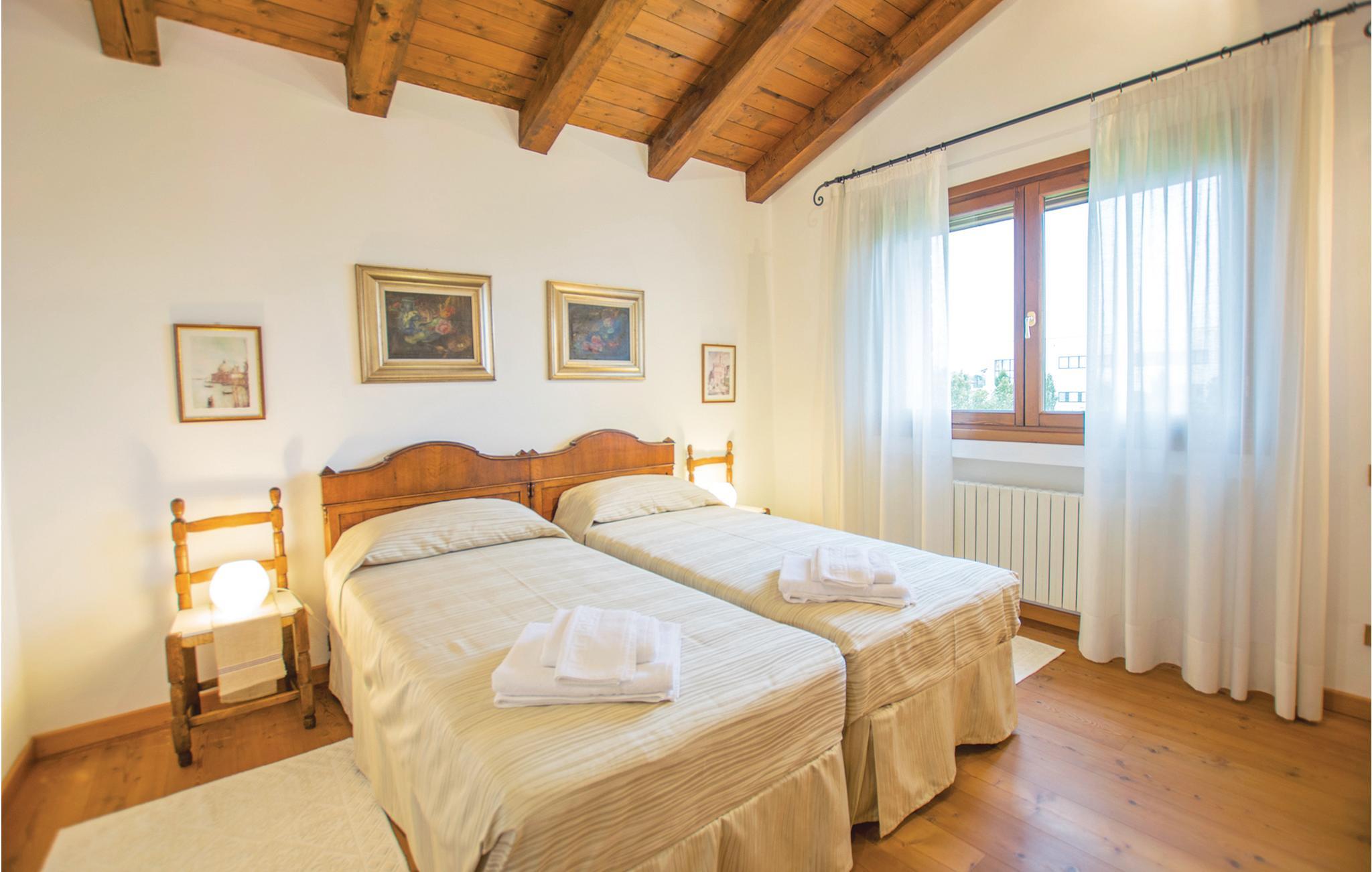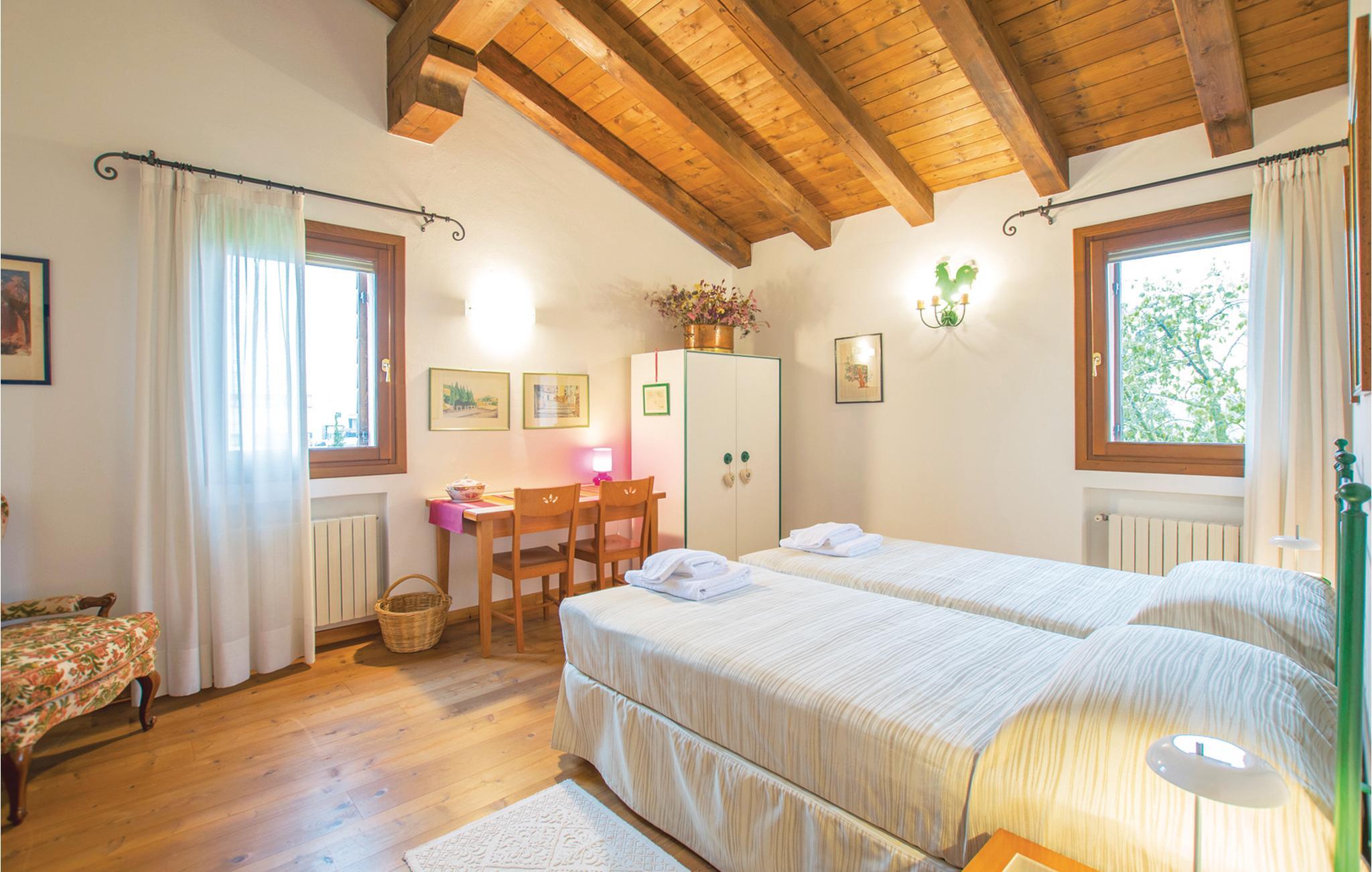 Kun 10 km fra Treviso, med sine smukke bygninger med gamle kalkmalerier og dens små kanaler, lige uden for byen San Biagio di Callalta ligger denne del af et gammelt landsted med en stor fælles have, grill, legeplads. Feriehuset ligger perfekt til udflugter: nær fascinerende kunstbyer som Treviso, Venedig (40 km), Padova (70 km) og Vicenza (95 km). Blot 30 km fra Adriaterhavskysten med sine lange sandstrande og feriebyer som Lido di Jesolo (36 km), Eraclea Mare (39 km) Caorle (52 km) med butikker, restauranter, barer, natklubber, vand og forlystelsesparker. Huset strækker sig over to etager, er meget rummeligt og indrettet med sans for detaljer. Selvom haven er delt med ejerne, har I jeres eget private område til afslapning. I området er der flere 18-hullers golfbaner og cykelstier, bl.a. Ostigliaruten fører langs den nærliggende flodpark Sile. 20 min. fra huset, floden Sile, hvorfra I kan tage båd til lagunen i Venedig og til øerne. Huset har myggenet på alle vinduer.