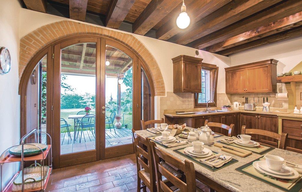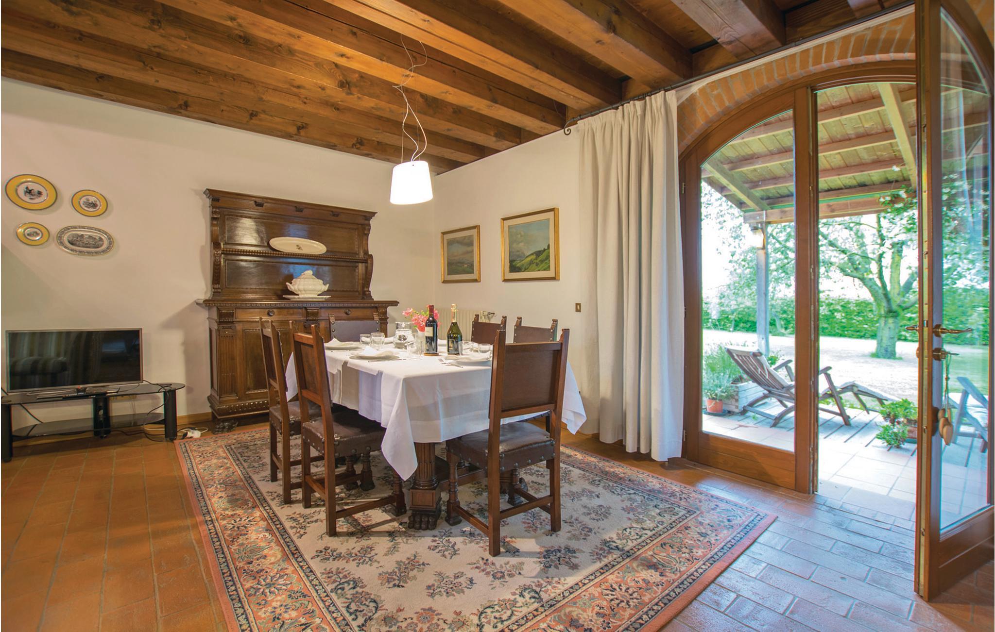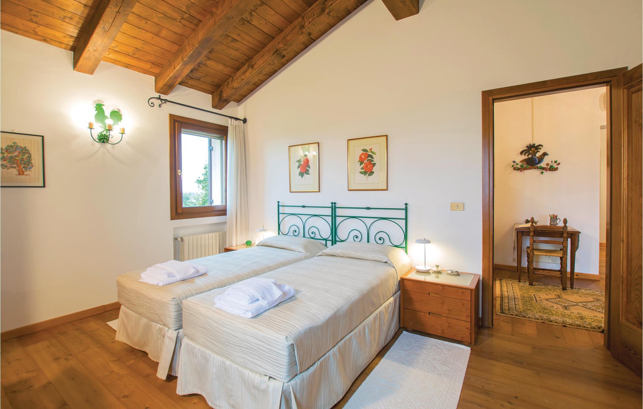 Kun 10 km fra Treviso, med sine smukke bygninger med gamle kalkmalerier og dens små kanaler, lige uden for byen San Biagio di Callalta ligger denne del af et gammelt landsted med en stor fælles have, grill, legeplads. Feriehuset ligger perfekt til udflugter: nær fascinerende kunstbyer som Treviso, Venedig (40 km), Padova (70 km) og Vicenza (95 km). Blot 30 km fra Adriaterhavskysten med sine lange sandstrande og feriebyer som Lido di Jesolo (36 km), Eraclea Mare (39 km) Caorle (52 km) med butikker, restauranter, barer, natklubber, vand og forlystelsesparker. Huset strækker sig over to etager, er meget rummeligt og indrettet med sans for detaljer. Selvom haven er delt med ejerne, har I jeres eget private område til afslapning. I området er der flere 18-hullers golfbaner og cykelstier, bl.a. Ostigliaruten fører langs den nærliggende flodpark Sile. 20 min. fra huset, floden Sile, hvorfra I kan tage båd til lagunen i Venedig og til øerne. Huset har myggenet på alle vinduer.