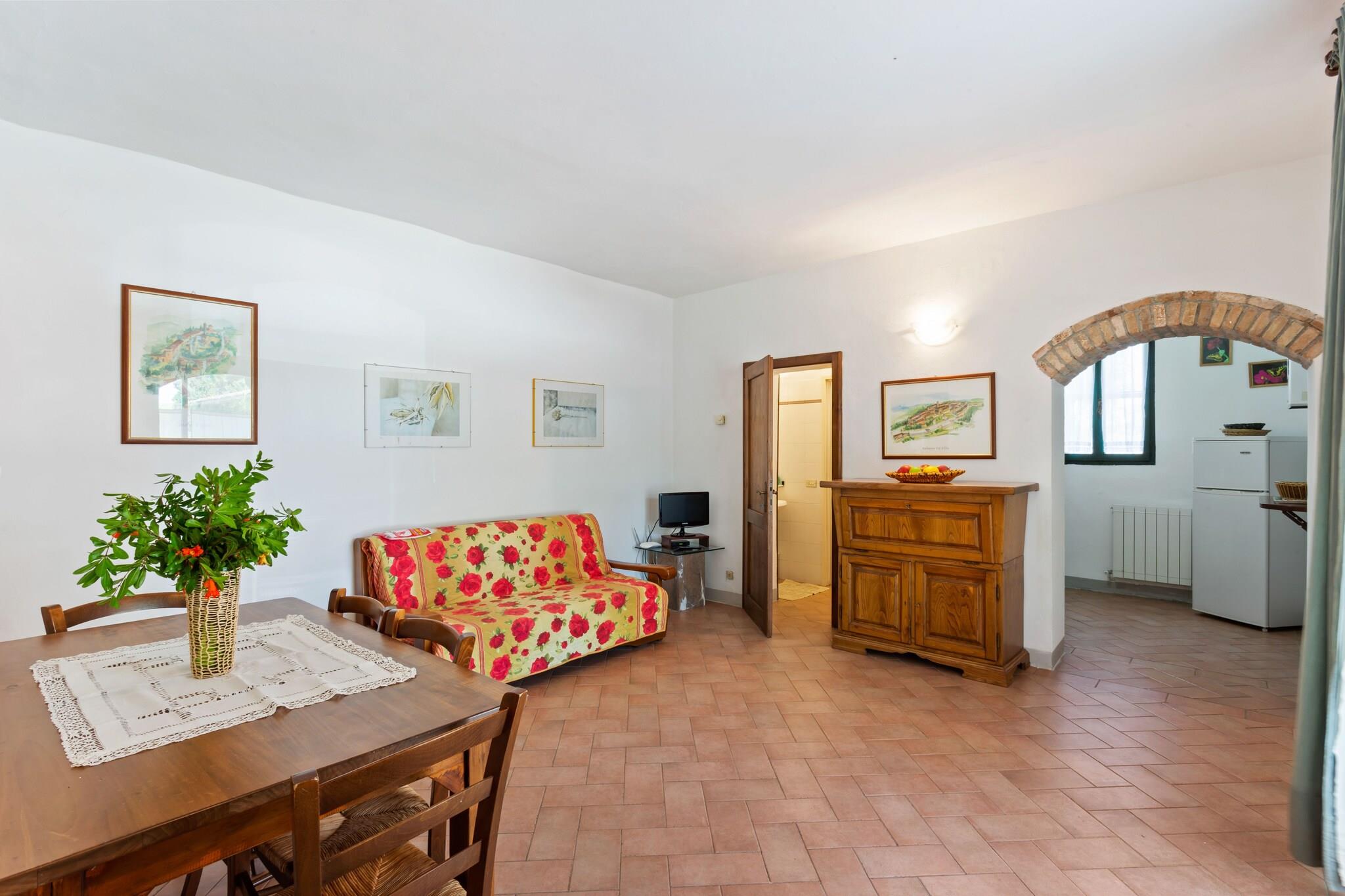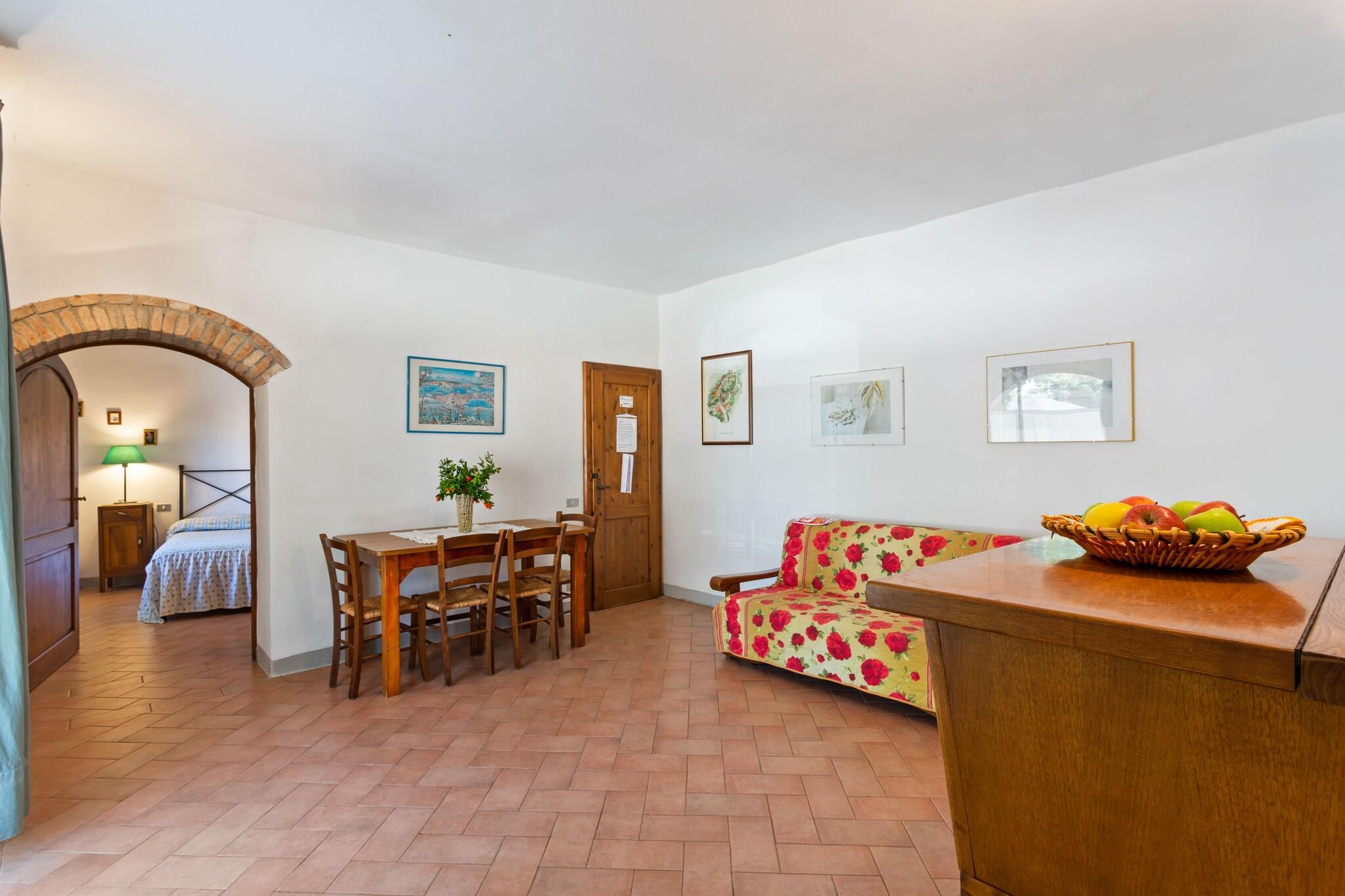 Denne kæledyrsvenlige bondegård i Località Sant'Andrea byder velkommen til op til 10 gæster og tilbyder et hyggeligt og autentisk toscansk ophold med gratis trådløs internetadgang. Stueetagen indeholder et køkken med alt nødvendigt og en stue/spisestue med en dobbelt sovesofa og satellit-tv. Et soveværelse med dobbeltseng og et komplet badeværelse er også placeret her. På første sal finder du endnu et rummeligt køkken med pejs, yderligere to soveværelser (et dobbeltværelse, et med køjesenge), en anden stue med en sovesofa og to badeværelser, hvilket gør det ideelt til store familier eller grupper. Ejendommen har både privat have og adgang til en smukt anlagt 3000 m² fælles have. Gæsterne kan slappe af ved den store 17×6 m fælles swimmingpool (åben maj-oktober) omgivet af natur. En fælles vaskemaskine tilføjer bekvemmelighed, mens udendørsmøbler inviterer til udendørs spisning og aftenafslapning under stjernerne. Beliggende kun 4 km fra middelalderbyen San Gimignano, berømt for sine ikoniske tårne, UNESCO-status og freskoerne i Collegiate Church, er dette bondehus en port til Toscanas rige historie. Tag på naturskønne dagsture til Siena (30 km), Volterra (33 km) eller Firenze (58 km).
