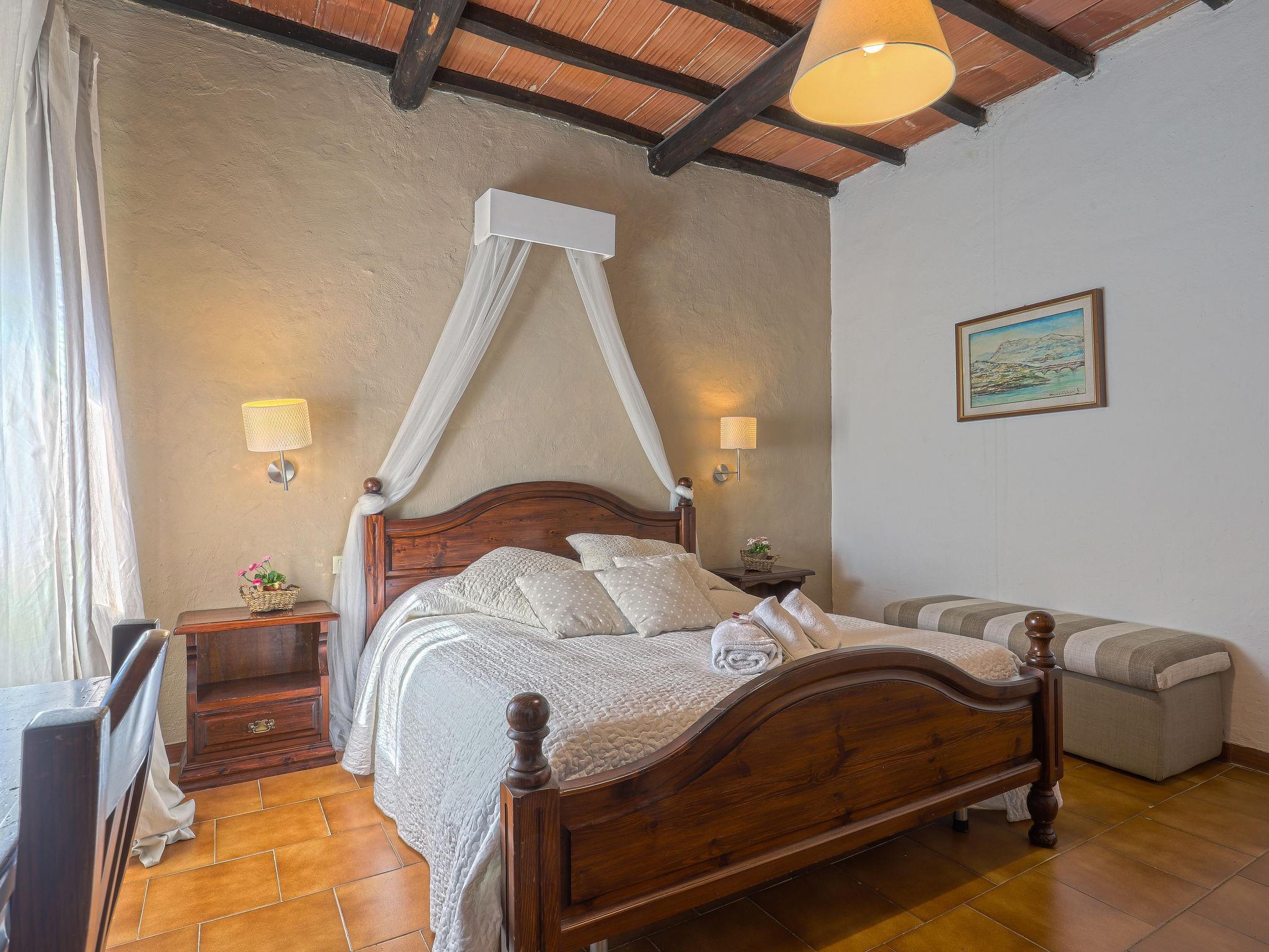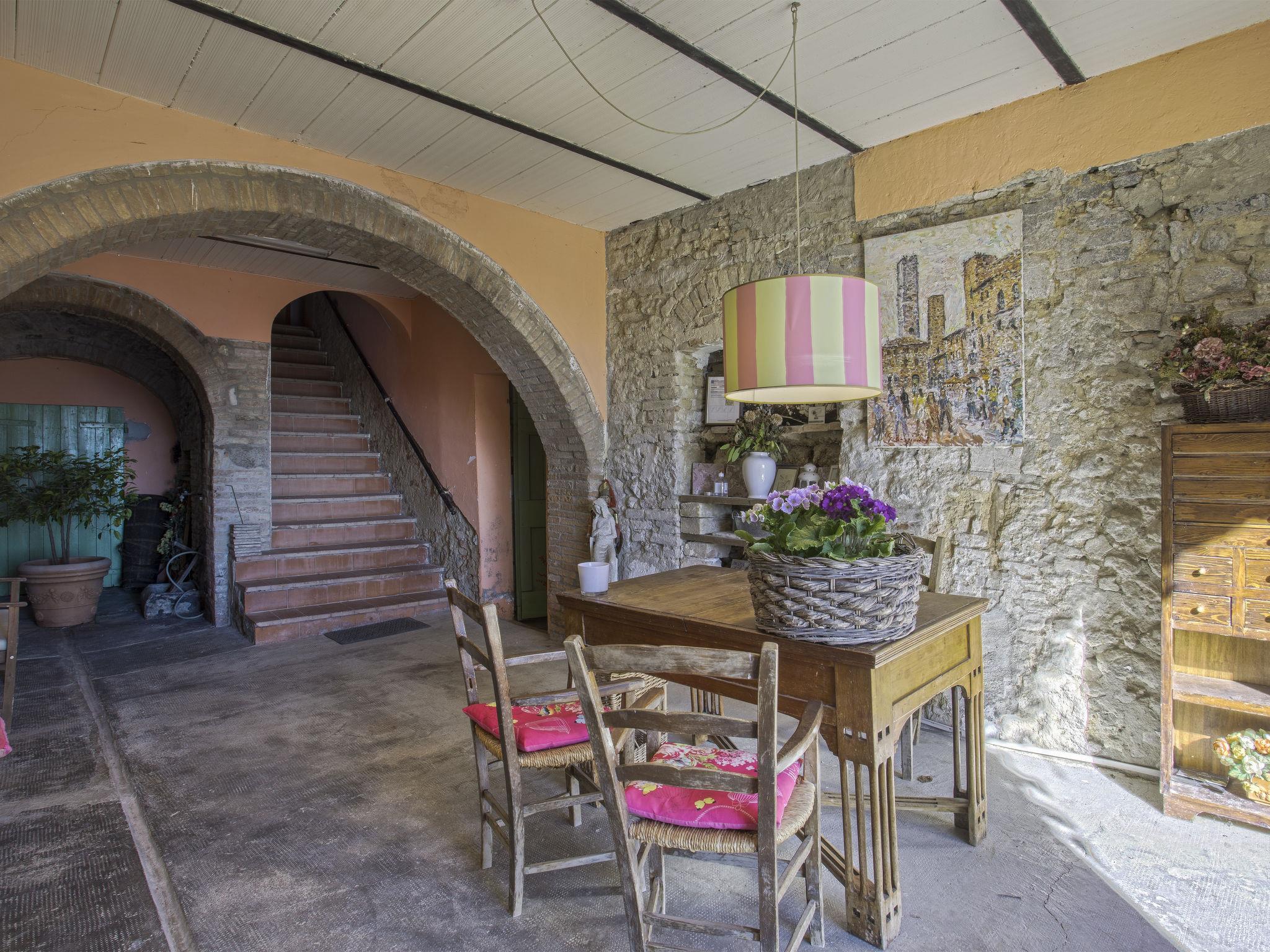 Large agricultural estate "Fattoria di Fugnano", surrounded by trees and vineyards. 5 houses in the residence. 12 apartments in the residence. 4 km from the centre of San Gimignano, 14 km from the centre of Colle di Val d'Elsa, 35 km from the centre of Siena, in a secluded, sunny, elevated position on top of a hill, in the countryside. For shared use: property 200 ha, garden (not fenced) with trees, natural garden, meadow, swimming pool fenced (15 x 7 m, depth 140 cm, seasonal availability: 01.May. - 10.Oct. pool opening hours: 08:00-19:30). Outdoor shower, terrace, garden furniture, barbecue, pool maintenance by the owner/gardener. In the house: reception, breakfast room, lounge with TV. Bread roll service and breakfast possible on request (extra). 1.8 km long motor access (via unmade road). Parking on the premises. Grocery 2.5 km, supermarket 2.5 km, restaurant 2.5 km, bus stop 2 km, railway station "Certaldo" 12 km, indoor swimming pool 12 km, thermal baths "Gambassi Terme" 18 km. Golf course (27 hole) 25 km. Nearby attractions: Certaldo 12 km, Volterra 29 km, Firenze 60 km, Pisa 77 km. Please note: suitable for families, baby equipment (included). Local sale of farm products. The owner lives on the same property. All houses/apartments are individually designed/furnished. The complex has another 9 houses for rent.