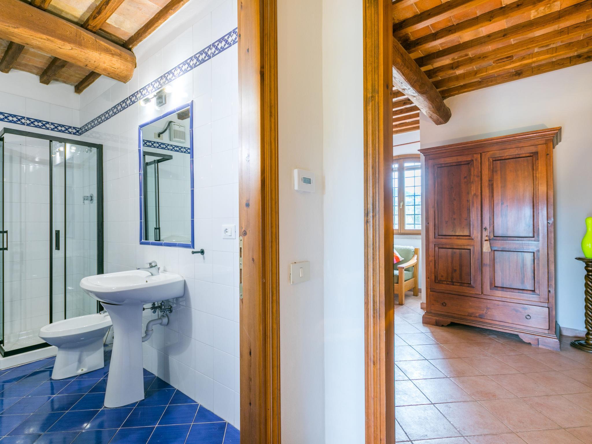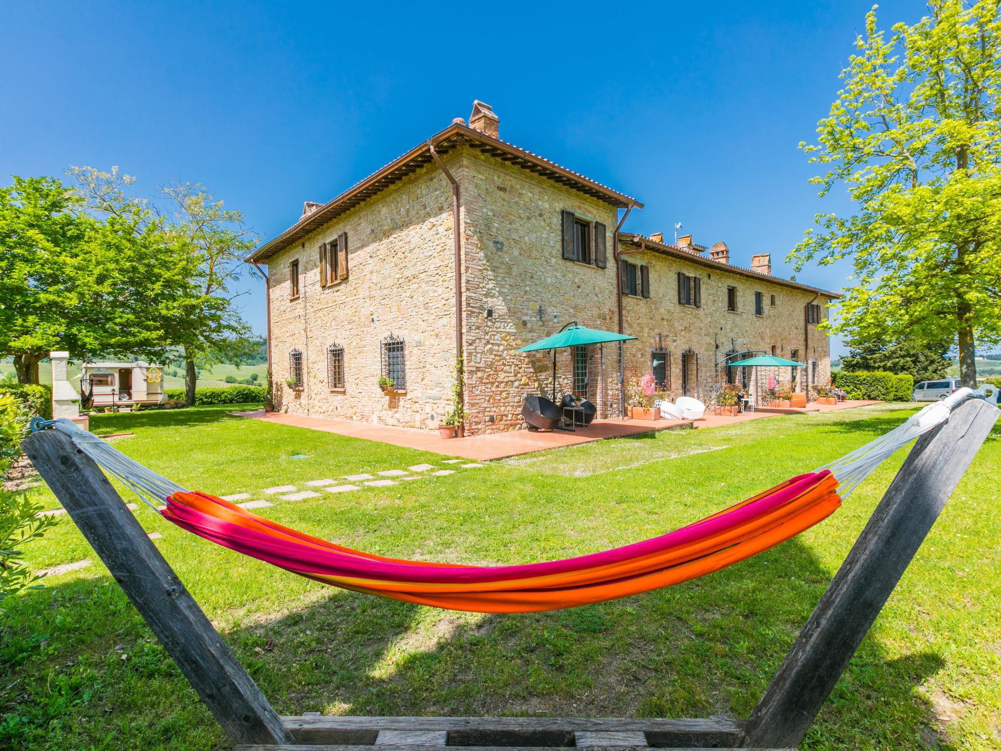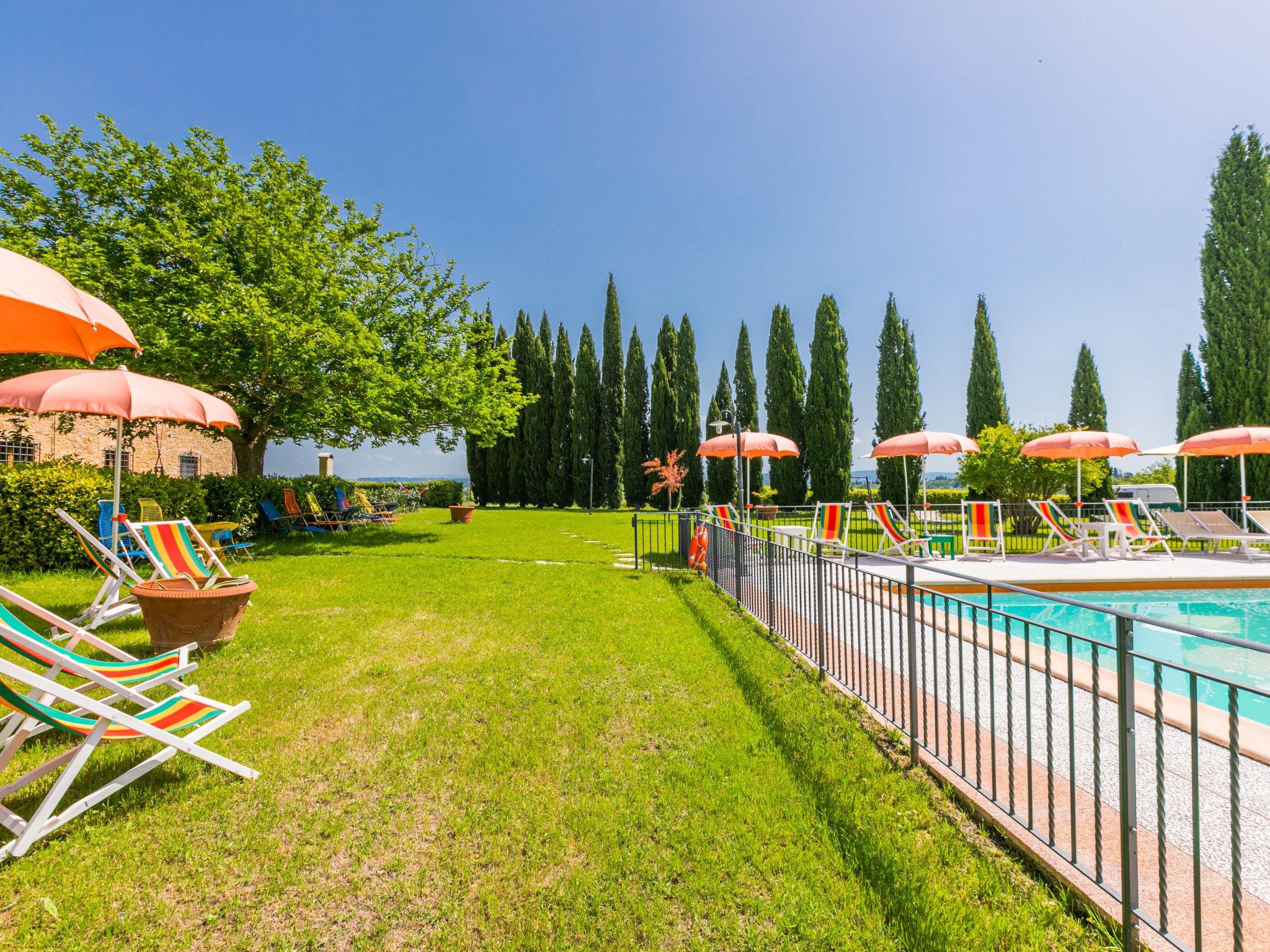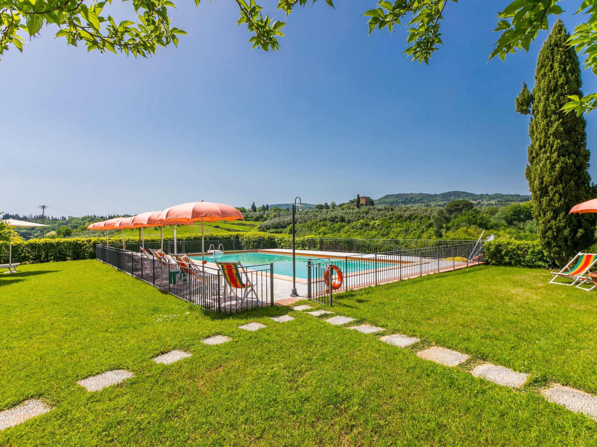 Beautiful, cosy on a vinyard country house "Casa Renai a San Gimignano", surrounded by trees, fields and vineyards. 8 apartments in the property. 7 km from the centre of San Gimignano, 4 km from the centre of Certaldo, 45 km from the centre of Siena, in a secluded, sunny, elevated position, 85 km from the sea, in the countryside. For shared use: property, garden 1 ha with plants and trees, meadow, swimming pool fenced (14 x 7 m, depth 120 - 220 cm, seasonal availability: 01.May. - 15.Oct.). Outdoor shower, terrace, garden furniture, barbecue (swing), pool maintenance by the owner/gardener. In the complex: reception, bar, internet access, WiFi, bicycle rental. Linen change (suppl. charge extra). Room cleaning 3 times per week (included). Cook on request (extra). Breakfast possible on request (extra). Motor access (300 m via unmade road). Roofed, parking on the premises. Shop 3 km, grocery 3 km, supermarket 4 km, restaurant 4 km, bakery 3 km, bicycle rental 4 km, bus stop 300 m, railway station "Certaldo" 4 km, indoor swimming pool 4 km. Tennis 4 km, walking paths from the house 100 m. Nearby attractions: Volterra 30 km, Pisa 65 km, Firenze 65 km, Montalcino 80 km. Please note: baby equipment (included). Suitable for events. Cooking courses bookable on request. Local sale of farm products. All houses/apartments are individually designed/furnished.