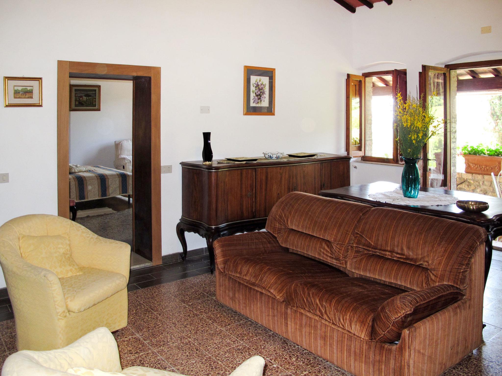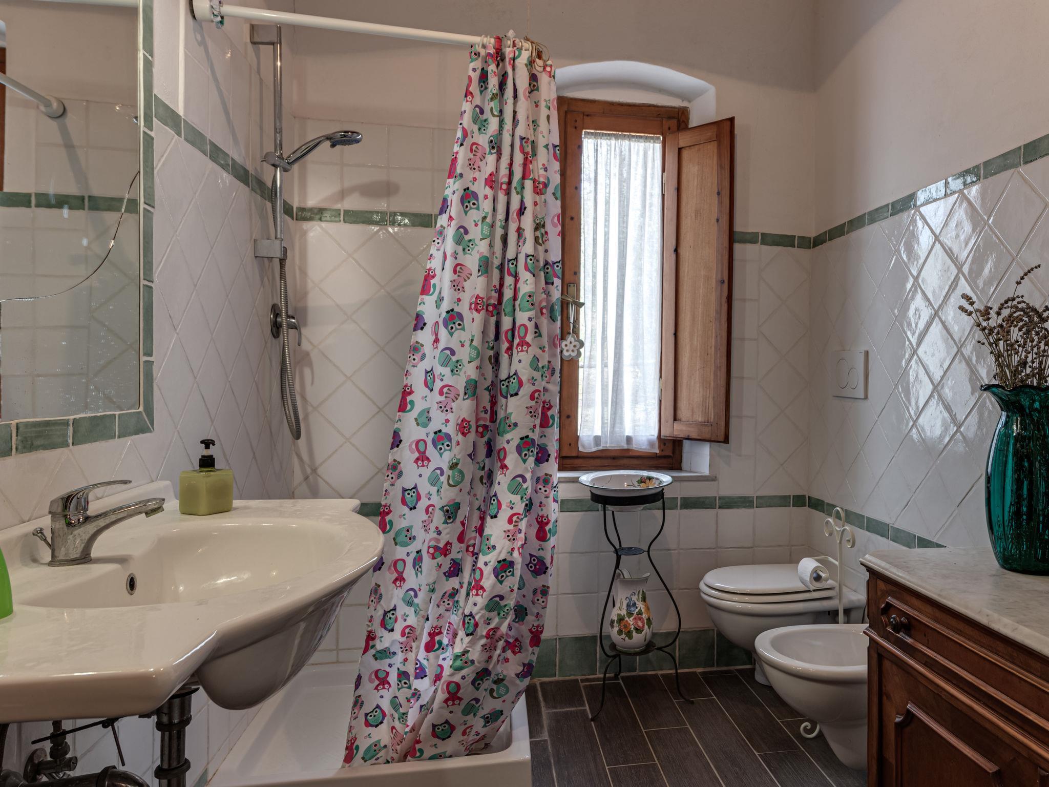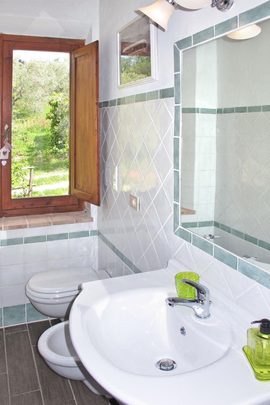 "Le Sodole - Petunia", 5-room apartment 140 m2 on 1st floor. Object suitable for 8 adults. Spacious, practical and rustic furnishings: living room with open-hearth fireplace and satellite TV. 1 room with 1 double bed. 1 room with 2 beds. 1 room with 1 double bed and shower/bidet/WC. 1 room with 2 beds and shower/bidet/WC. Large kitchen (oven, dishwasher, 4 gas rings, freezer, electric coffee machine) with dining table. Exit to the garden. 2 showers/bidet/WC. Gas heating (extra). Natural stone floors. Small terrace roofed, patio, porch. Terrace furniture, barbecue, deck chairs. Very beautiful view of the countryside. Facilities: washing machine, children's high chair, baby cot for up to 2 year olds. Internet (WiFi, free). Parking space n 2. Please note: suitable for families. Non-smokers only. Maximum 1 pet/ dog allowed. Private entrance. Access to the garden seating area via bridge. When there are less than the maximum number of guests staying at the property, not all of the bedrooms will be available for use. IT052028B5SX9HLTJD