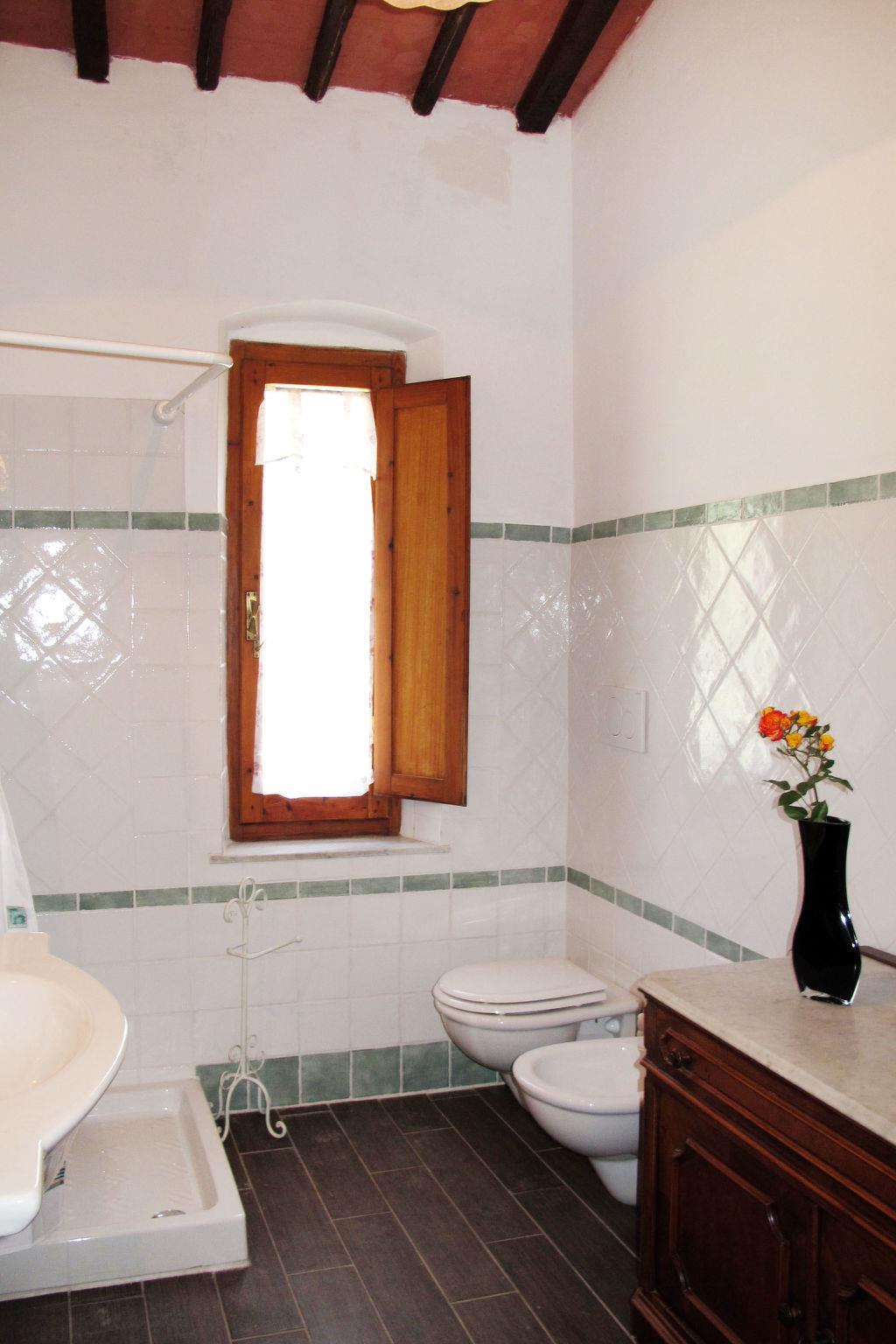 Cosy, rustic agricultural estate "Le Sodole", surrounded by meadows, fields and vineyards. 2 houses in the residence. 5 apartments in the residence. Property composed of main house and outbuilding 4 km from the centre of San Gimignano, 13 km from the centre of Poggibonsi, 53 km from the centre of Siena, in a sunny position on top of a hill, 70 km from the sea, in the countryside. For shared use: property 10 ha, large terraced garden (not fenced) with plants and trees, natural garden, swimming pool (12 x 7 m, depth 120 cm, seasonal availability: 15.May. - 15.Oct. pool opening hours: 09:00-19:00) with salt-electrolysis pool-cleaning system. Outdoor shower, terrace, barbecue, pool maintenance by the owner/gardener. In the complex: reception, WiFi, washing machine (for shared use, extra). 600 m long bumpy motor access (via unmade road). Parking on the premises. Shop 2 km, grocery 2 km, supermarket 4 km, restaurant 4 km, bakery 2 km, bicycle rental 4 km, bus stop 5 km, railway station "Certaldo" 11 km, sandy beach "Cecina Mare" 70 km, indoor swimming pool 13 km. Nearby attractions: Certaldo 11 km, Volterra 27 km, Firenze 61 km, Pisa 74 km. Please note: car recommended. Suitable for families, baby equipment (included). Groups of teenagers on request only. Local sale of farm products. All houses/apartments are individually designed/furnished. Obligation to wear bathing caps.