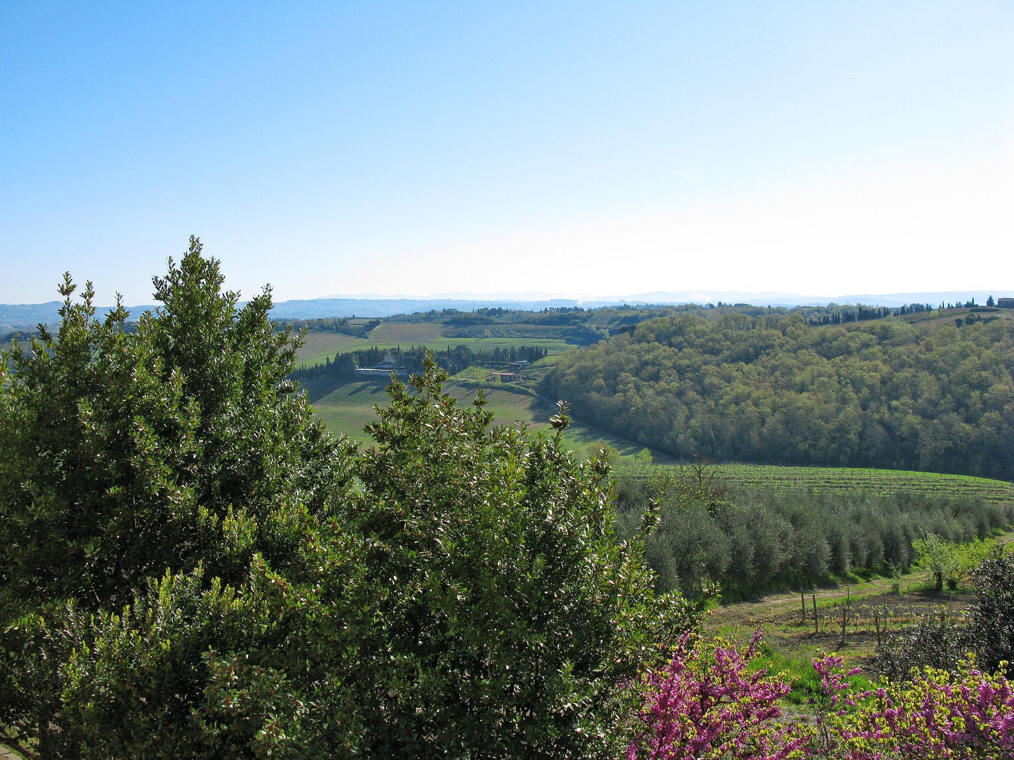 Lucignano 7 km from San Gimignano: Agriturismo on a vinyard "Casa alle Vacche", surrounded by trees, fields and vineyards. 3 houses in the residence. 6 apartments in the residence. 7 km from the centre of San Gimignano, 7 km from the centre of Certaldo, 48 km from the centre of Siena, in a secluded, elevated position, 70 km from the sea, in the countryside. For shared use: property 32 ha with plants and trees, natural garden, meadow, swimming pool fenced (14 x 6 m, seasonal availability: 01.May. - 15.Oct.). Shower/WC in the pool area, outdoor shower, terrace, garden furniture, barbecue, pool maintenance by the owner/gardener. In the house: reception, restaurant, lounge with TV, washing machine (for shared use). 700 m long motor access (via unmade road). Parking on the premises. Grocery 7 km, supermarket 7 km, restaurant 1.2 km, bicycle rental 7 km, bus stop "Certaldo" 7 km, railway station "Certaldo" 7 km, sandy beach "Cecina Mare" 70 km, outdoor swimming pool 7 km, indoor swimming pool 7 km. Nearby attractions: Volterra 33 km, Firenze 64 km, Pisa 83 km. Please note: suitable for families, baby equipment (included). Local sale of farm products. All houses/apartments are individually designed/furnished.