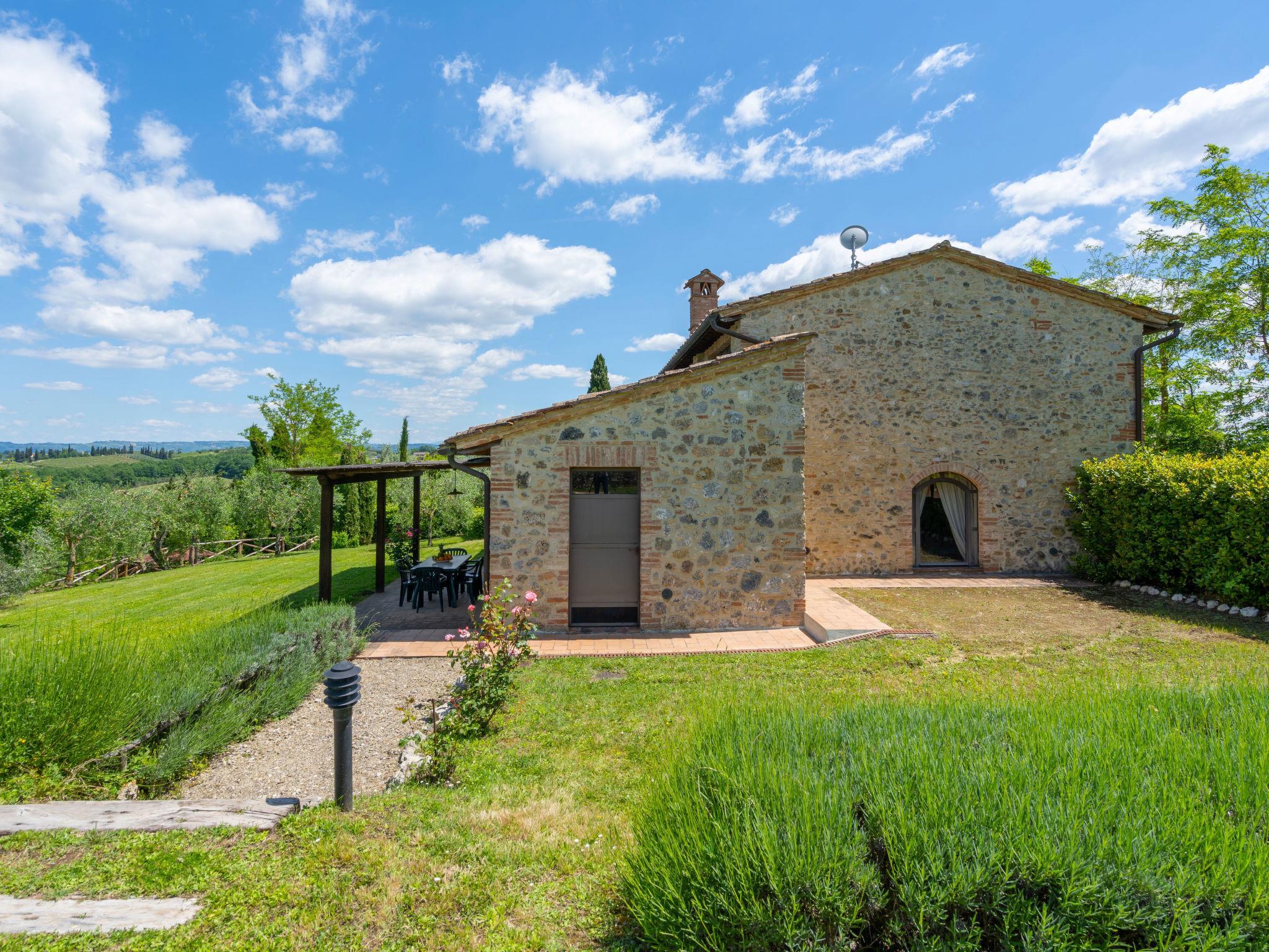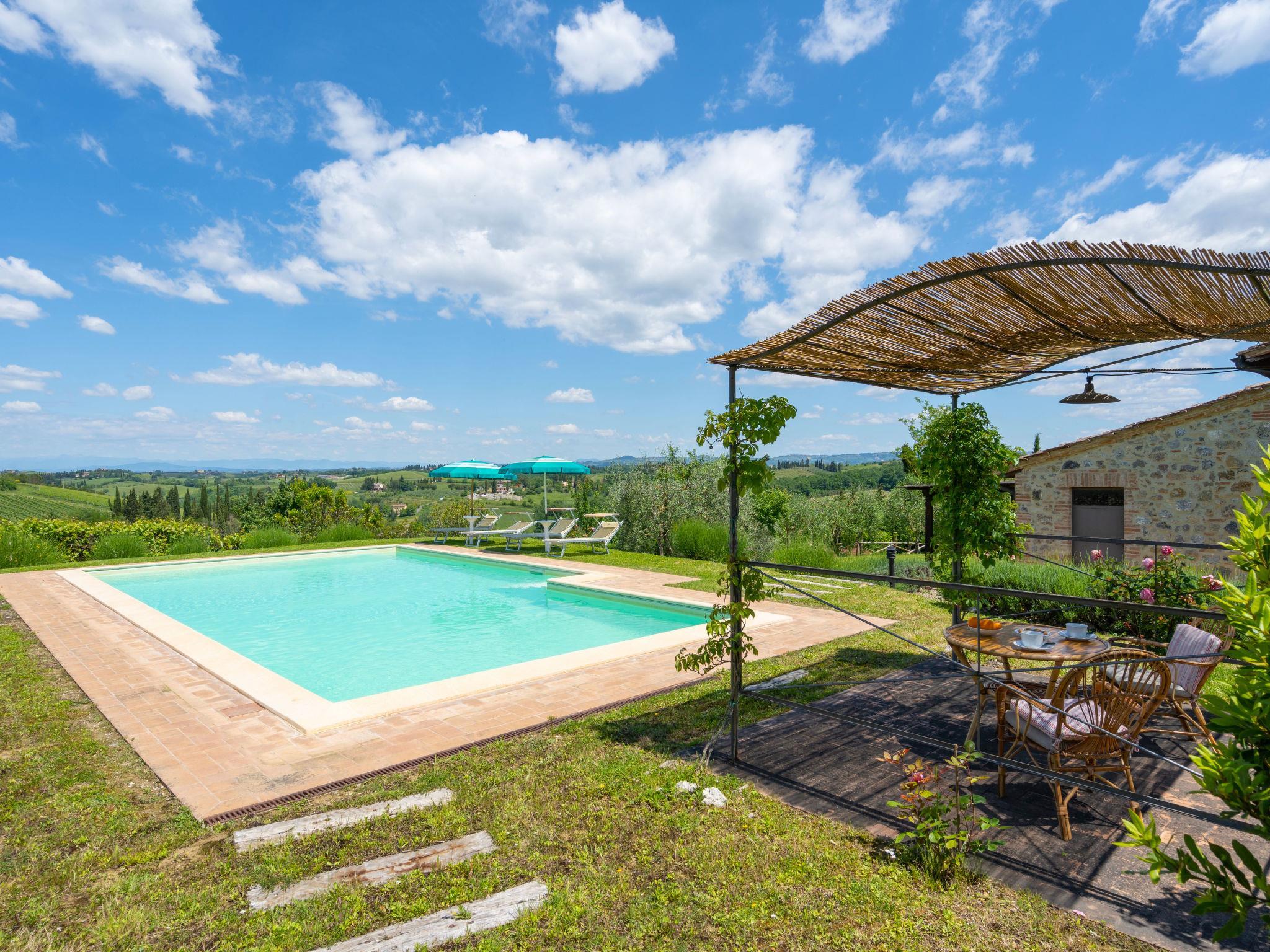 The house, completely renovated by a former hayloft, is situated in the Chianti hills just a short distance from San Gimignano, famous for its medieval towers. Villa "Alba", detached. 3 km from the centre of San Gimignano, 31 km from the centre of Volterra, 45 km from the centre of Siena, in a quiet, sunny position, in the countryside. Private: garden 500 m2 (fenced), swimming pool (11 x 6 m, depth 140 cm, seasonal availability: 09.May. - 03.Oct.). Outdoor shower, garden furniture, barbecue. Heating to be paid on the spot, heating available only from 01.Nov. - 07.Apr.. Motor access to the house (800 m via unmade road). Parking on the premises. Supermarket 3 km, restaurant 3 km, bus stop 1 km. Golf course (18 hole) 22 km. Nearby attractions: Certaldo 12 km, Colle Val d'Elsa 17 km, Monteriggioni 29 km, Castellina in Chianti 36 km, Radda in Chianti, Greve in Chianti 44 km, Firenze 56 km.