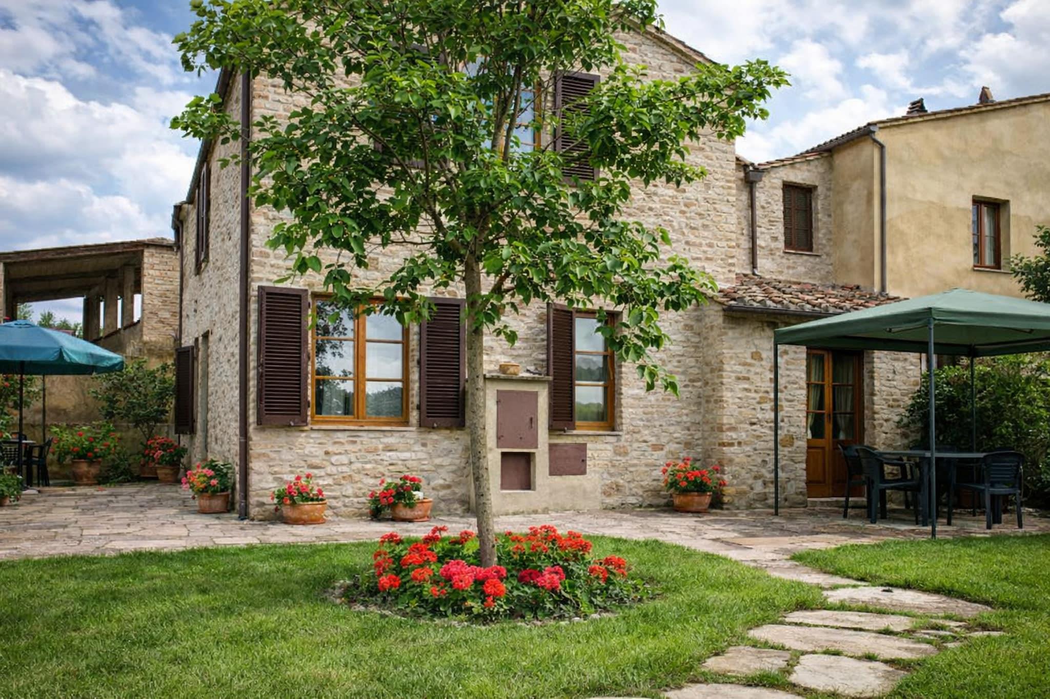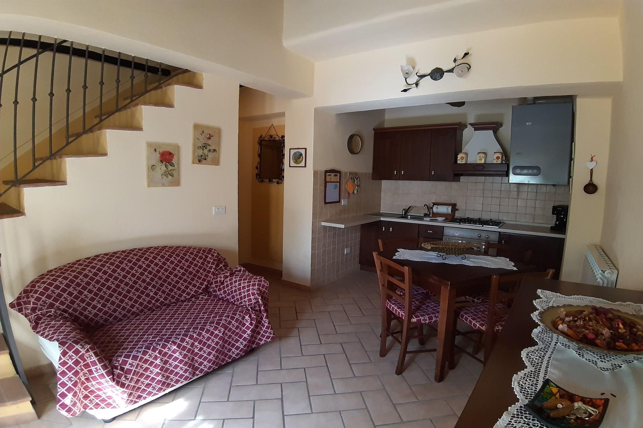 Beliggende i det fredelige landskab nær Chiusi-søen, er dette charmerende toscanske bondehus et indbydende tilflugtssted for familier og vennegrupper, der søger hvile, plads og en autentisk italiensk atmosfære. Hjemmet har komfortabel plads til op til 7 gæster og er kæledyrsvenligt, hvilket gør det ideelt for både familier og dyreelskere. Indendørs har den varme stue-spisestue en dekorativ pejs, komfortable siddepladser og rustikke detaljer, der afspejler regionens karakter. Det veludstyrede køkken inkluderer ovn, kogeplader og køleskab med fryser, hvilket gør fælles madlavning til en fornøjelse. Stueetagen byder på et hyggeligt enkeltværelse og et badeværelse, mens du ovenpå finder tre lyse soveværelser - to med dobbeltsenge og et med to enkeltsenge - sammen med et andet badeværelse med bruser. Udenfor vil du være omgivet af bølgende grønne områder. Ejendommen tilbyder en privat have, en forfriskende swimmingpool, liggestole og en skyggefuld veranda - perfekt til lange udendørs måltider og aftener med solnedgang. Bondegården ligger i San Giovanni d'Asso og er perfekt placeret til at udforske middelalderlandsbyer, lokale vingårde og naturskønne vandreruter. Nyd afslappende picnics ved Chiusi-søen, dagsture til nærliggende kulturbyer, eller slap blot af i total privatliv. Med gratis Wi-Fi, privat parkering og grillplads blander dette hjem traditionel toscansk charme med hverdagskomfort for et virkelig mindeværdigt ophold.