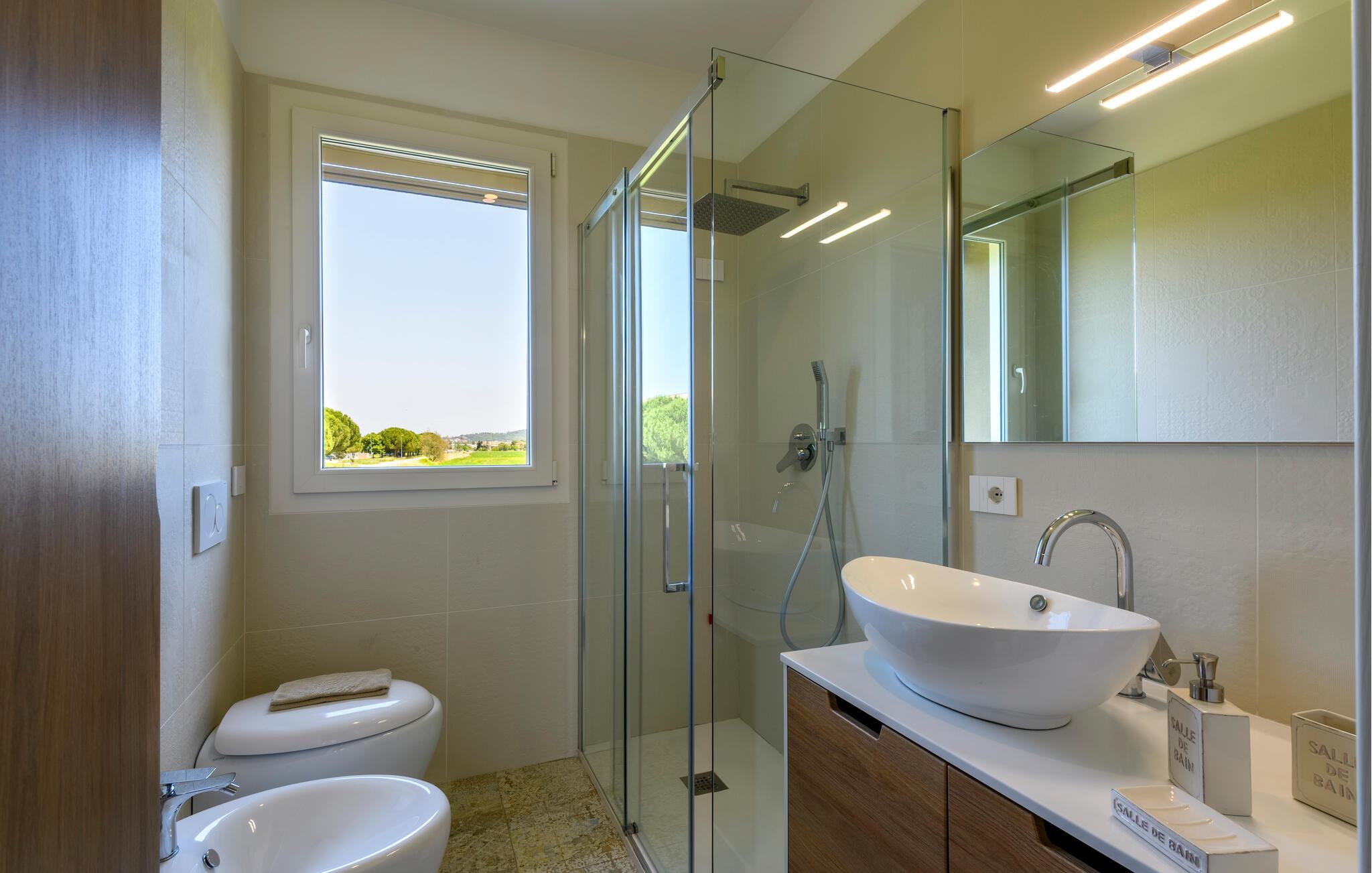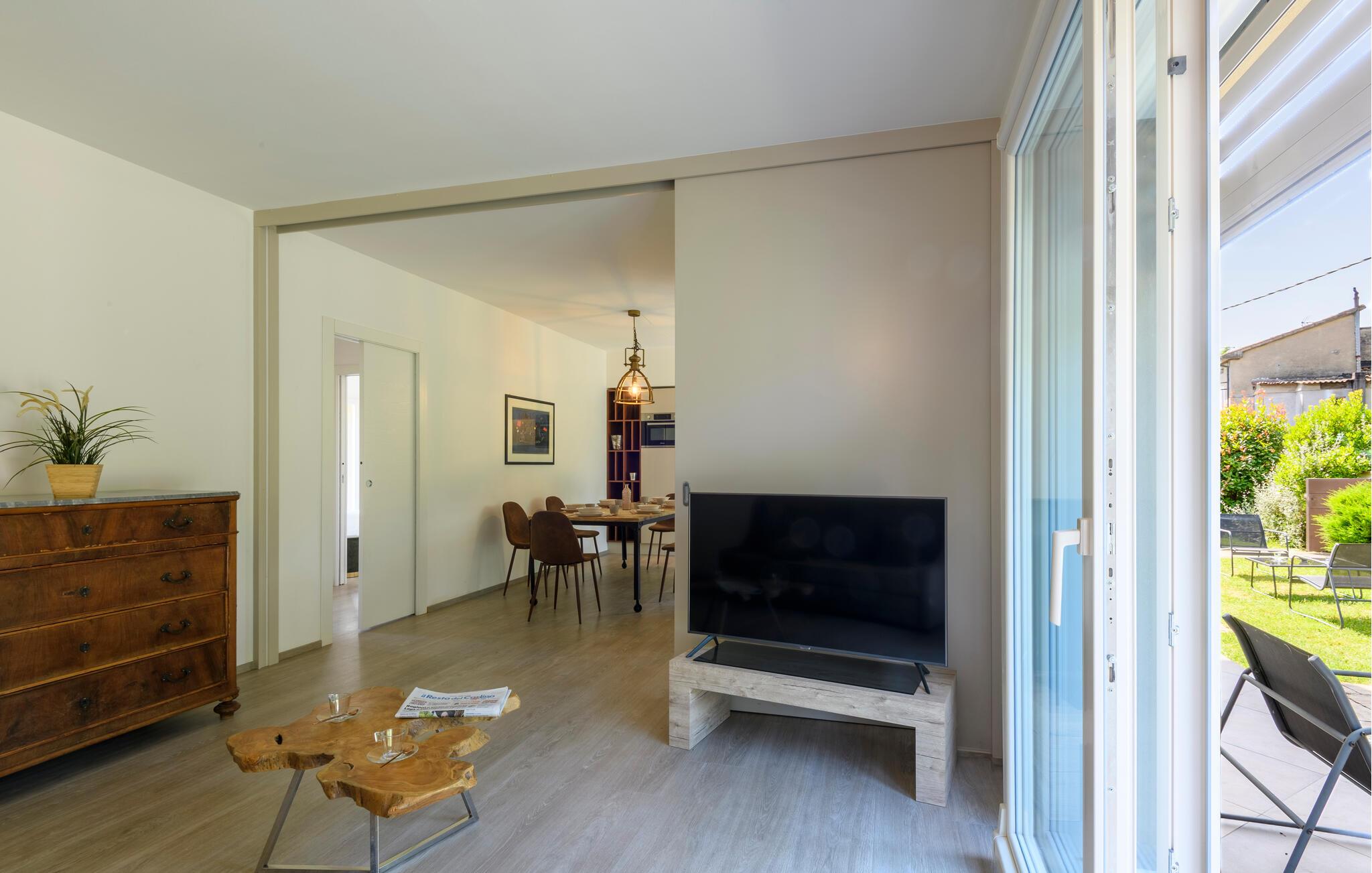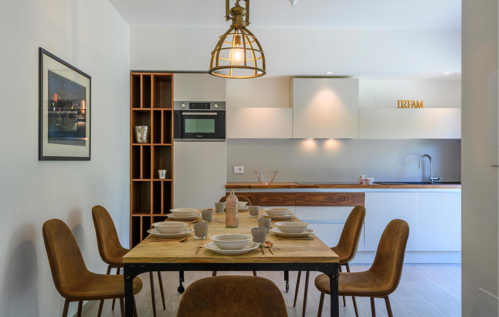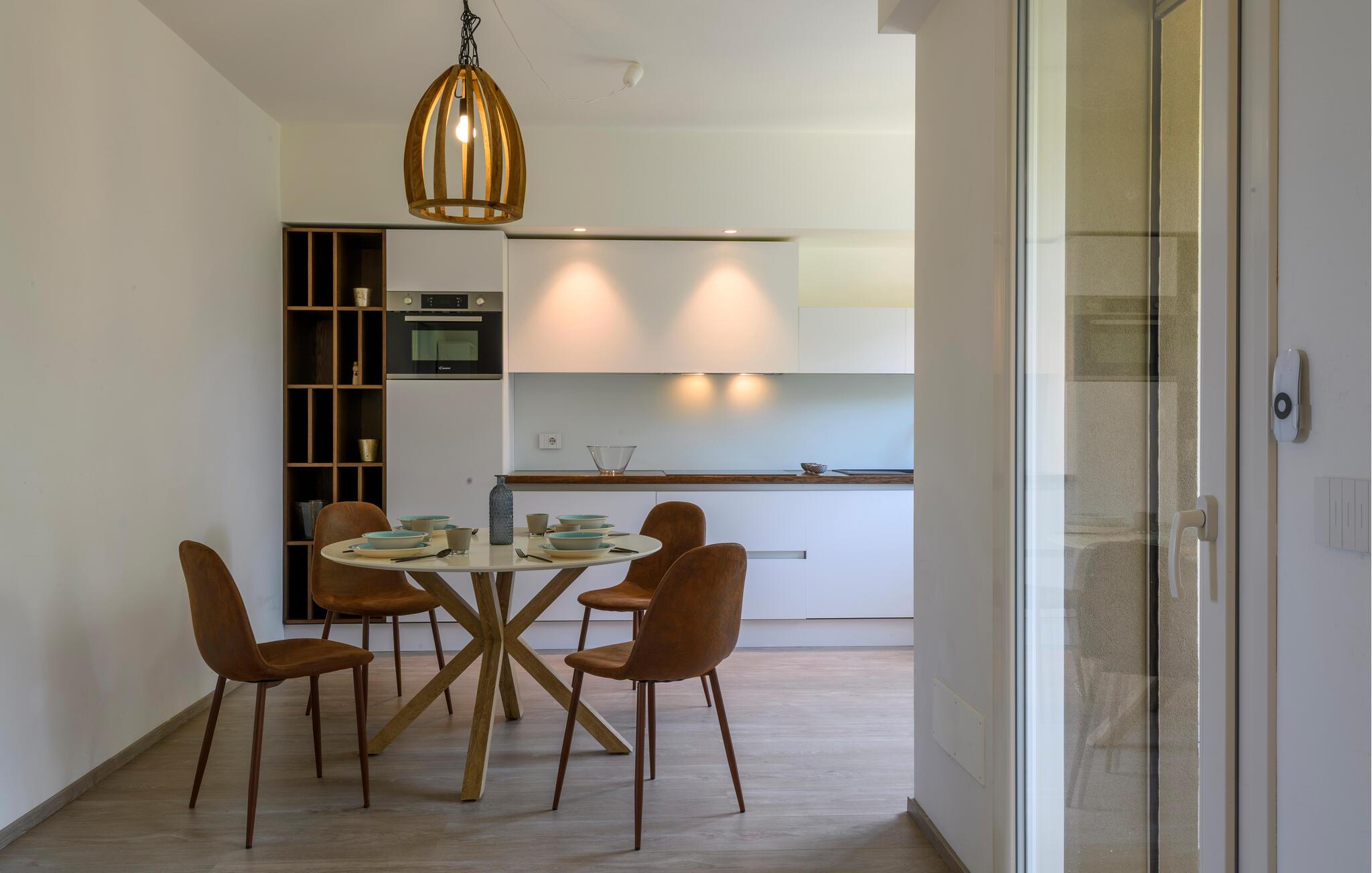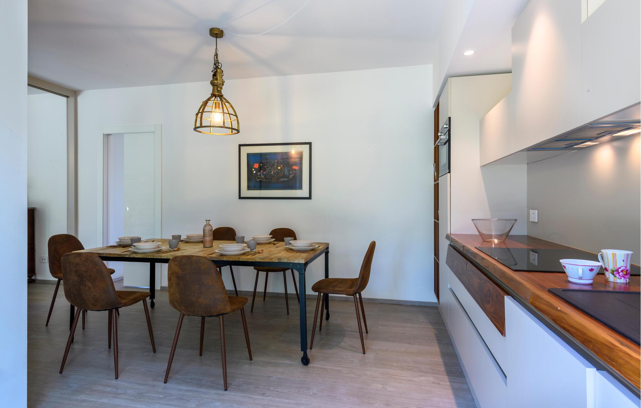 Glæd jer til maksimal komfort i dette rummelige feriehus, som er ideelt til flere familier eller en større gruppe, samtidig med at det giver mulighed for privatliv og fælles oplevelser. Oplev de tre separate og uafhængige boliger. Hver enhed har sit eget køkken og stilfulde opholdsstue, så I kan bevare jeres uafhængighed, mens I stadig bruger tid sammen. Den moderne stil og møbler af høj kvalitet sikrer en behagelig atmosfære.