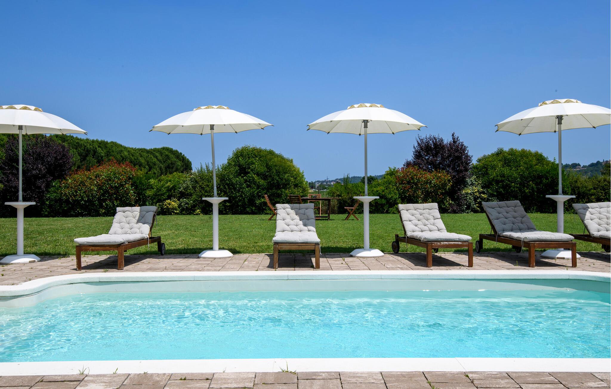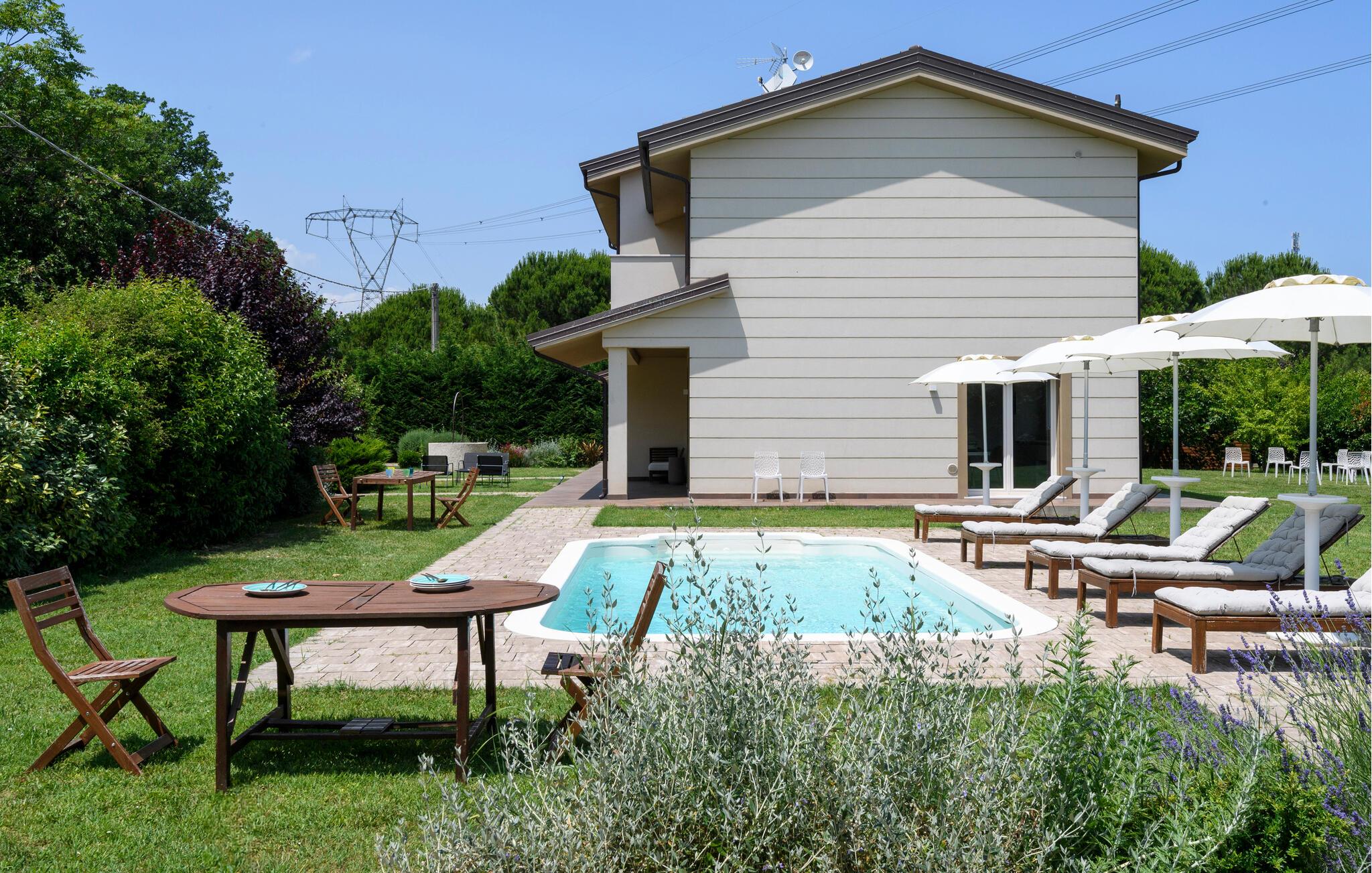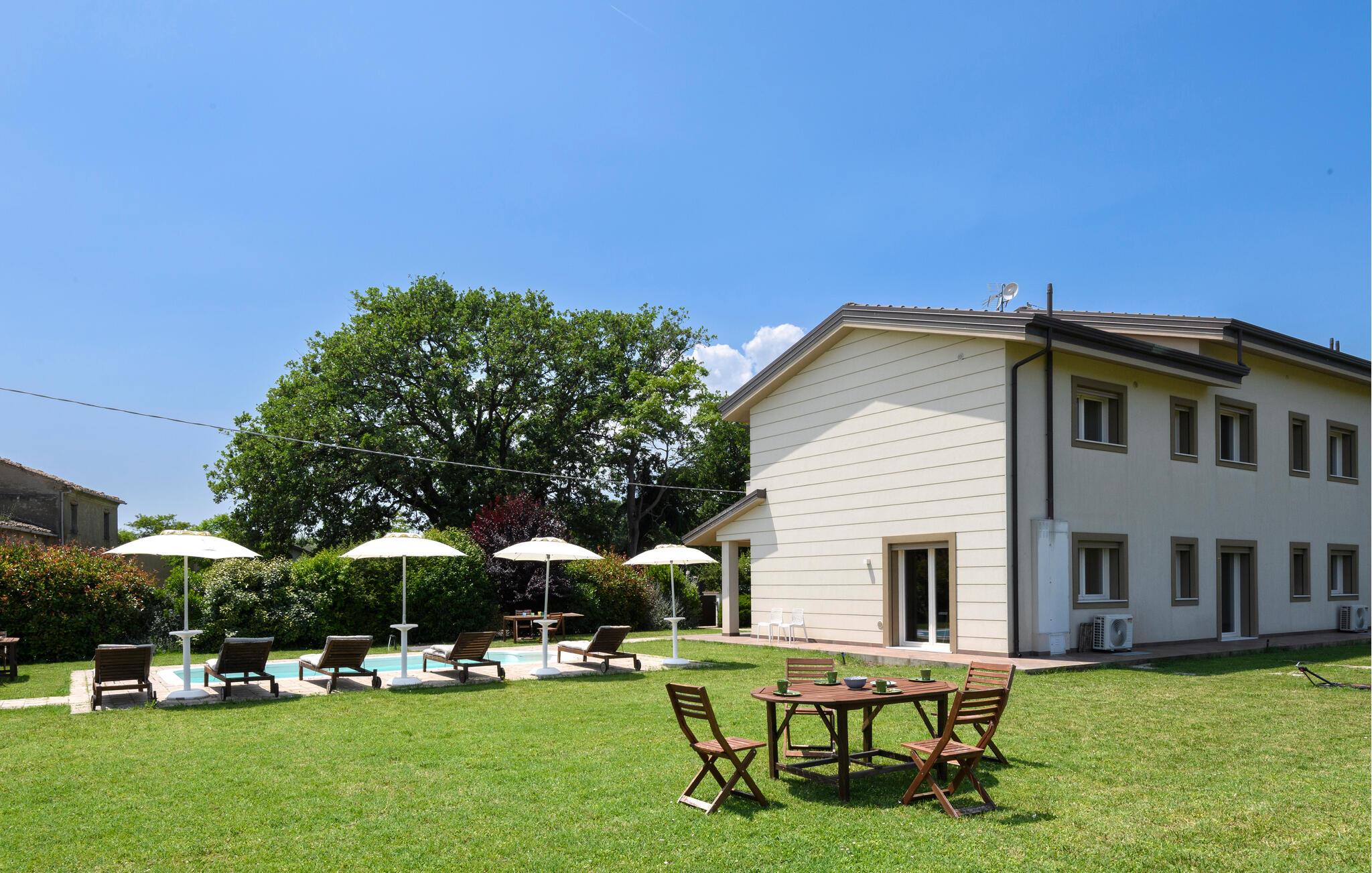 Udnyt den rummelige, flot indrettede have, som giver jer masser af plads til udendørs afslapning. Slap af ved den imponerende pool og nyd solrige dage ved vandet. Lad blikket vandre over det idylliske Romagna-landskab.