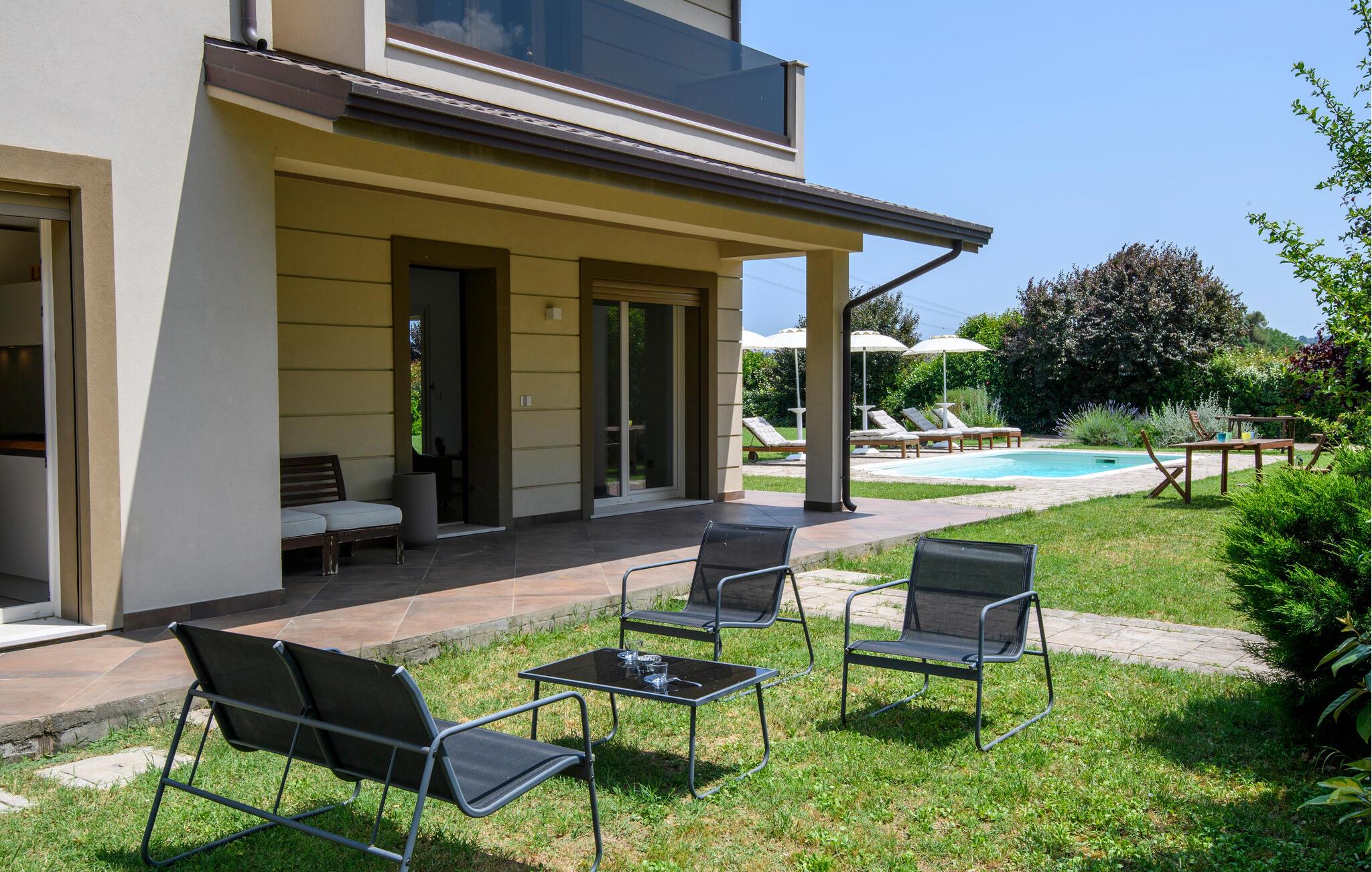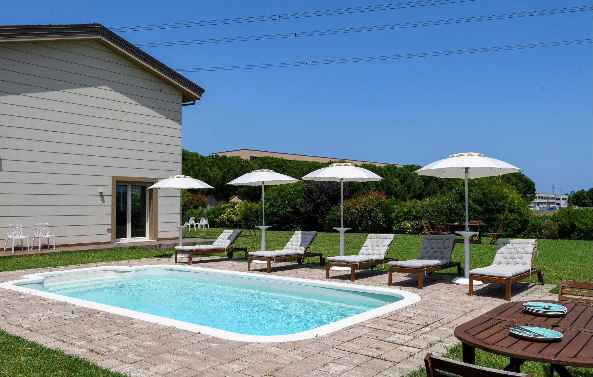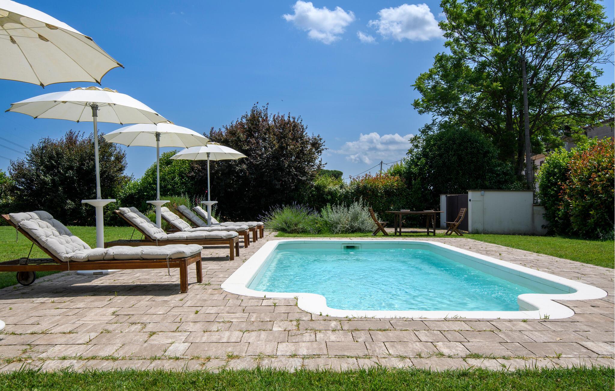 Udnyt den rummelige, flot indrettede have, som giver jer masser af plads til udendørs afslapning. Slap af ved den imponerende pool og nyd solrige dage ved vandet. Lad blikket vandre over det idylliske Romagna-landskab.