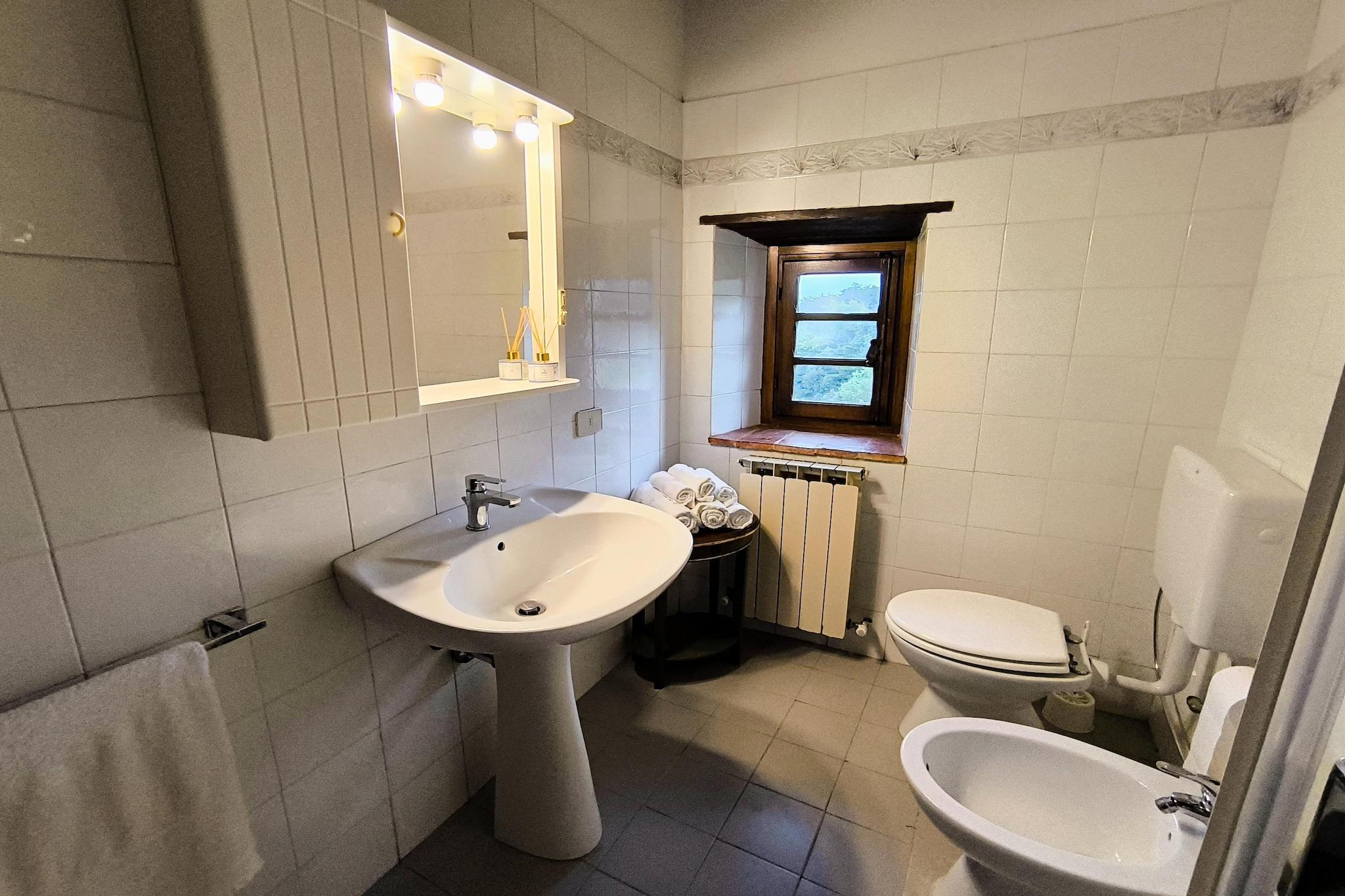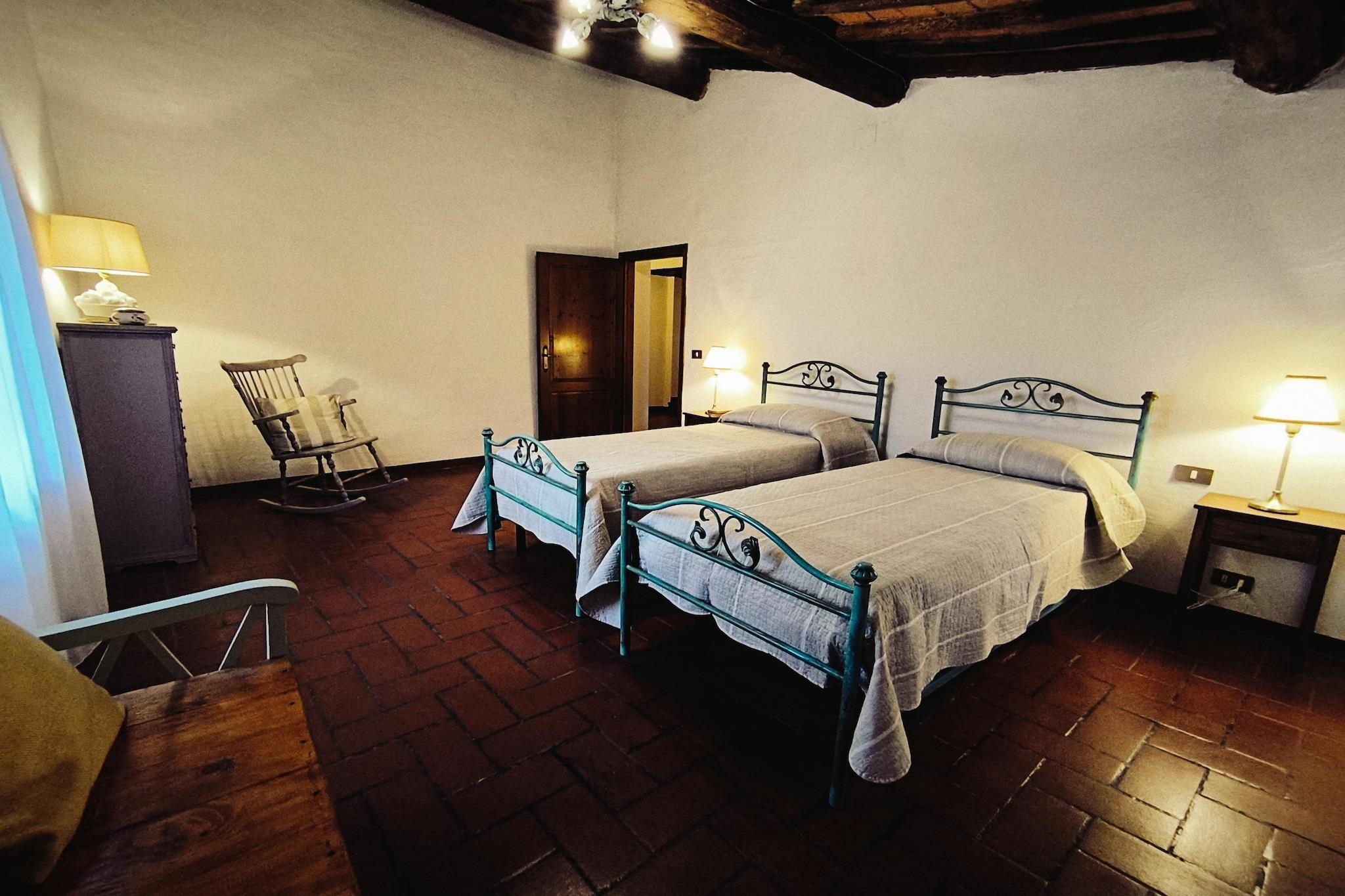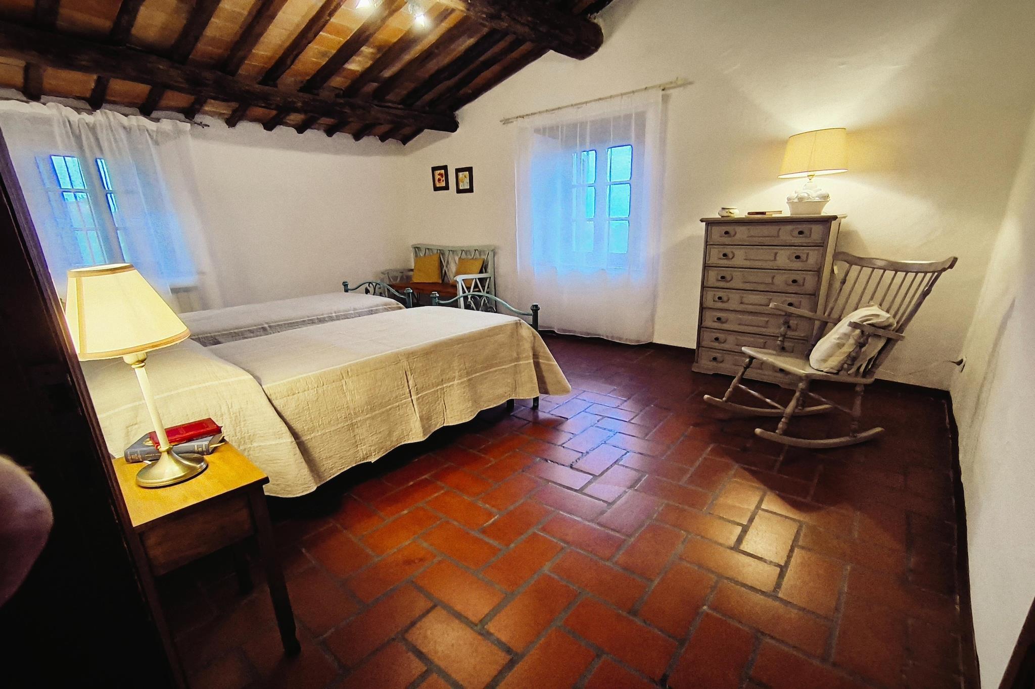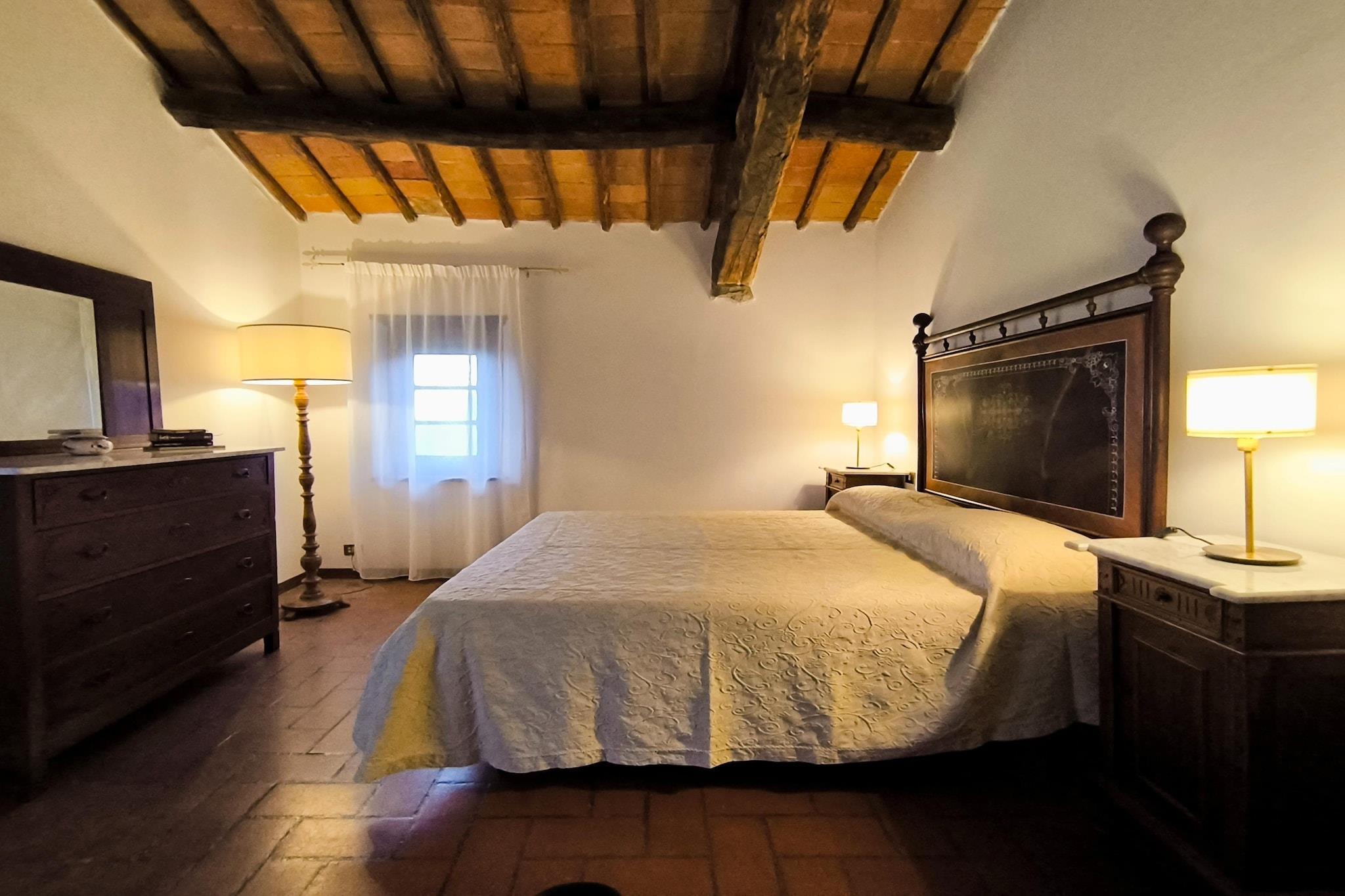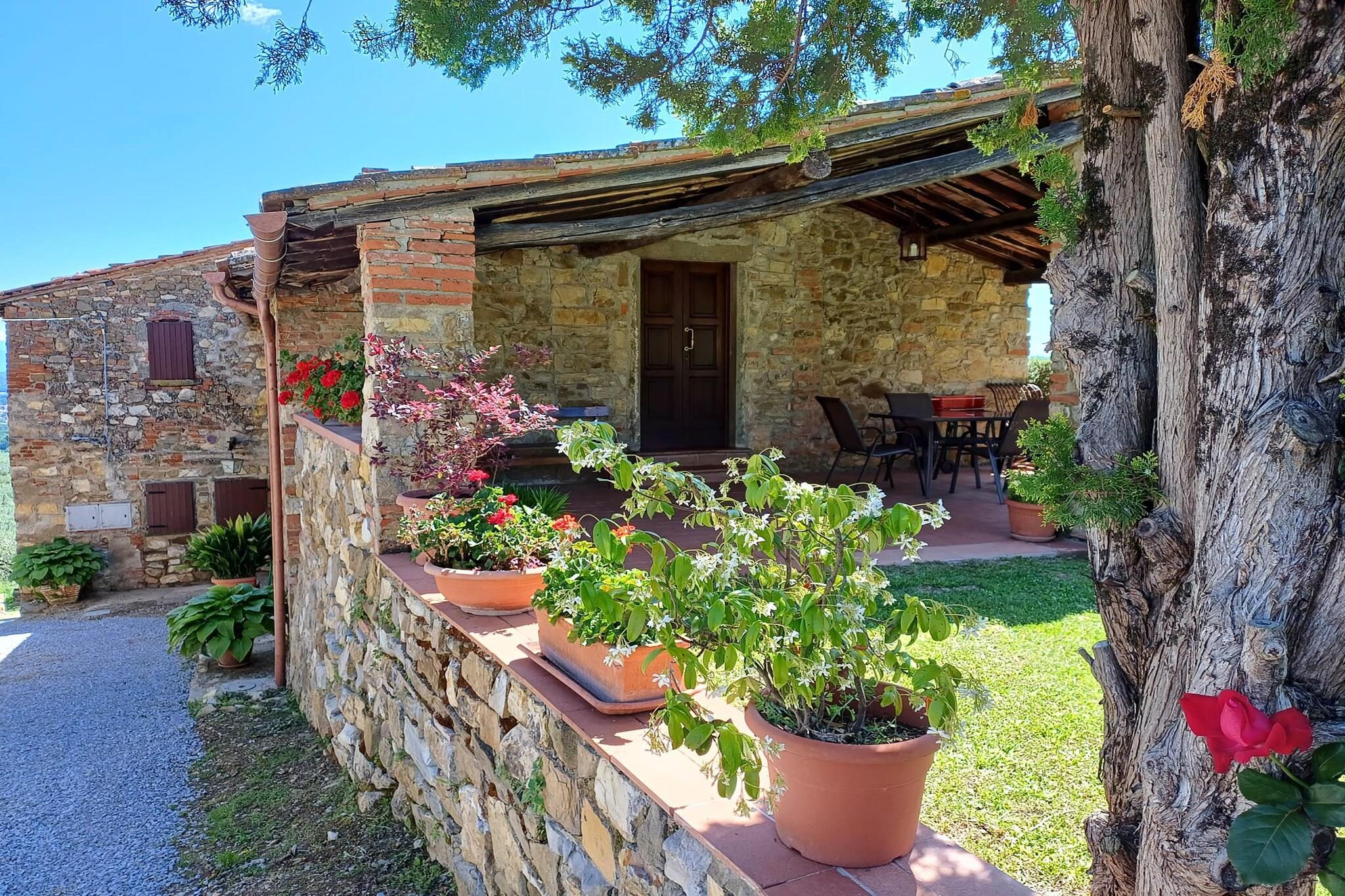 Duften af cypresser og lavendel fylder luften, og du kan slappe af i den smukke have med træer omgivet af vinmarker og olivenlunde. Dit feriehus ligger på en typisk toscansk ejendom, der producerer sin egen vin og olivenolie. Herfra kan du nyde en fantastisk udsigt over det omkringliggende område. Komplekset er baseret på et omhyggeligt restaureret bondehus fra det 11. århundrede: et ideelt sted at glemme hverdagen. Lejligheden, der er indrettet i klassisk og traditionel stil, består af en stor stue med spiseplads og separat køkken, et soveværelse med en dobbeltseng, et soveværelse med to enkeltsenge og to badeværelser med bruser, toilet og bidet. Opvarmning og aircondition er tilgængelig (mod gebyr). Byens centrum med flere restauranter og shoppingmuligheder ligger omkring fem kilometer væk. I det omkringliggende område kan du besøge Siena, Firenze og forskellige interessante toscanske byer såsom Chianti-området og Monteriggioni.