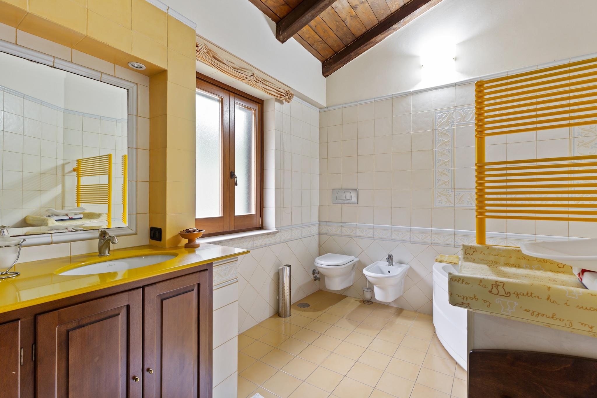 Væk fra byens vanvittige menneskemængde kommer denne ekspansive villa i San Mango D"Aquino med 5 soveværelser, der kan sove op til 10 personer. Ideel til en stor familie- eller gruppeferie, der er en privat pool med boblebad og en fantastisk have til slap af og nyd solen. Smag på de lækre regionale delikatesser og prøv de fine vine fra restauranterne kun 15 minutters kørsel fra dette sted. Når du mangler madlavning til dit ophold, kan du købe dem i butikken dagligvarer 18 km fra dette sted.Det forførende interiør vil glæde dine øjne, mens værelserne vil give total privatliv.Slap af i jacuzzien efter en trættende dag med udflugter.Dette hus giver plads til lange foryngende gåture.Der er en parkeringsplads facilitet og garage til rådighed for din bekvemmelighed. I din fritid kan du spille pool eller tage til fitnesscentret for at træne. o.Lamezia Terme Internationale Lufthavn ligger 31,1 km derfra. Ejeren accepterer kun små hunde.