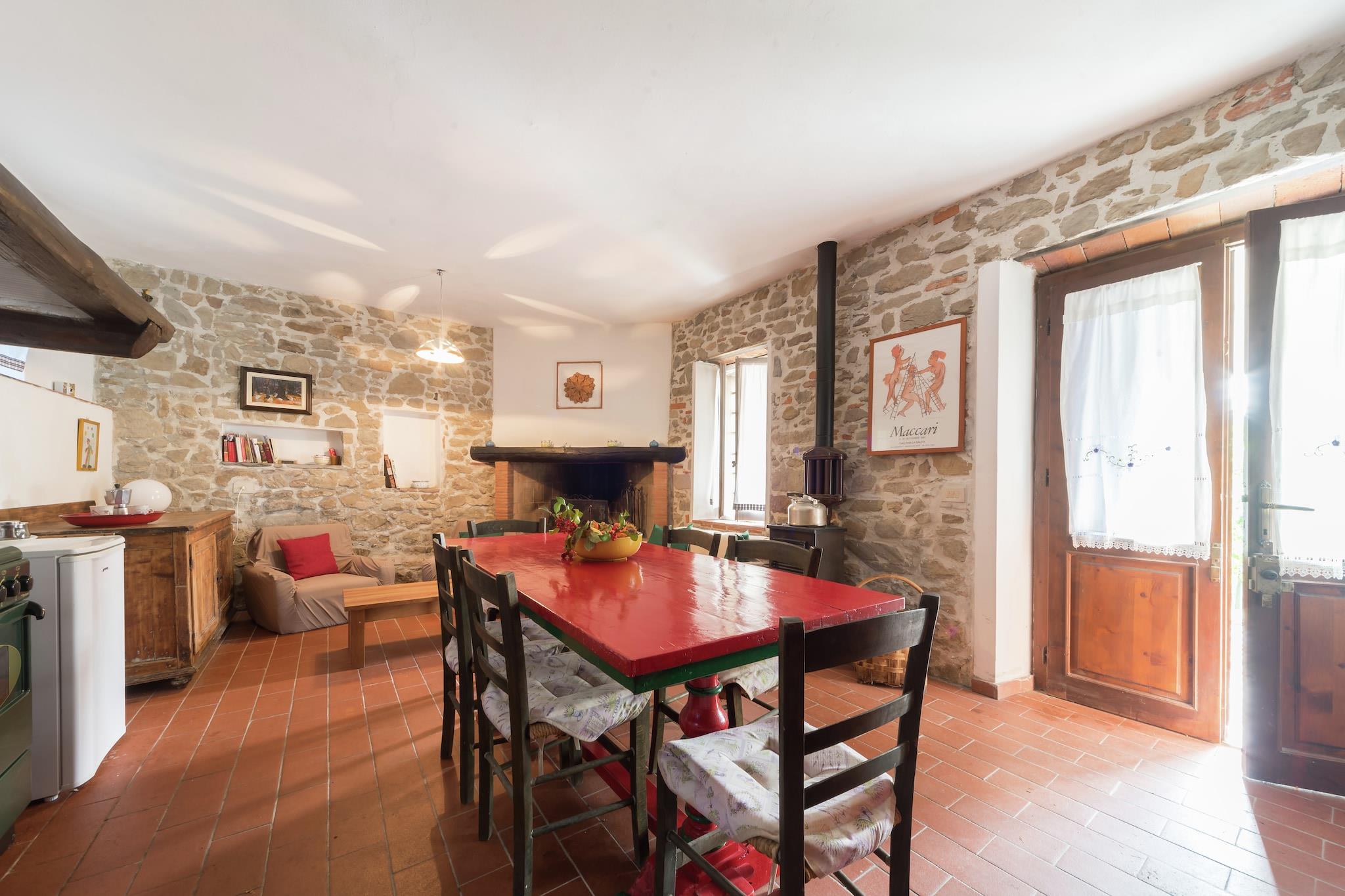Flygt til denne hyggelige hytte i de toscanske bakker, ideel til en familie eller gruppe på 5 gæster. Omgivet af grønne områder og beliggende nær San Marcello Pistoiese, tilbyder huset et fredeligt tilflugtssted med nem adgang til kulturelle perler som Pistoia (29 km), Lucca (50 km) og Firenze (60 km). Hytten har et varmt interiør med pejs i opholds- og spisestuen og et åbent køkken udstyret med 4-brænder, ovn og køleskab. Det omfatter en soveniche med en enkeltseng, to mezzaniner, en med dobbeltseng og en anden med to enkeltsenge, og to badeværelser, hver med bruser, toilet, bidet og håndvask. Udenfor kan du nyde den delvist indhegnede have, slappe af på havemøblerne eller køle af i din private swimmingpool (6 x 5 m, åben maj-sep). Privat parkering og WiFi er inkluderet. Restauranter og et supermarked ligger kun 1 km derfra, hvilket gør hverdagens bekvemmeligheder let tilgængelige. En perfekt blanding af komfort og natur i Toscana!