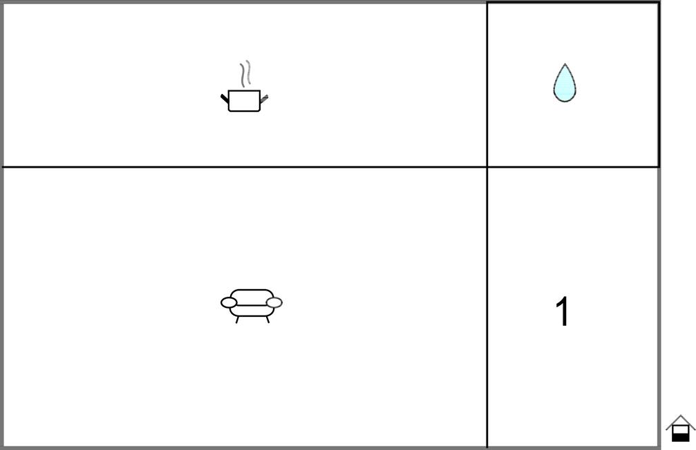 Opholdsstue 34m2 - 2 Sovepladser. (Sofa, madras eller lignende).
