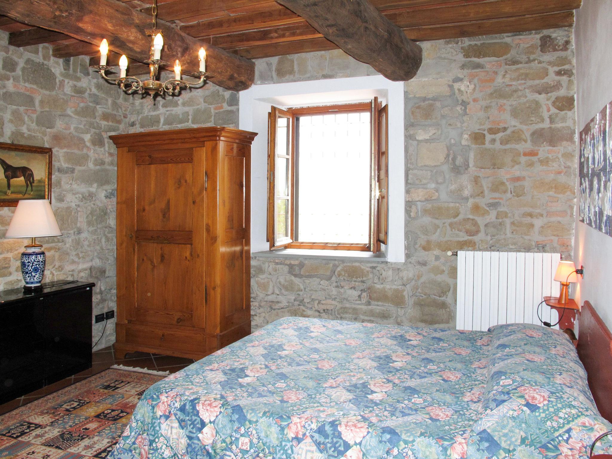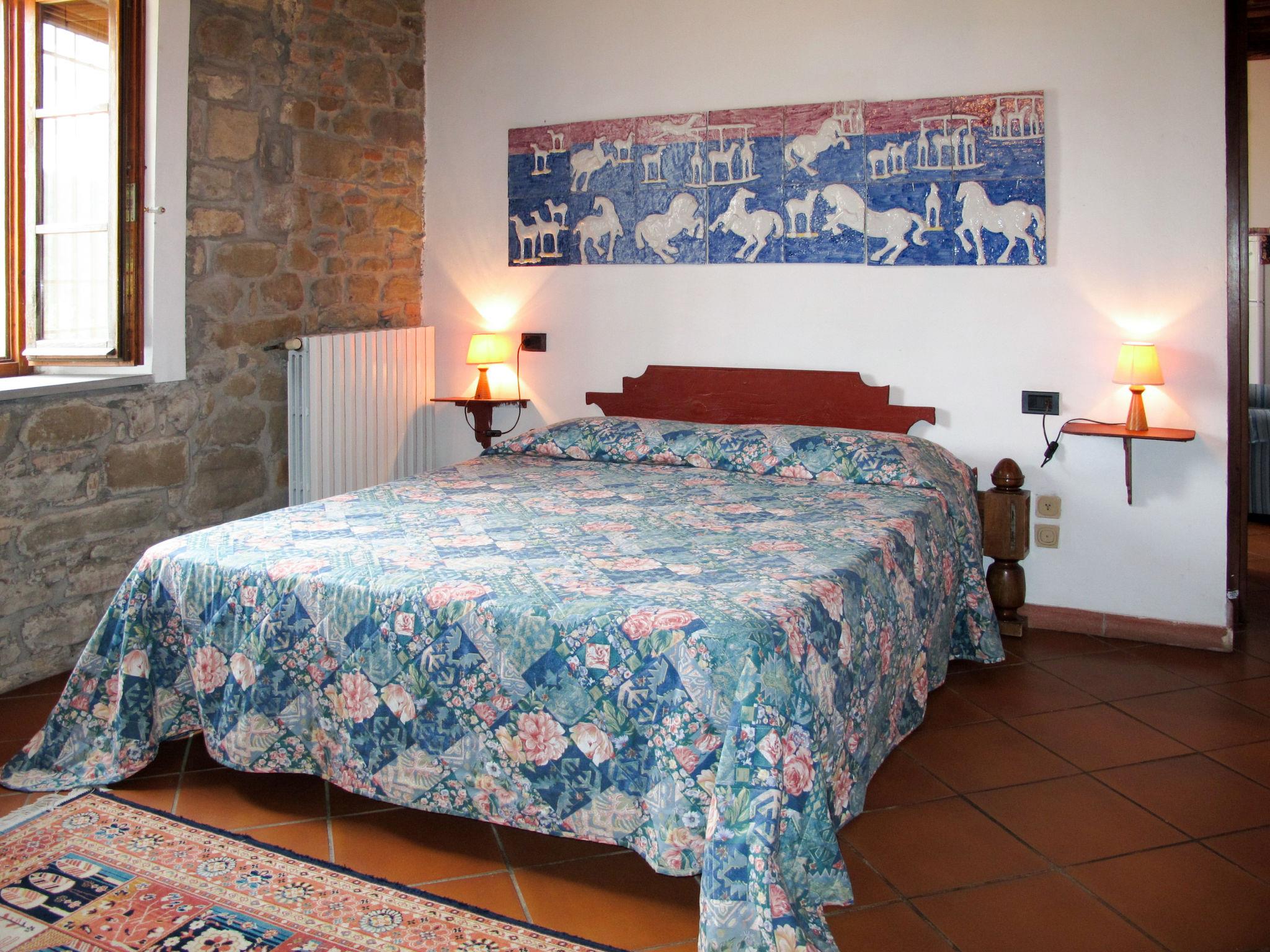 "Rustico", 2-room apartment 45 m2, on the ground floor. Object suitable for 2 adults + 1 child. Practical and rustic furnishings: living/sleeping room with 1 sofabed, open-hearth fireplace, dining table and satellite TV (flat screen). 1 double bedroom with shower/bidet/WC. Open kitchen (oven, 4 gas rings, kettle, freezer, electric coffee machine). Heating (extra). Natural stone floors. Terrace partly roofed, garden. Terrace furniture, barbecue. Marvellous panoramic view of Chianti. Facilities: children's high chair, baby cot for up to 2 year olds, hair dryer. Internet (WiFi, free). Parking (1 car) at the house. Please note: suitable for families. Non-smokers only. Maximum 2 pets/ dogs allowed. Private entrance. IT048021B5HUDSPMZM