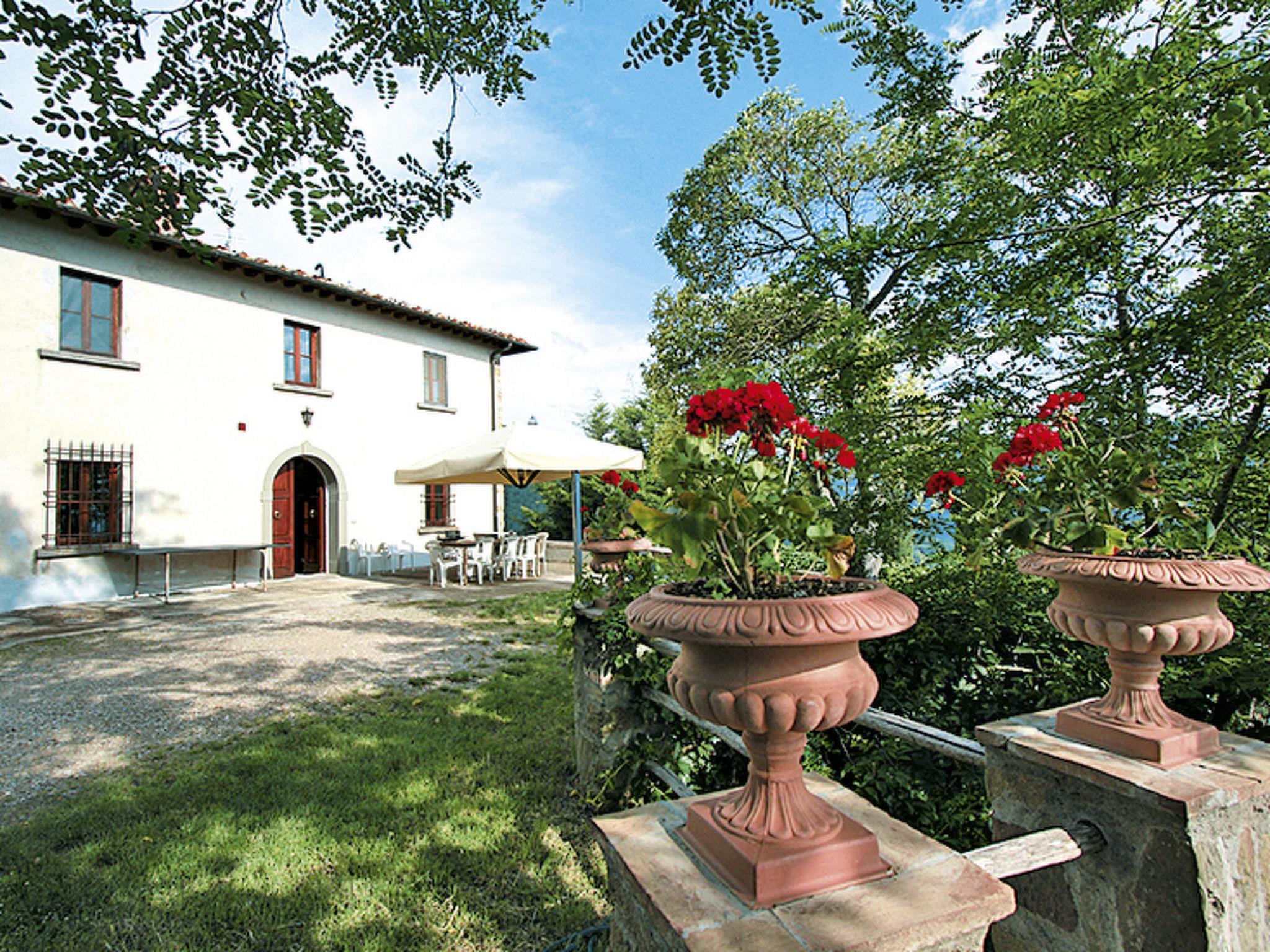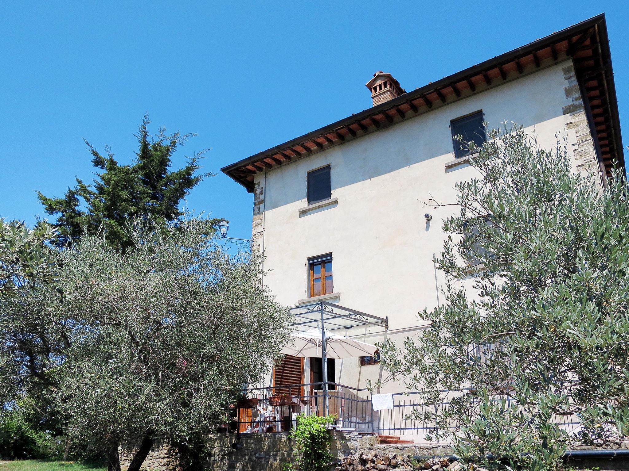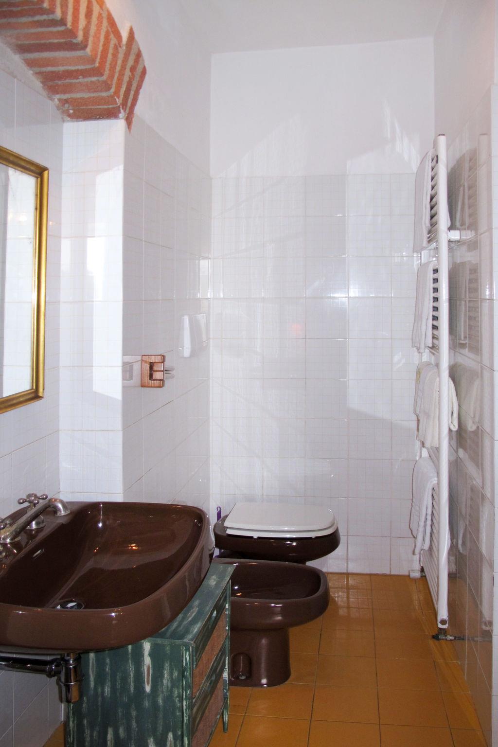 Manor house "Panzalla", detached, surrounded by fields and vineyards. 6 apartments in the residence. Property composed of main house and outbuilding 4 km from the centre of San Polo in Chianti, 16 km from the centre of Impruneta, 23 km from the centre of Firenze, in a secluded, sunny, elevated position, in the countryside. For shared use: natural state property, terraced garden with flowers and trees, meadow, swimming pool fenced (10 x 5 m, depth 150 cm, seasonal availability: 06.May. - 07.Oct.). Outdoor shower, terrace, garden furniture, barbecue, pool maintenance by the owner/gardener. In the house: reception, internet access, WiFi, washing machine (for shared use). 2 km long bumpy motor access (via unmade road). Parking on the premises. Supermarket 4 km, restaurant 4 km, bakery 4 km, bus stop "San Polo in Chianti" 4 km. Golf course (18 hole) 13 km. Nearby attractions: Greve in Chianti 20 km, Radda in Chianti 38 km, San Gimignano 58 m, Siena 75 m, Arezzo 65 m. Please note: car recommended. Suitable for families, baby equipment (included). Cooking courses bookable on request. Local sale of farm products. The owner lives on the same property. All houses/apartments are individually designed/furnished.
