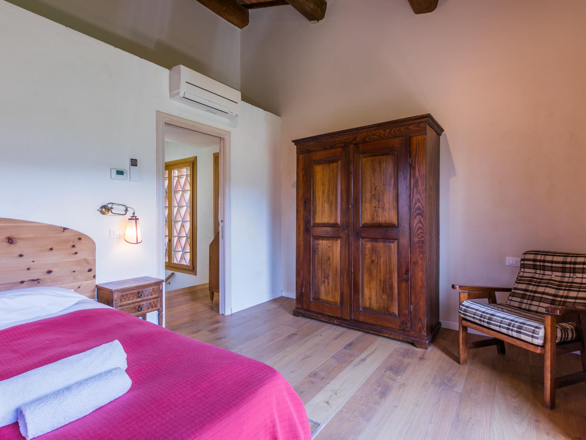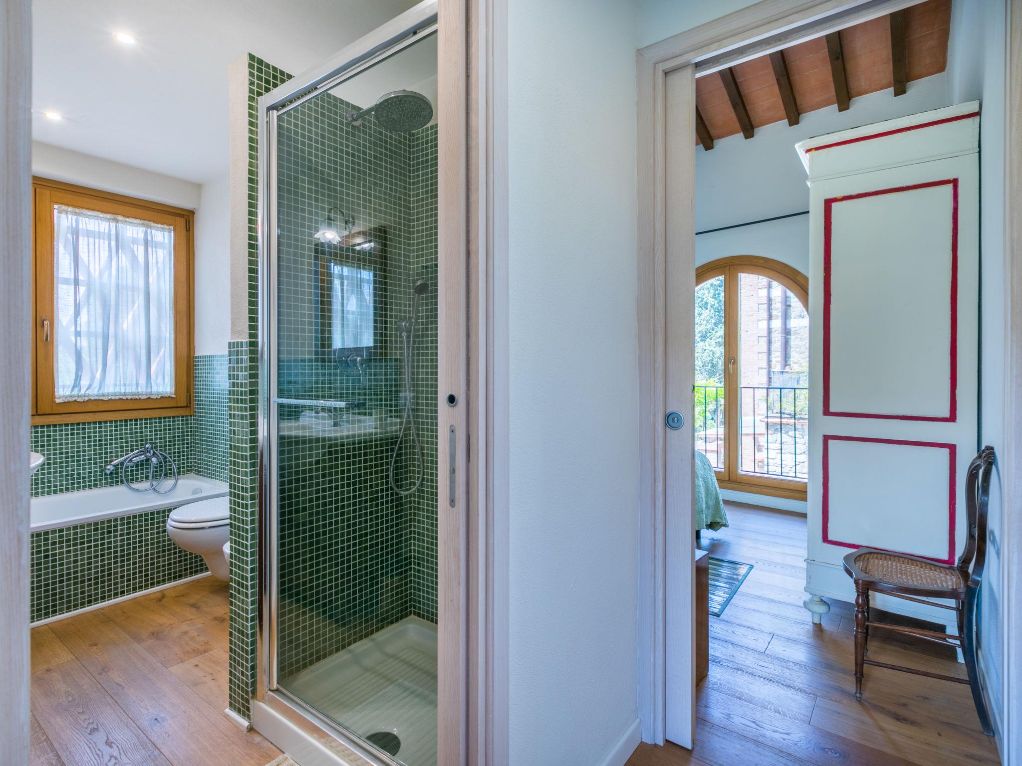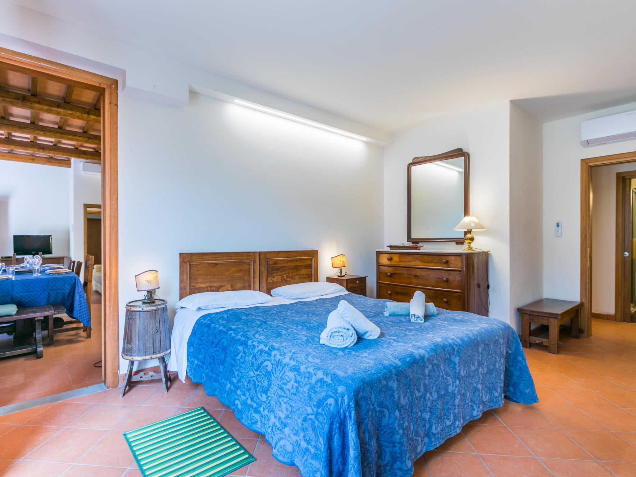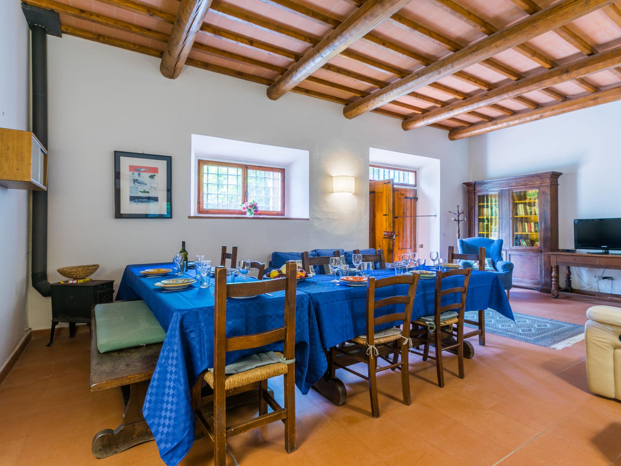 "Policleto", 9-room house 270 m2 on 3 levels. Spacious, partly renovated in 2023, comfortable and cosy furnishings: living/dining room with dining table, satellite TV, wood-burning stove and air conditioning. 2 double bedrooms, each room with shower/bidet/WC and air conditioning. Exit to the garden. 1 double bedroom with shower/bidet/WC and air conditioning. Kitchen (oven, dishwasher, 5 gas rings, toaster, kettle, microwave, freezer, electric coffee machine) with air conditioning. On the lower ground floor: (exterior staircase) living/dining room with kitchen corner. Exit to the garden. 1 double bedroom. Shower/bidet/WC. Upper floor: living/dining room with open-hearth fireplace, satellite TV and air conditioning. Open kitchen (oven, dishwasher, 4 gas rings, toaster). Shower/bidet/WC. 2nd upper floor: 2 double bedrooms, each room with air conditioning. Bath/shower/bidet/WC. Electric heating (extra), air-conditioning. Parquet floors, natural stone floors. Large garden 100 m2. Terrace furniture, barbecue, box-room. Beautiful panoramic view of the countryside. Facilities: washing machine, children's high chair, baby cot for up to 2 year olds. Internet (WiFi, free). Parking at the house. Please note: one double bedroom is outside the apartment. Non-smoking house. Smoke alarm, fire extinguisher. No internal connecting door between the separated properties. IT048001B5KNPC4G7Y