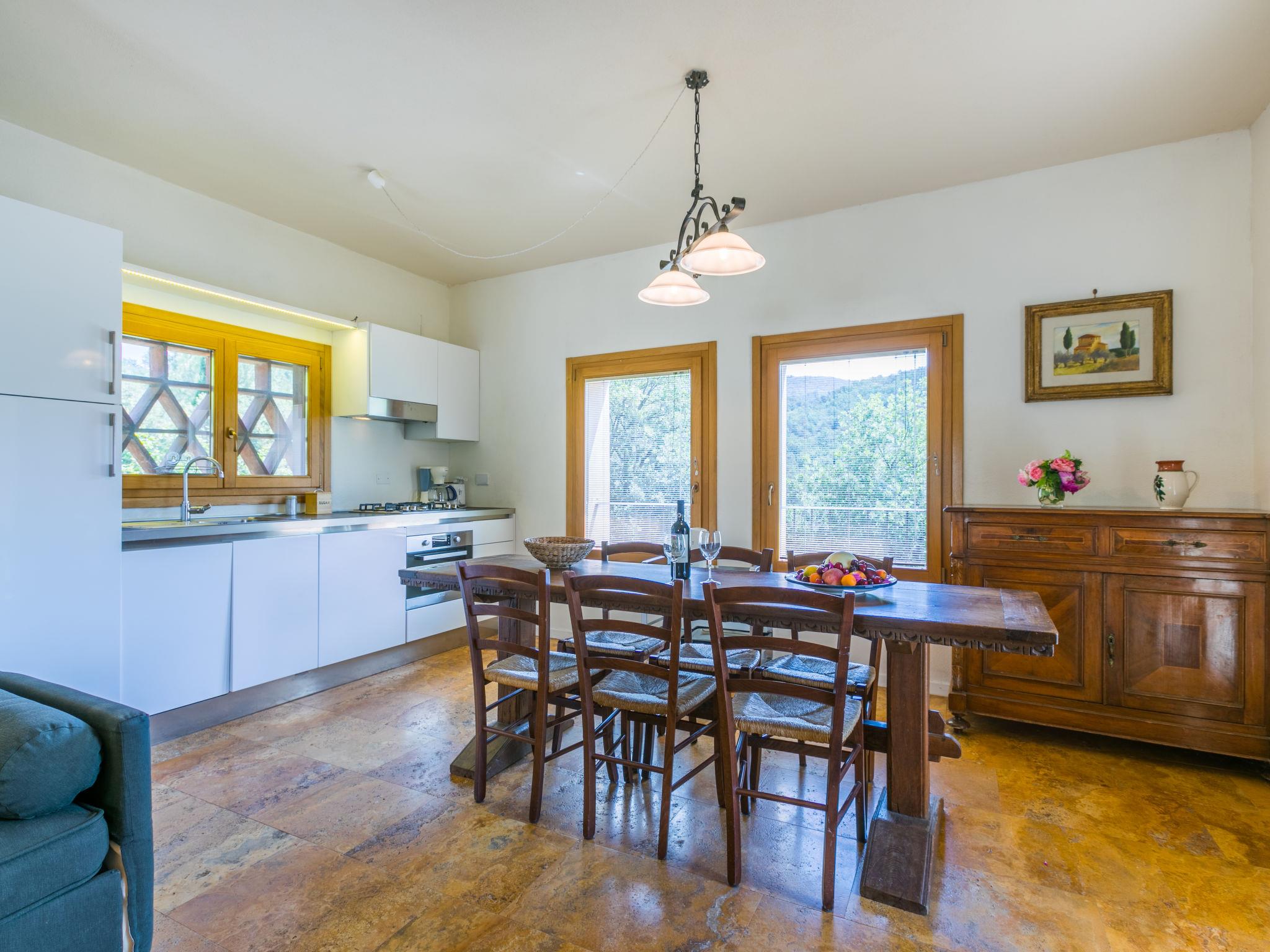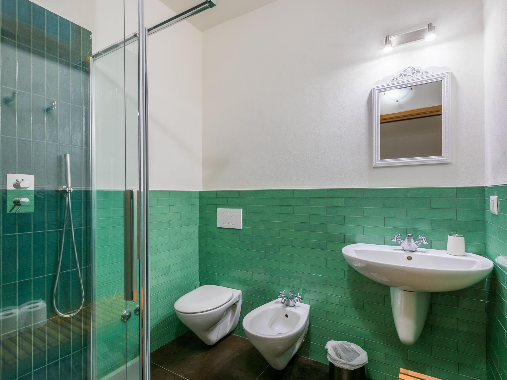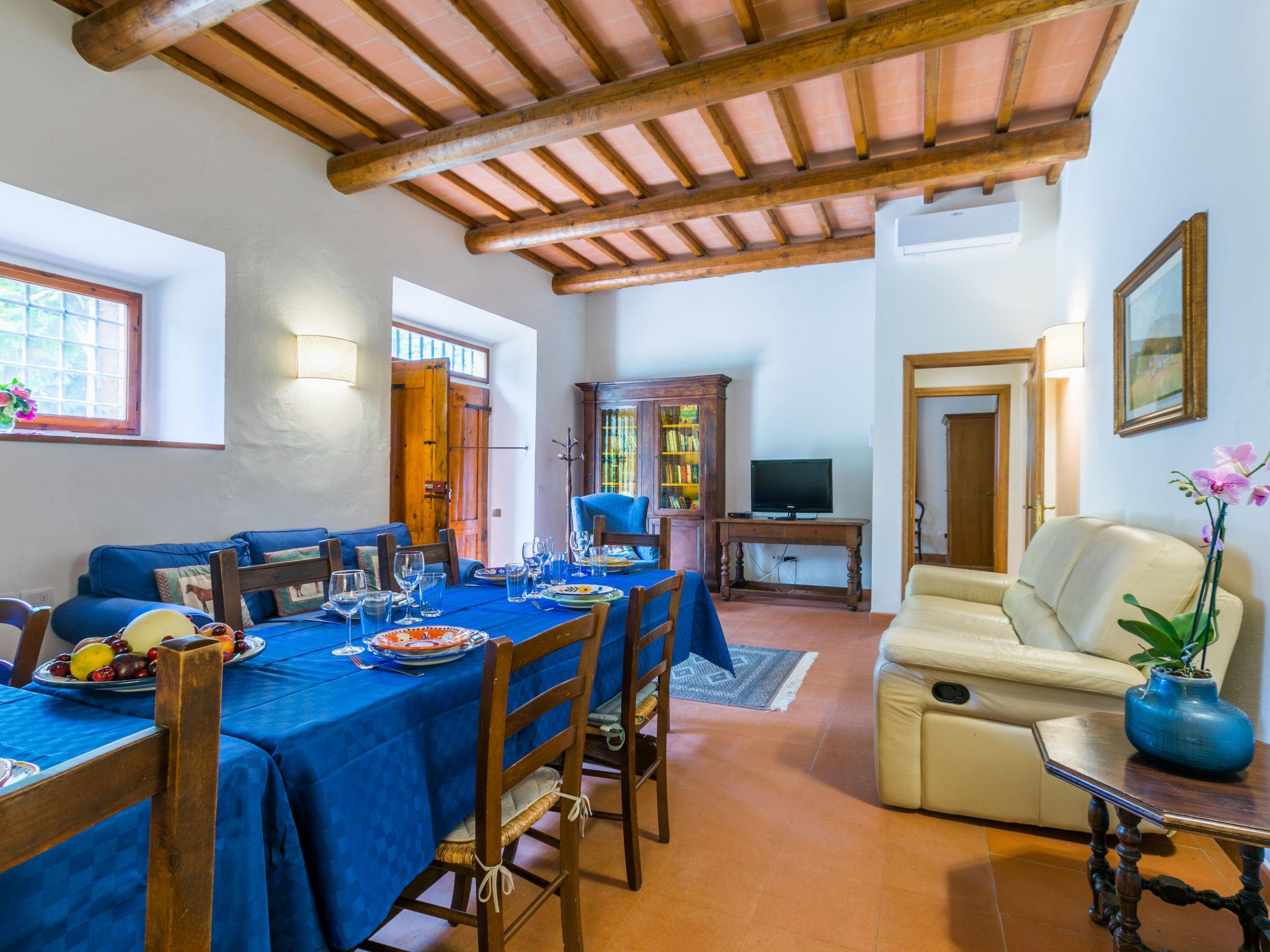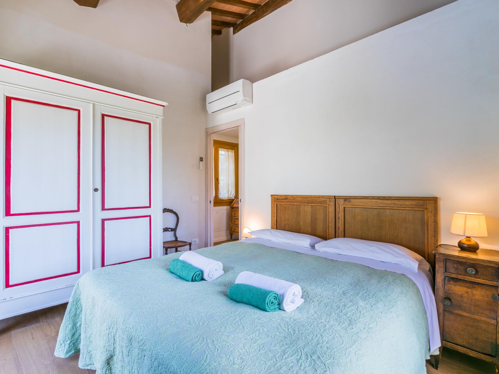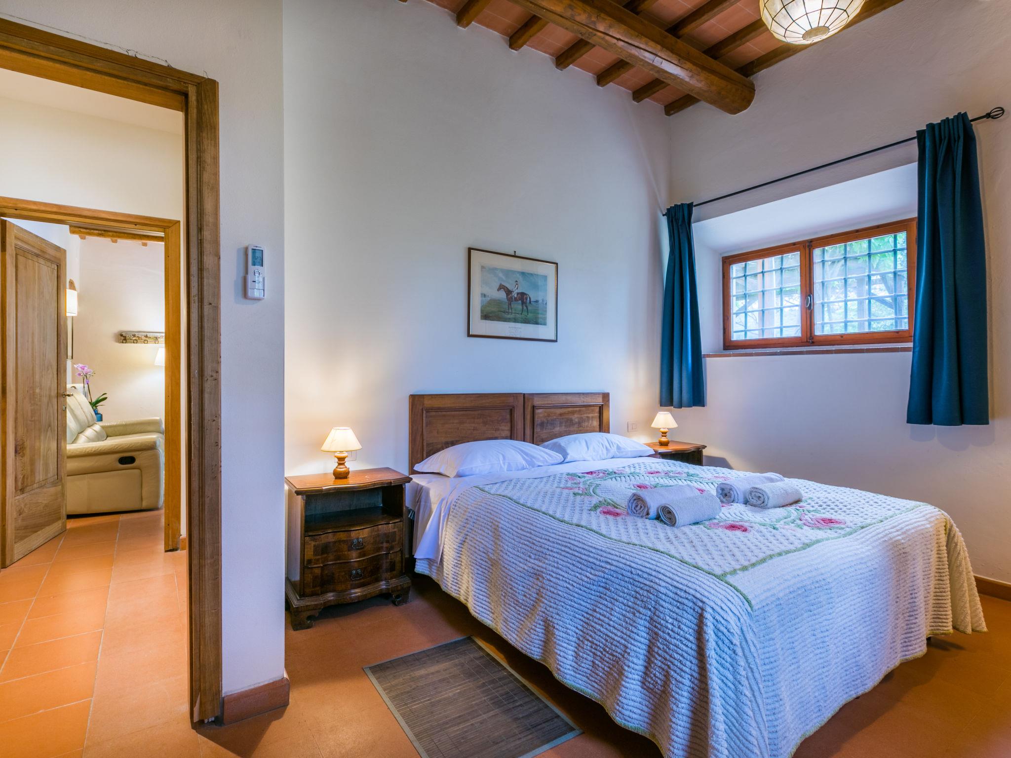 "Policleto", 9-room house 270 m2 on 3 levels. Spacious, partly renovated in 2023, comfortable and cosy furnishings: living/dining room with dining table, satellite TV, wood-burning stove and air conditioning. 2 double bedrooms, each room with shower/bidet/WC and air conditioning. Exit to the garden. 1 double bedroom with shower/bidet/WC and air conditioning. Kitchen (oven, dishwasher, 5 gas rings, toaster, kettle, microwave, freezer, electric coffee machine) with air conditioning. On the lower ground floor: (exterior staircase) living/dining room with kitchen corner. Exit to the garden. 1 double bedroom. Shower/bidet/WC. Upper floor: living/dining room with open-hearth fireplace, satellite TV and air conditioning. Open kitchen (oven, dishwasher, 4 gas rings, toaster). Shower/bidet/WC. 2nd upper floor: 2 double bedrooms, each room with air conditioning. Bath/shower/bidet/WC. Electric heating (extra), air-conditioning. Parquet floors, natural stone floors. Large garden 100 m2. Terrace furniture, barbecue, box-room. Beautiful panoramic view of the countryside. Facilities: washing machine, children's high chair, baby cot for up to 2 year olds. Internet (WiFi, free). Parking at the house. Please note: one double bedroom is outside the apartment. Non-smoking house. Smoke alarm, fire extinguisher. No internal connecting door between the separated properties. IT048001B5KNPC4G7Y