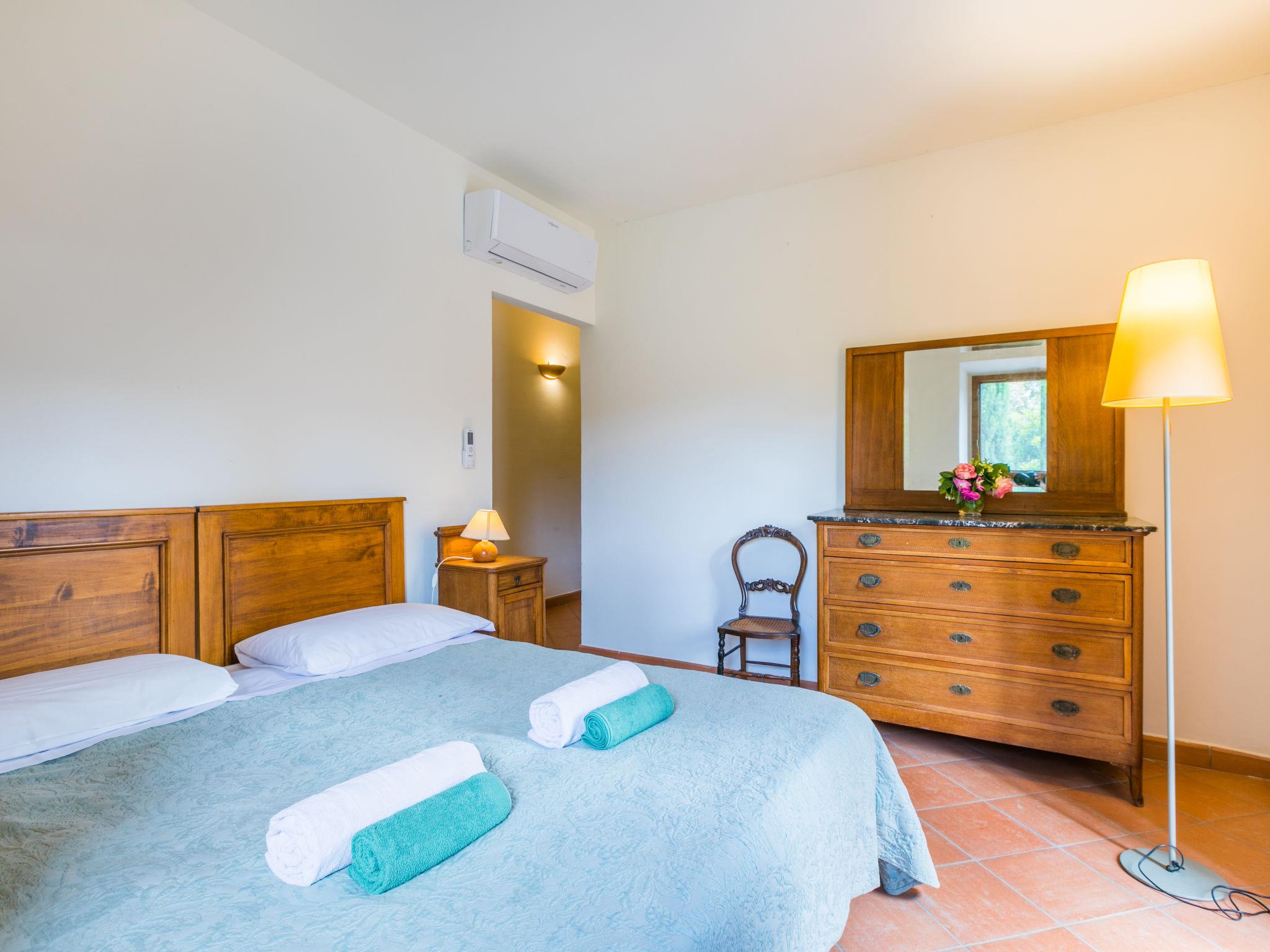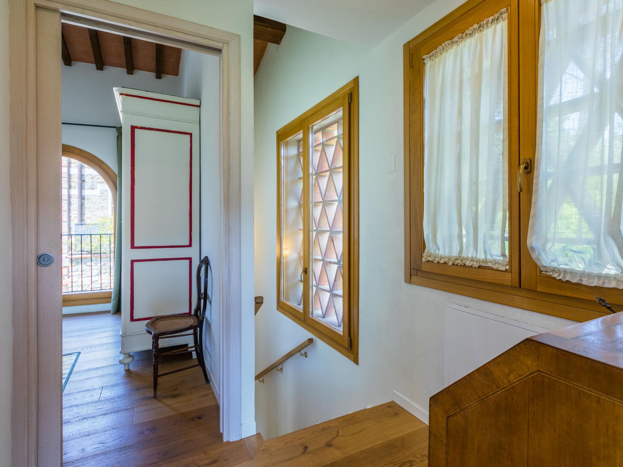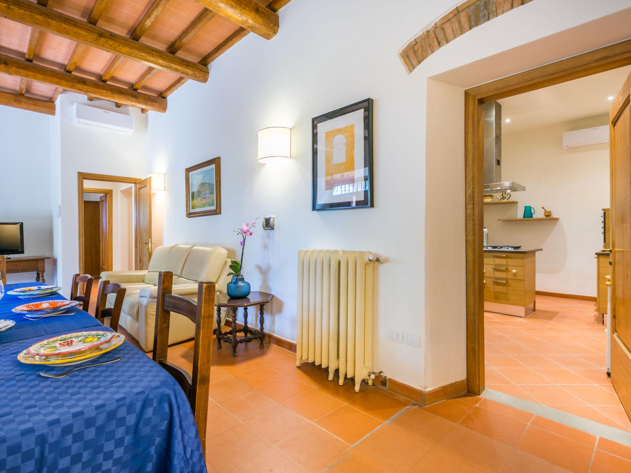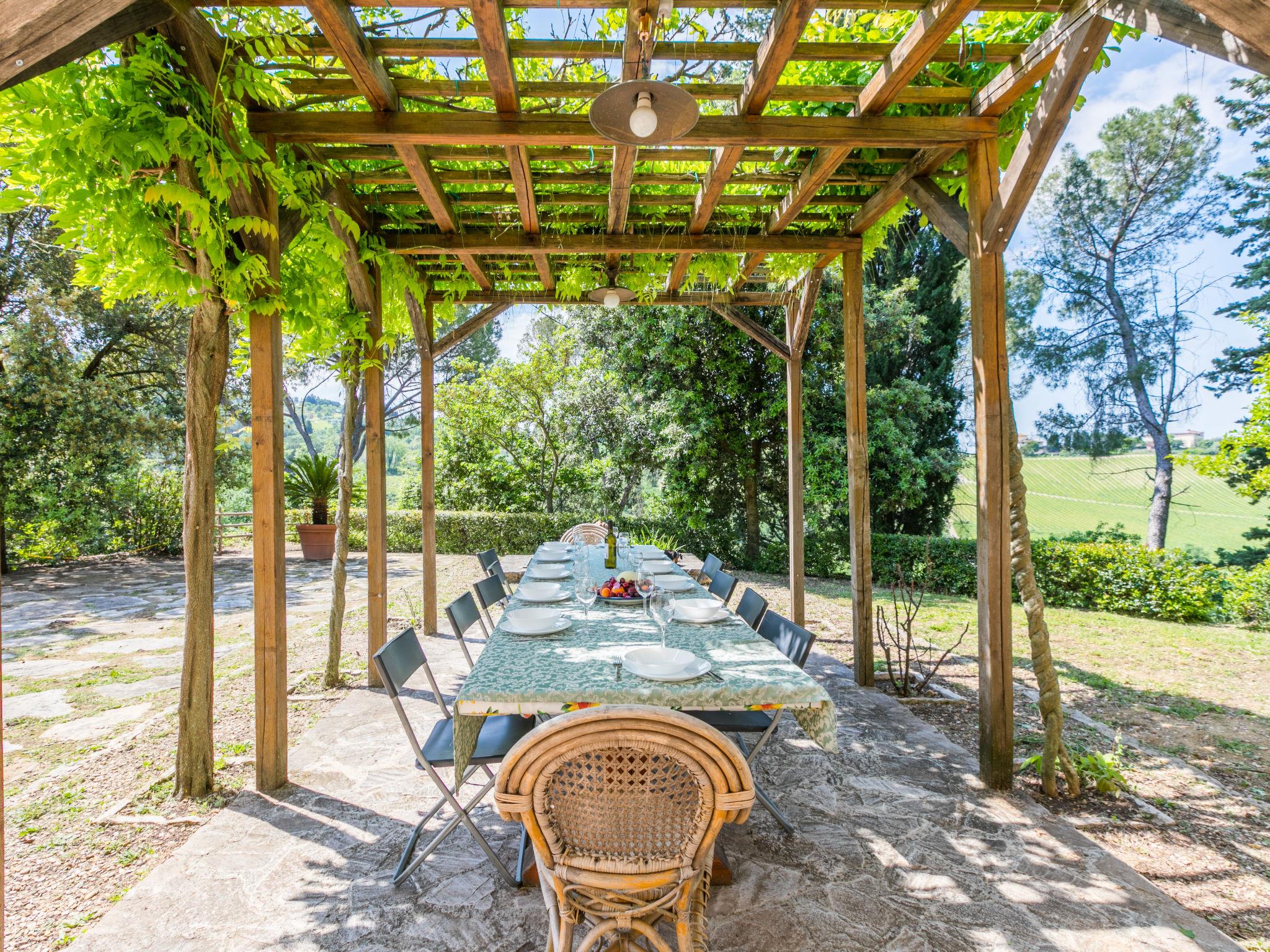 "Policleto", 9-room house 270 m2 on 3 levels. Spacious, partly renovated in 2023, comfortable and cosy furnishings: living/dining room with dining table, satellite TV, wood-burning stove and air conditioning. 2 double bedrooms, each room with shower/bidet/WC and air conditioning. Exit to the garden. 1 double bedroom with shower/bidet/WC and air conditioning. Kitchen (oven, dishwasher, 5 gas rings, toaster, kettle, microwave, freezer, electric coffee machine) with air conditioning. On the lower ground floor: (exterior staircase) living/dining room with kitchen corner. Exit to the garden. 1 double bedroom. Shower/bidet/WC. Upper floor: living/dining room with open-hearth fireplace, satellite TV and air conditioning. Open kitchen (oven, dishwasher, 4 gas rings, toaster). Shower/bidet/WC. 2nd upper floor: 2 double bedrooms, each room with air conditioning. Bath/shower/bidet/WC. Electric heating (extra), air-conditioning. Parquet floors, natural stone floors. Large garden 100 m2. Terrace furniture, barbecue, box-room. Beautiful panoramic view of the countryside. Facilities: washing machine, children's high chair, baby cot for up to 2 year olds. Internet (WiFi, free). Parking at the house. Please note: one double bedroom is outside the apartment. Non-smoking house. Smoke alarm, fire extinguisher. No internal connecting door between the separated properties. IT048001B5KNPC4G7Y