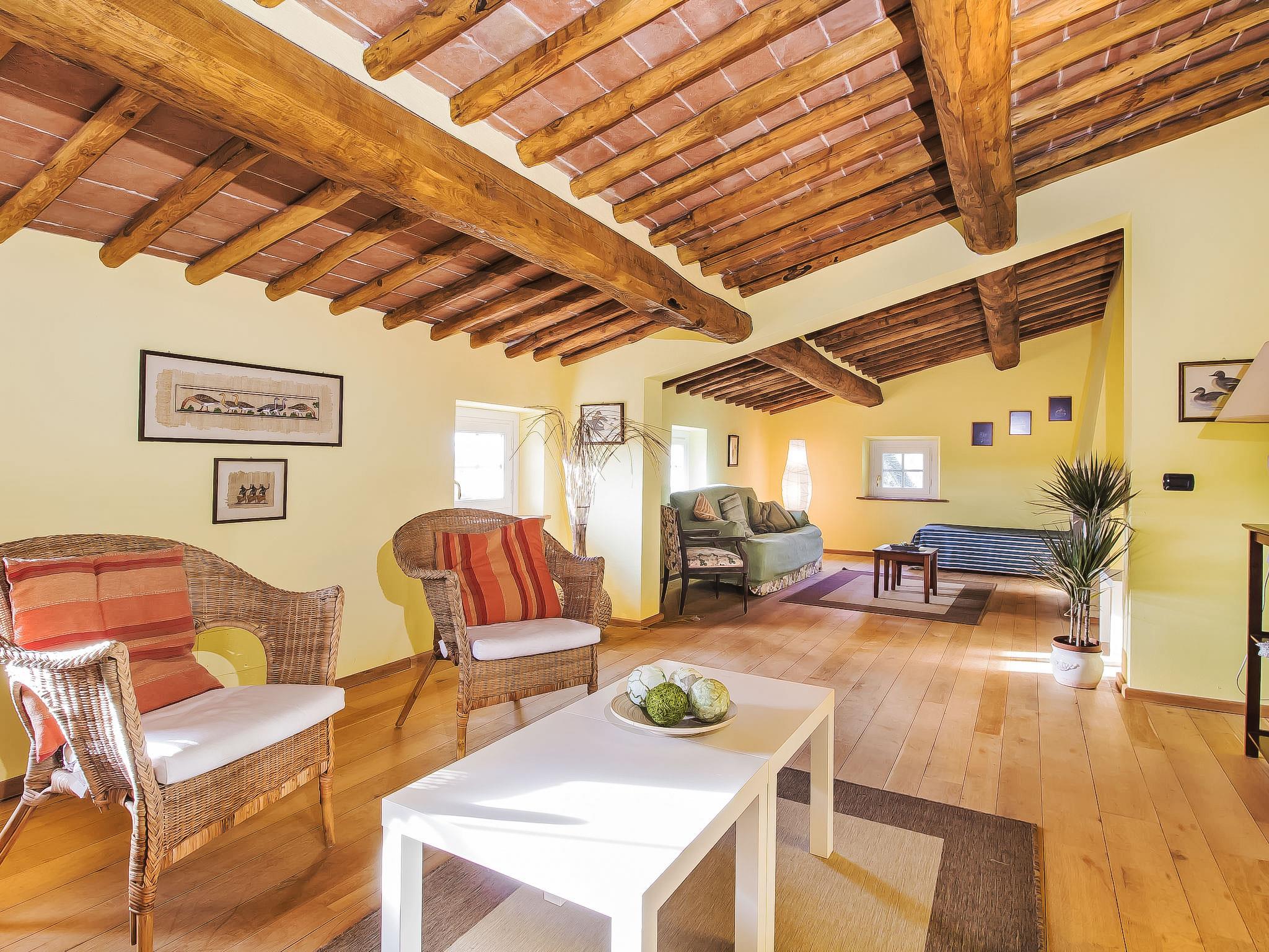 8-room house 260 m2 on 2 levels. Spacious, beautiful and tasteful furnishings: large living room with open-hearth fireplace and TV (flat screen). Exit to the garden, to the loggia. Dining room with dining table. Exit to the garden. 1 double bedroom. Exit to the loggia. 1 room with 2 beds. Kitchen (4 hot plates, oven, dishwasher, microwave, freezer, electric coffee machine). Exit to the patio. 2 showers/bidet/WC. Upper floor: living room with sloping ceilings, ceiling height 175 cm with TV. 1 double bedroom, ceiling height 175 cm with air conditioning. 1 room, ceiling height 175 cm with 2 beds and air conditioning. 1 room, ceiling height 175 cm with 2 beds. 2 showers/bidet/WC. Wooden floors, natural stone floors. Patio, garden, porch. Barbecue, sitting area. Facilities: washing machine, children's high chair, baby cot for up to 2 year olds. Internet (WiFi, free). Parking. Suitable for families. Maximum 2 pets/ dogs allowed. Beautiful ceilings, contemporary furnishings that makes a cozy atmospher. There’s furnished loggia ideal for outdoor dining and a ping-pong table. IT049018C2BGJ9URLF