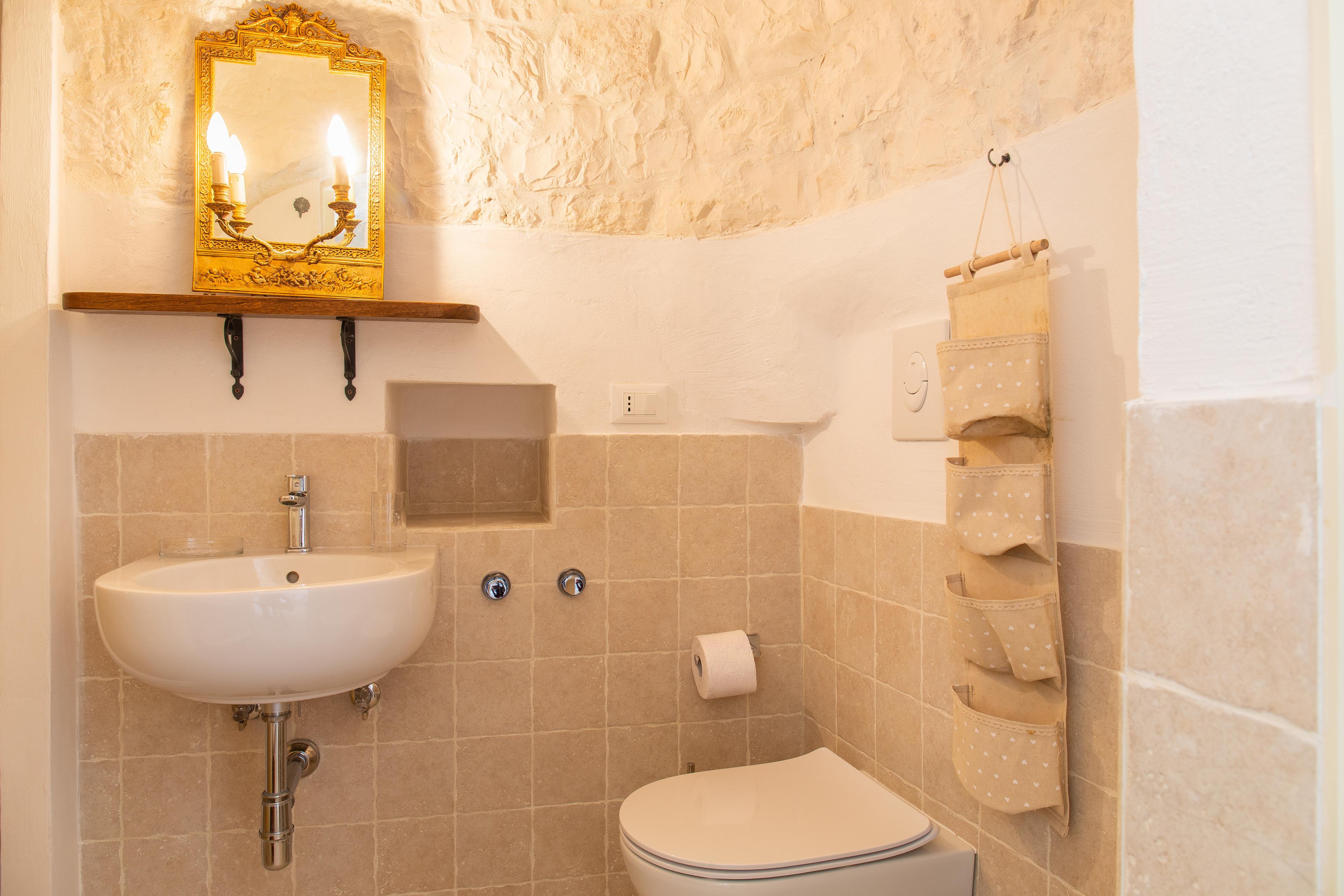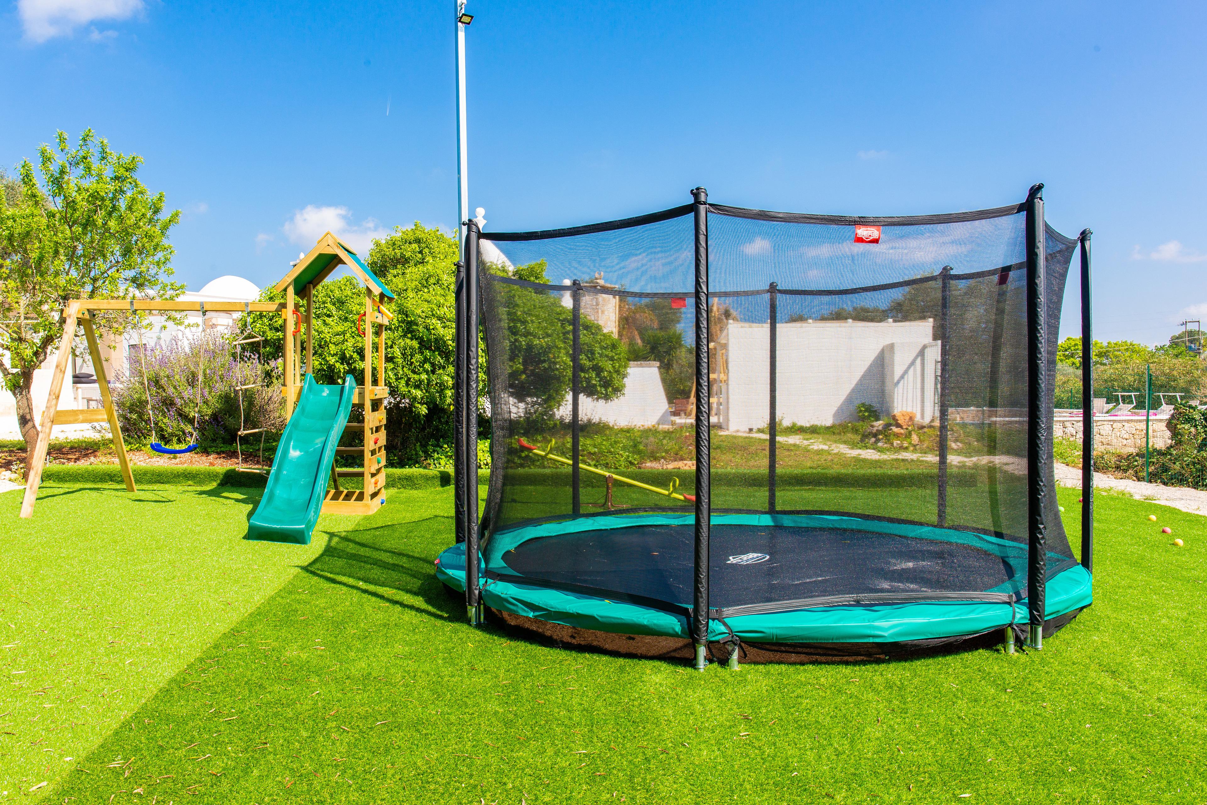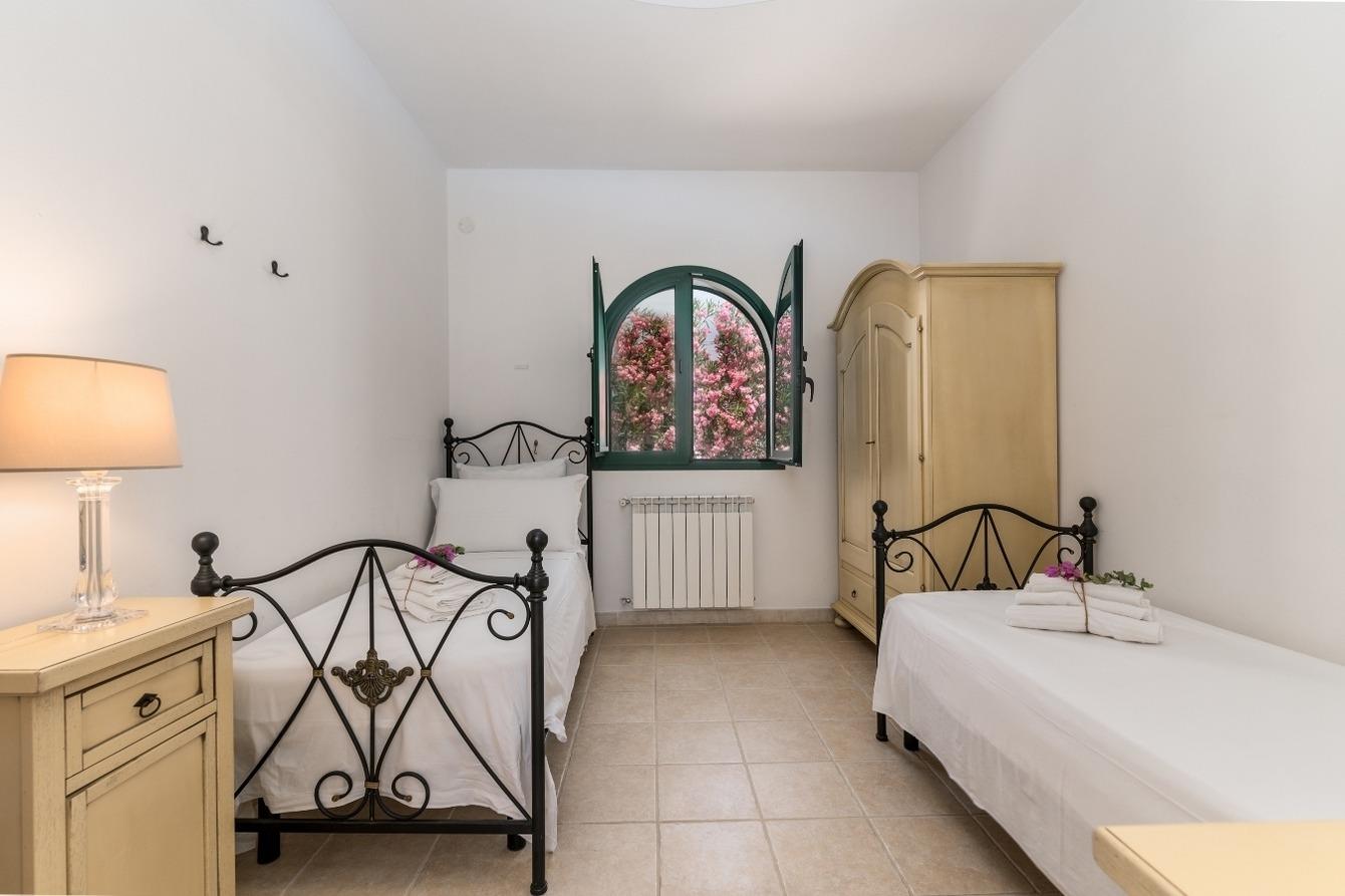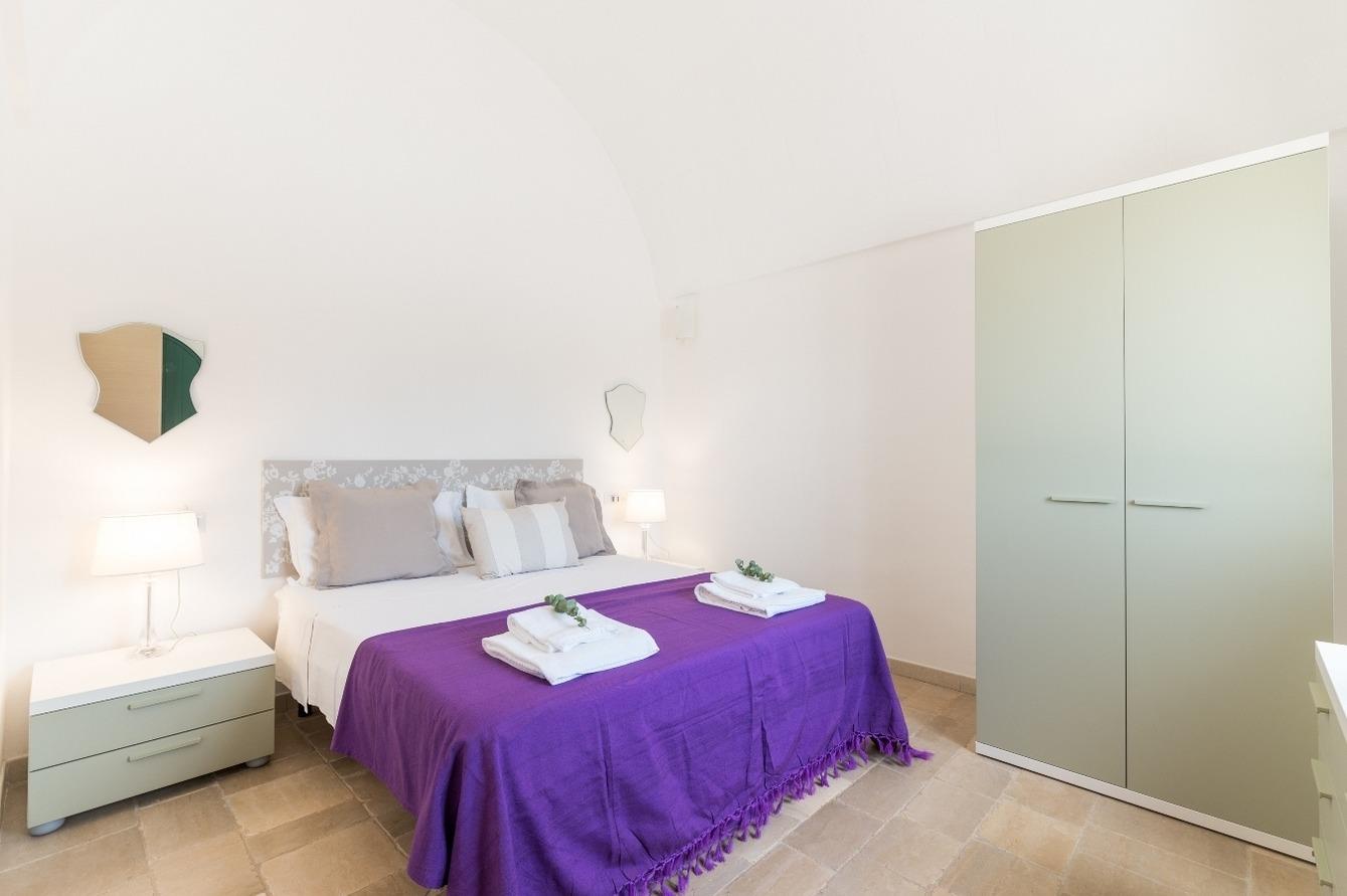 Das Hauptgebäude bietet eine voll ausgestattete Küche, ein Wohnzimmer, ein Schlafzimmer mit Doppelbett und ein Bad mit Dusche. Mit externem Zugang zum Hauptgebäude und angeschlossenem Gebäude betreten Sie ein anderes Gebäude mit drei Schlafzimmern und zwei Bädern mit Dusche. Insbesondere gibt es hier ein Schlafzimmer mit Doppelbett und en-suite Badezimmer, ein Schlafzimmer mit Doppelbett und ein Schlafzimmer mit zwei Betten Einzel. Mit externem Zugang von der Hauptstruktur und daran befestigt gibt es einen Trullo mit zwei Einzelbetten (Doppelnutzung) und ein Badezimmer mit Dusche. Für Mahlzeiten im Freien gibt es drei Veranden. Für die Kinder gibt es die Federn, die Schaukel und die Rutsche. Es gibt fünf Klimaanlagen und die Heizungsanlage. Der Pool ist 10 x 4 m groß.