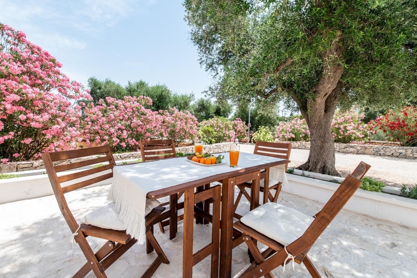 Mieten Sie Trulli mit privatem Pool in Apulien in der Nähe von Ostuni, nur 14 km von den Sandstränden und 20 km vom Flughafen Brindisi entfernt. Es bietet Platz für eine fünfköpfige Familie und sogar für Gruppen von bis zu 10 Personen. Es befindet sich in einem Park mit Olivenbäumen, 1000 m von einem Bauernhof mit Tieren entfernt, auf dem frische regionale Produkte verkauft werden. Genießen Sie die Ruhe, die dieses kleine Paradies bietet, sowie einen Spielplatz für Kinder und die Nähe zur nur 9 km entfernten Autobahn.
