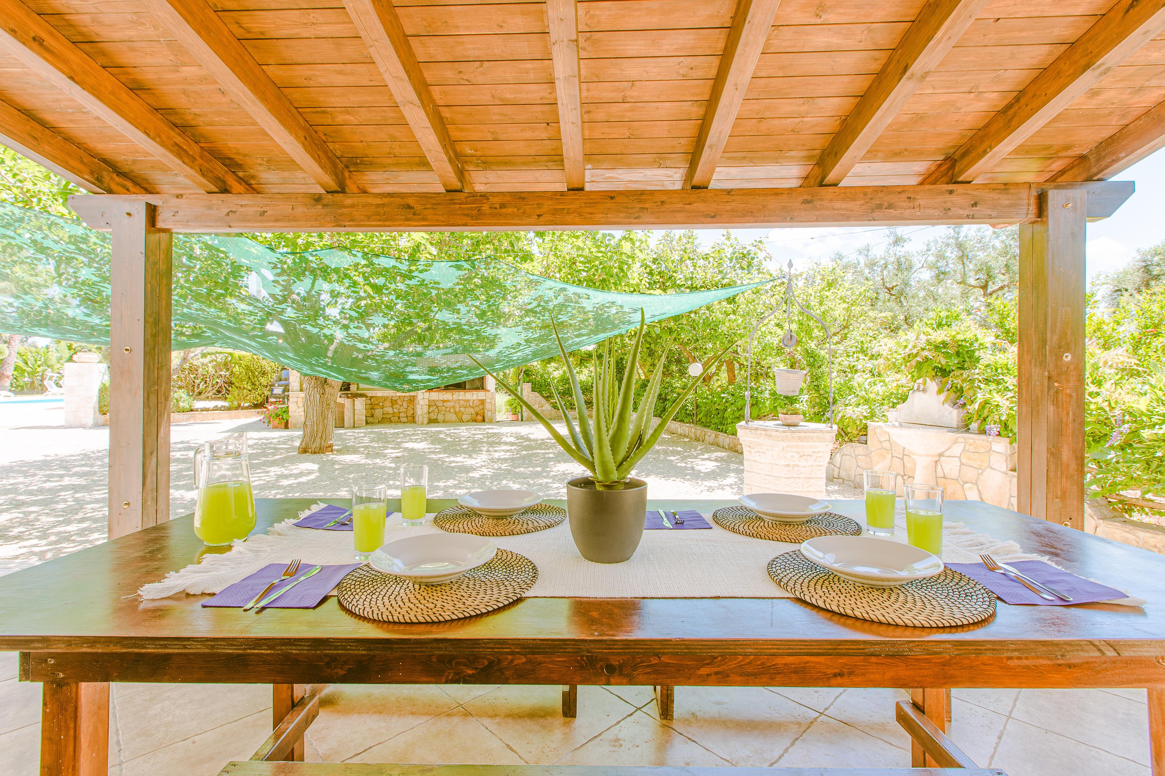Für Mahlzeiten im Freien gibt es zwei Veranden und drei Esstische