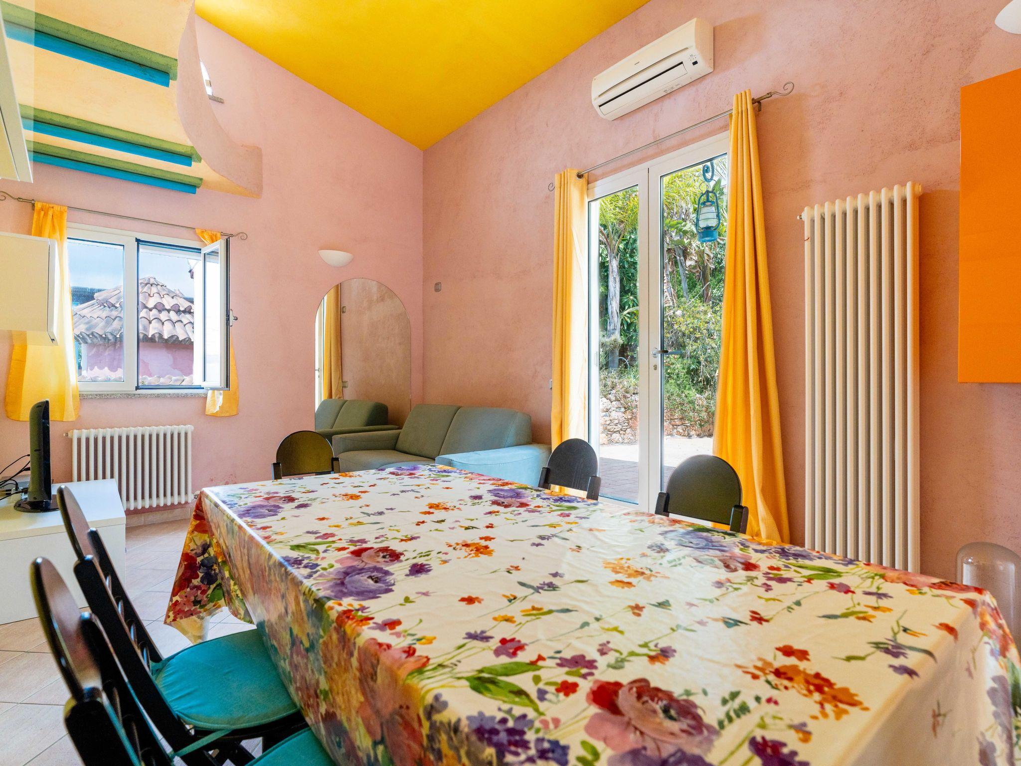 "Melograno", 3-room semi-detached house 100 m2, on the ground floor. Comfortable and cosy furnishings: living/dining room with 1 sofabed (140 cm, length 200 cm). Exit to the terrace. Kitchenette (oven, dishwasher, 4 gas rings). Exit to the terrace. Shower/bidet/WC. Gas heating, air-conditioning, forced-air heating. Heating available only from 01.11. to 15.04. On the lower ground floor: 1 double bedroom with shower/bidet/WC and TV. Upper floor: 1 double bedroom. Terrace 100 m2. Beautiful view of the sea and the resort. Facilities: washing machine, baby cot for up to 2 year olds, hair dryer. Internet (WiFi, free). Parking at the house. Please note: private entrance. IT008055B4B83W8L6J