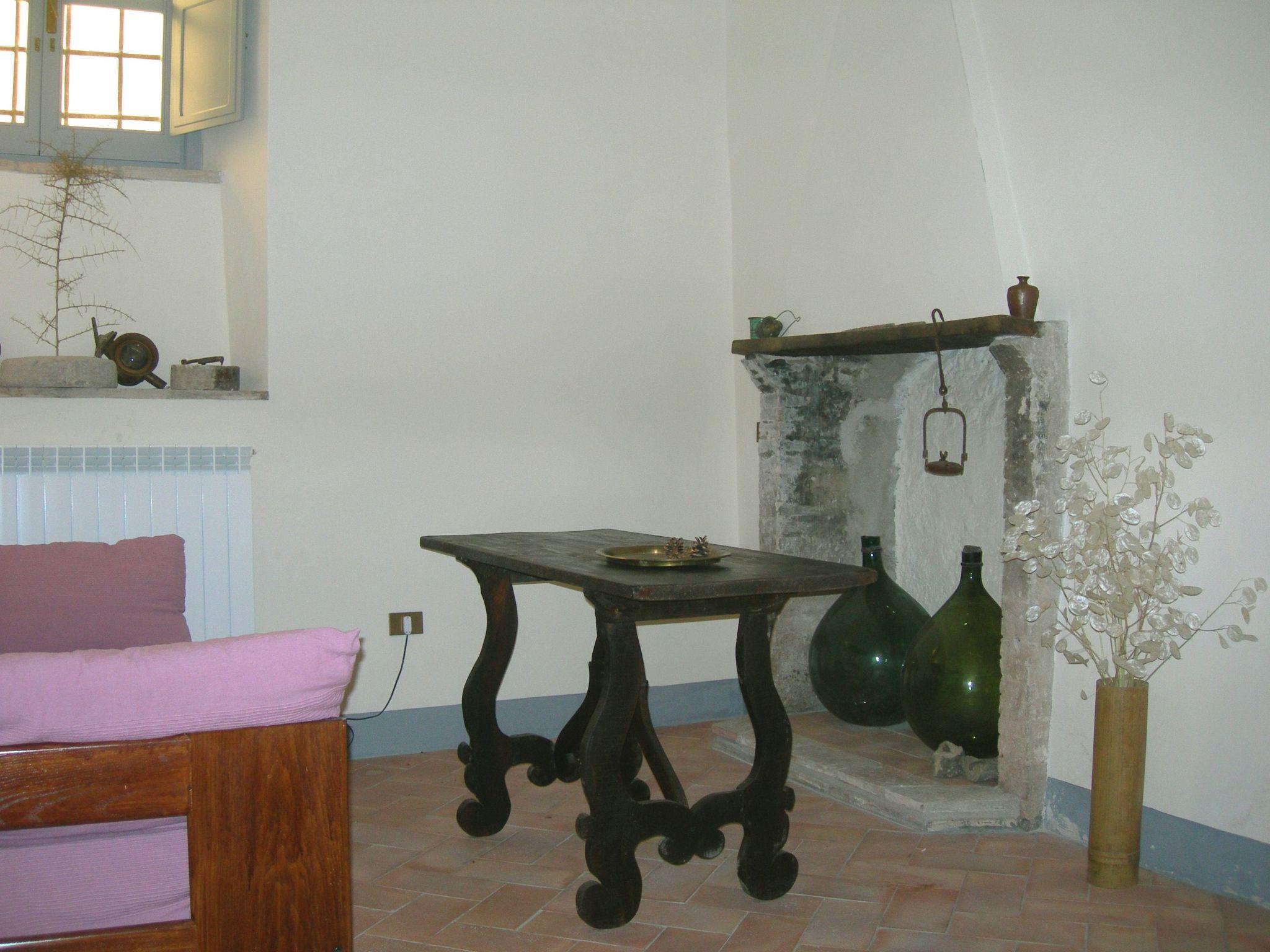 Palazzo Bufalini - The part destined for hospitality consists of a large flat, emphasising its ancient destination. The flat, which is located on the ground floor of the building, has been restored in keeping with tradition, but with modern criteria of hospitality and comfort, and is furnished with original period furniture and tools. The flat can accommodate six people, and comprises two bedrooms (one with a double bed, the other with two single beds, or one double bed), a living room with two comfortable sofas, a living room with kitchenette, and two bathrooms. TV system, Wi-fi Internet, washing machine, oven, hoover. The flat is provided with bed linen, towels and table linen.