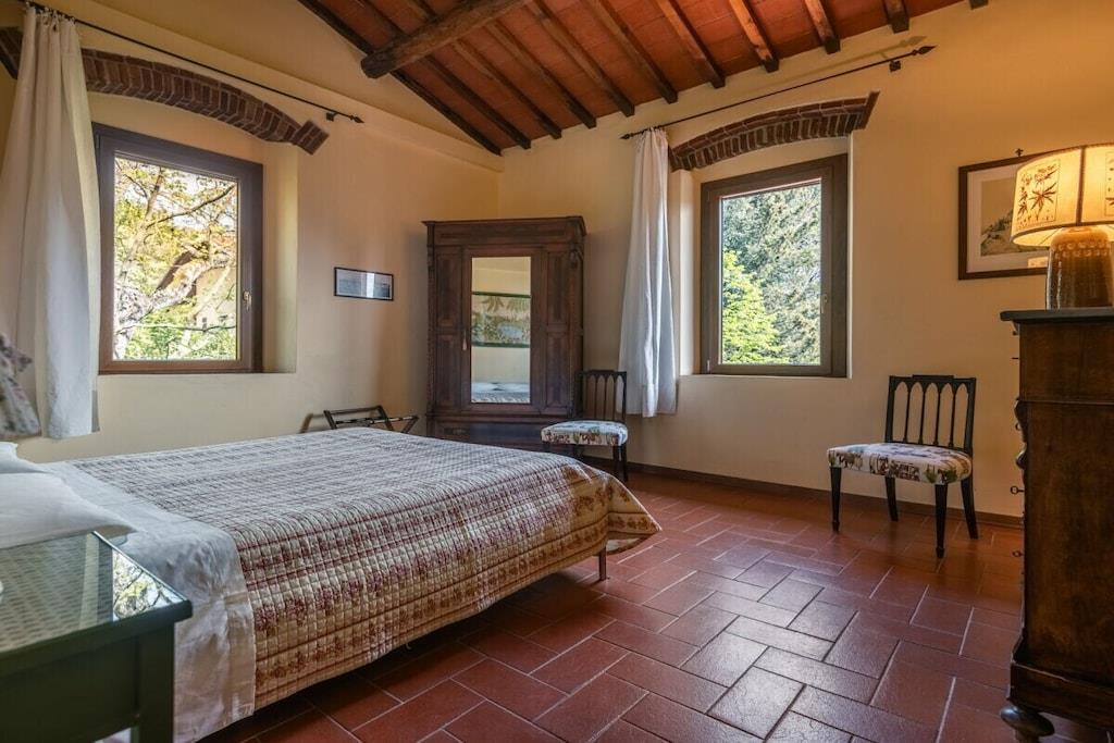 På 1. etage: (stue / spisestue(, tekøkken, Fjernsyn, spisebord, kakkelovn, elkedel, brødrister, kaffemaskine, ovn, grill, køleskab, fryser, klimaanlæg, insektnet), soveværelse(, , , dobbeltseng, insektnet), badeværelse(, toilet, bruser, håndvask, bidet, vaskemaskine, føntørrer)) Loft: (soveværelse(, , , , enkeltseng, enkeltseng, klimaanlæg, insektnet)) , Internetadgang, Førstehjælp, vaskemaskine, varme, have(, Grill center, Strand, Græsplæne, havemøbler, solstole, swimmingpool), parkering, cykler til rådighed, strygebræt, strygejern, tørreskab