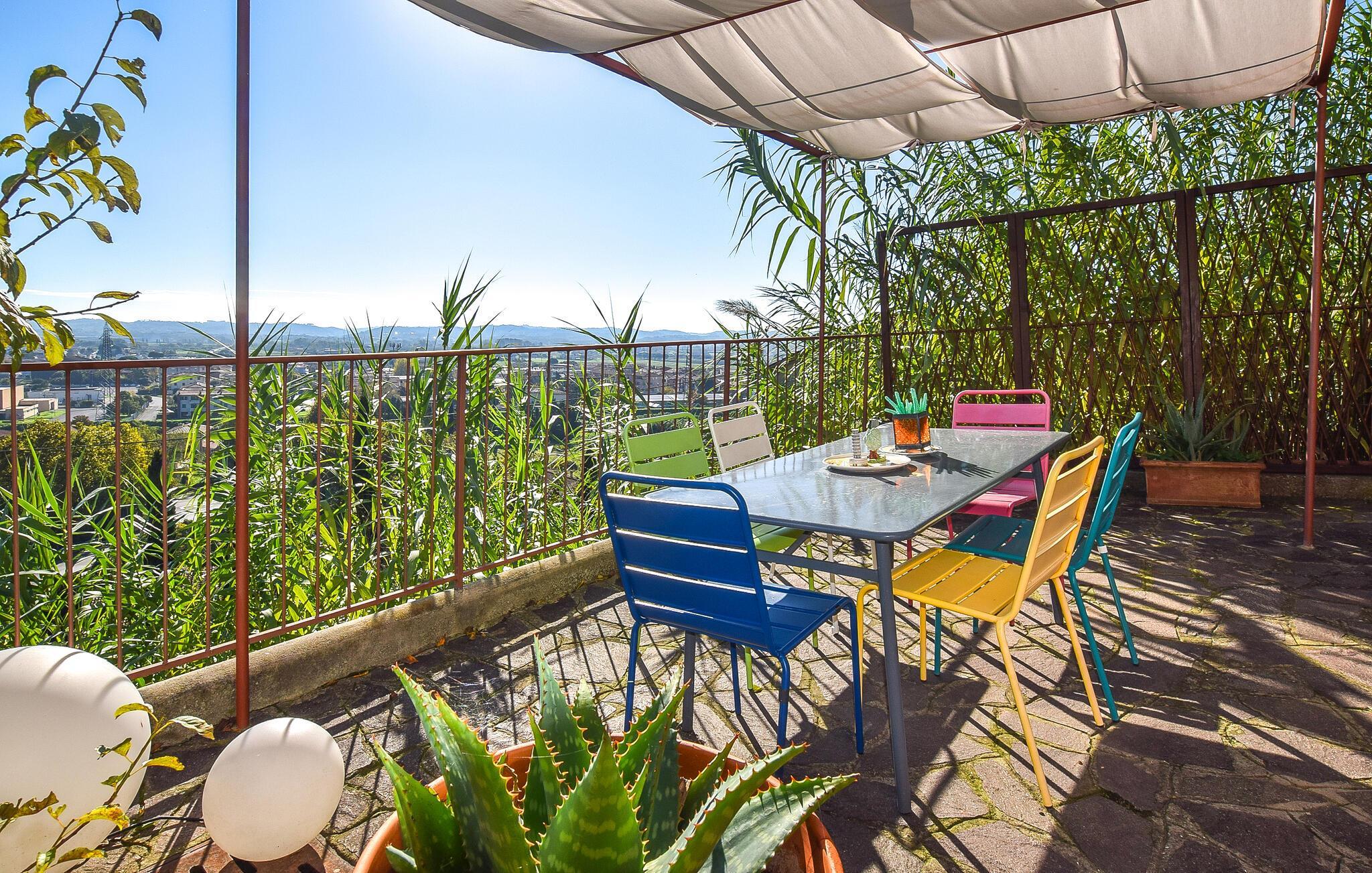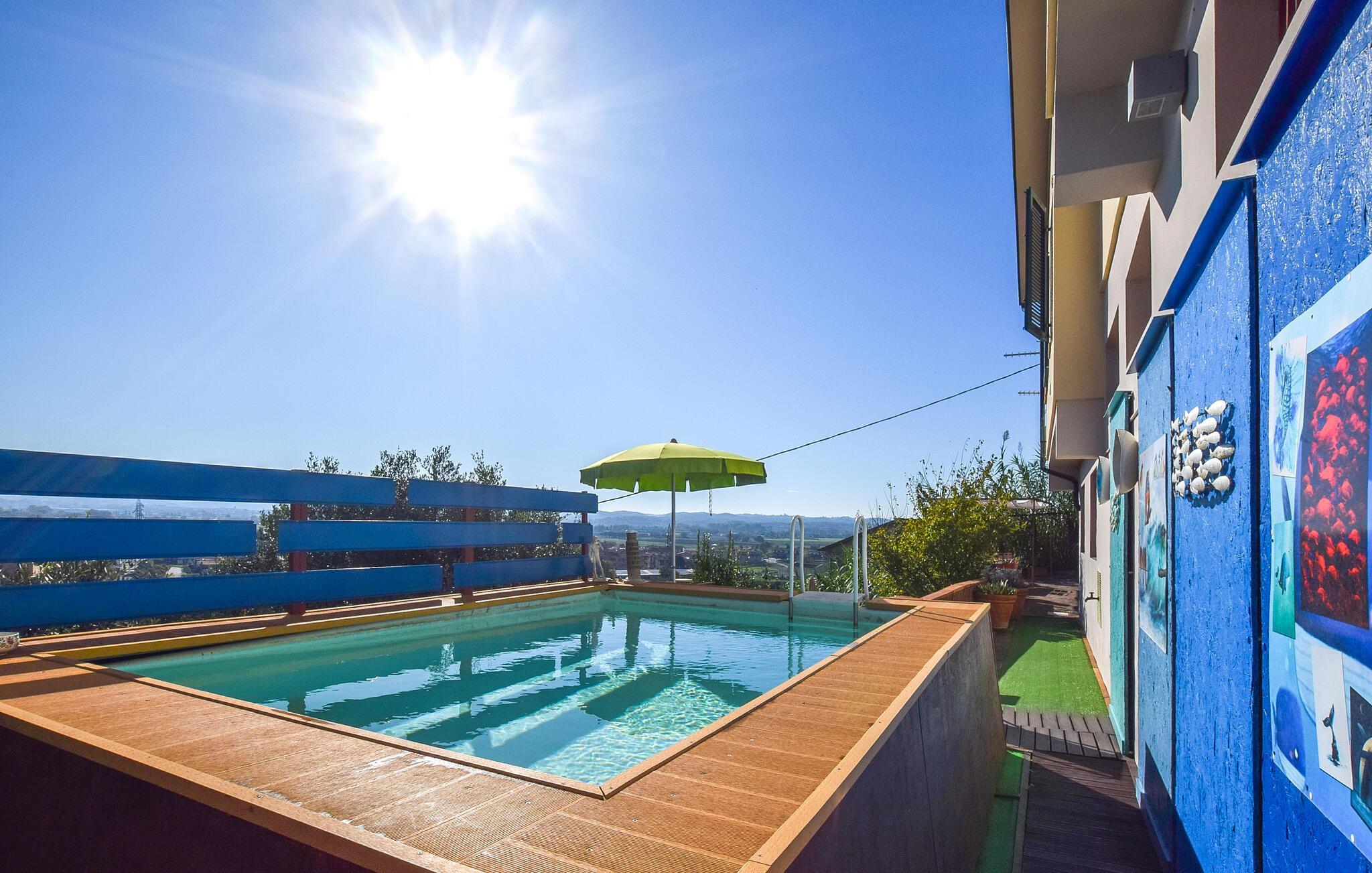 Jeres feriehus i Santa Maria a Monte er et skønt tilflugtssted, der vil overgå jeres forventninger til komfort og stil. Nyd den herlige pool, omgivet af hyggelige liggestole, perfekt til en afslappende eftermiddag i solen. Lad blikket glide over Toscanas grønne bakker, mens I slapper af på den rummelige terrasse. Start dagen med morgenmad på den solrige terrasse. Den livlige stue, indrettet med farverige møbler og moderne detaljer, lægger op til hyggelige aftener med familien. Her kan I nyde den varme atmosfære og tilbringe kvalitetstid sammen.