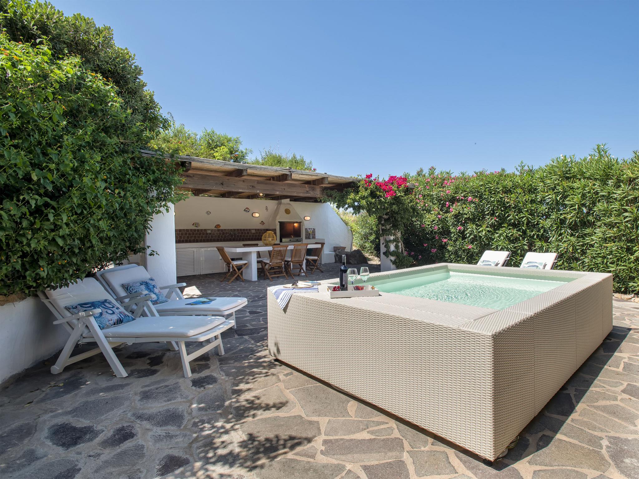 Cosy, comfortable house "Shardana". In the district of Baia Santa Reparata 3 km from the centre of Santa Teresa di Gallura, 700 m from the sea. Private: property 800 m2 (fenced), garden with lawn and trees, swimming pool (above ground) (3 x 2 m, depth 60 cm, seasonal availability: 01.May. - 31.Oct.). Outdoor shower. Motor access to 25 m from the house. Parking (for 2 cars) on the premises. Supermarket 3 km, restaurant 1 km, bar 1 km, bus stop 3 km, sandy beach "Santa Reparata" 700 m. Nearby attractions: Palau 28 km, La Maddalena island 38 km. Please note: car recommended. Object suitable for 4 adults + 2 children.