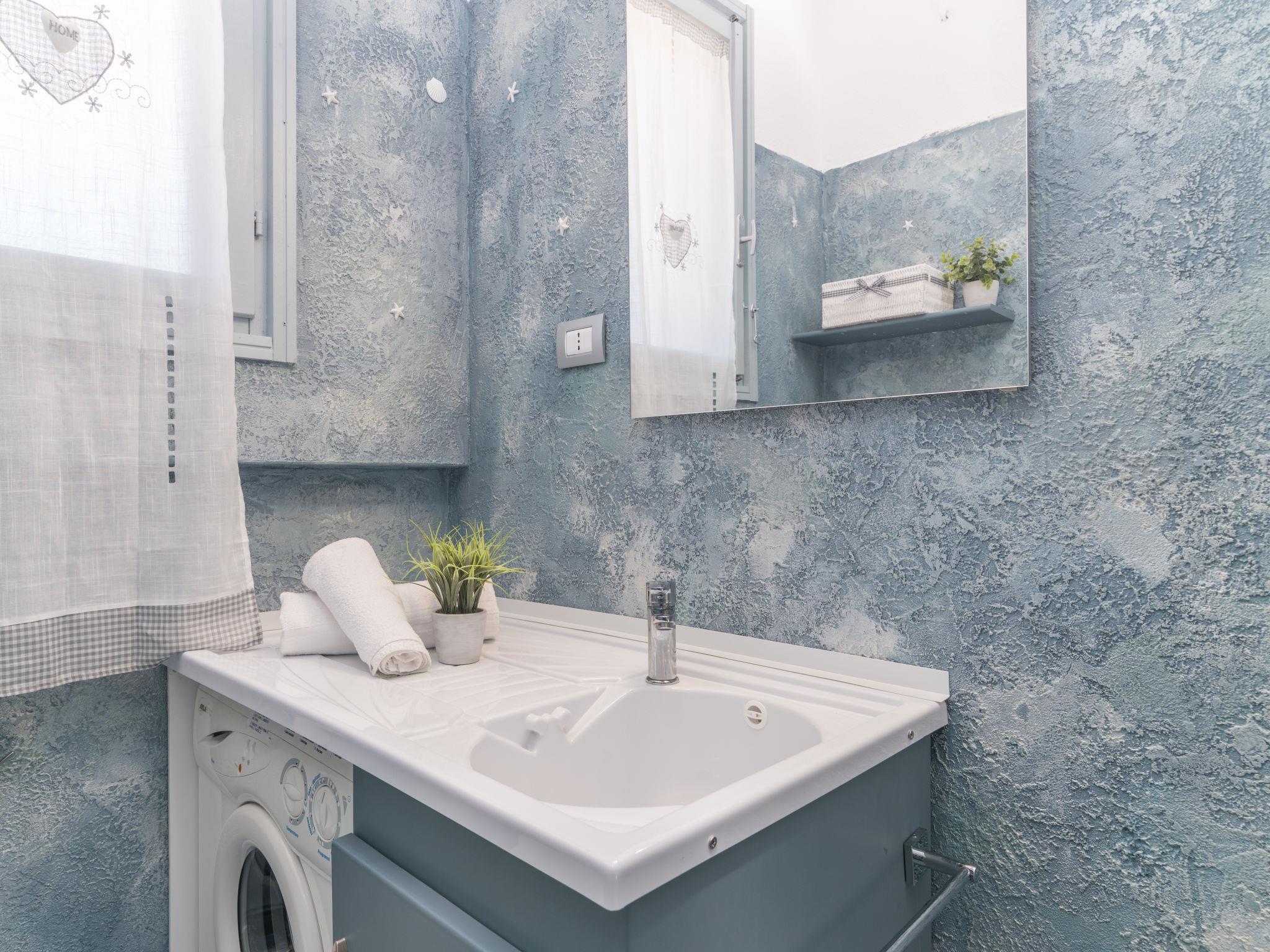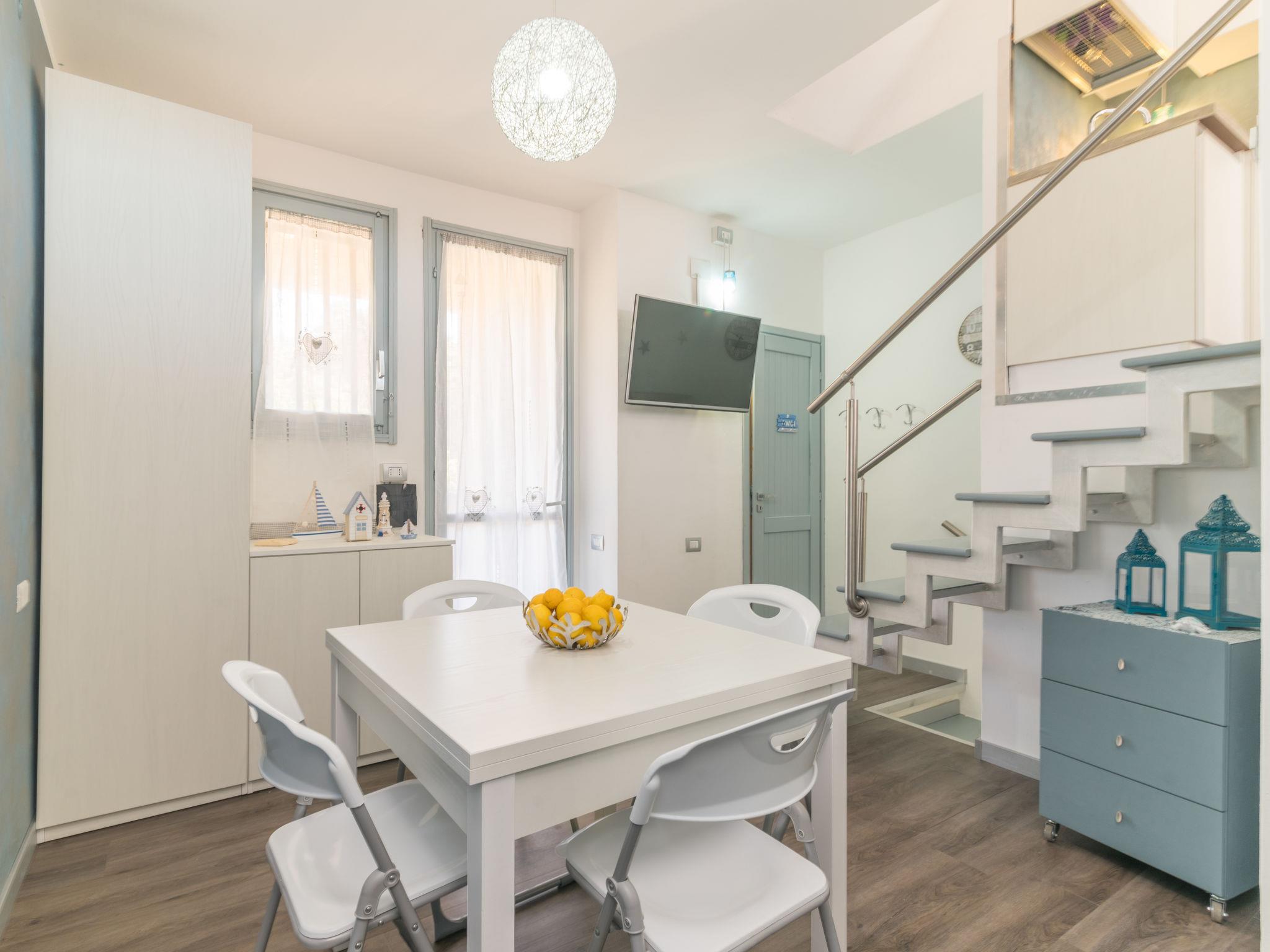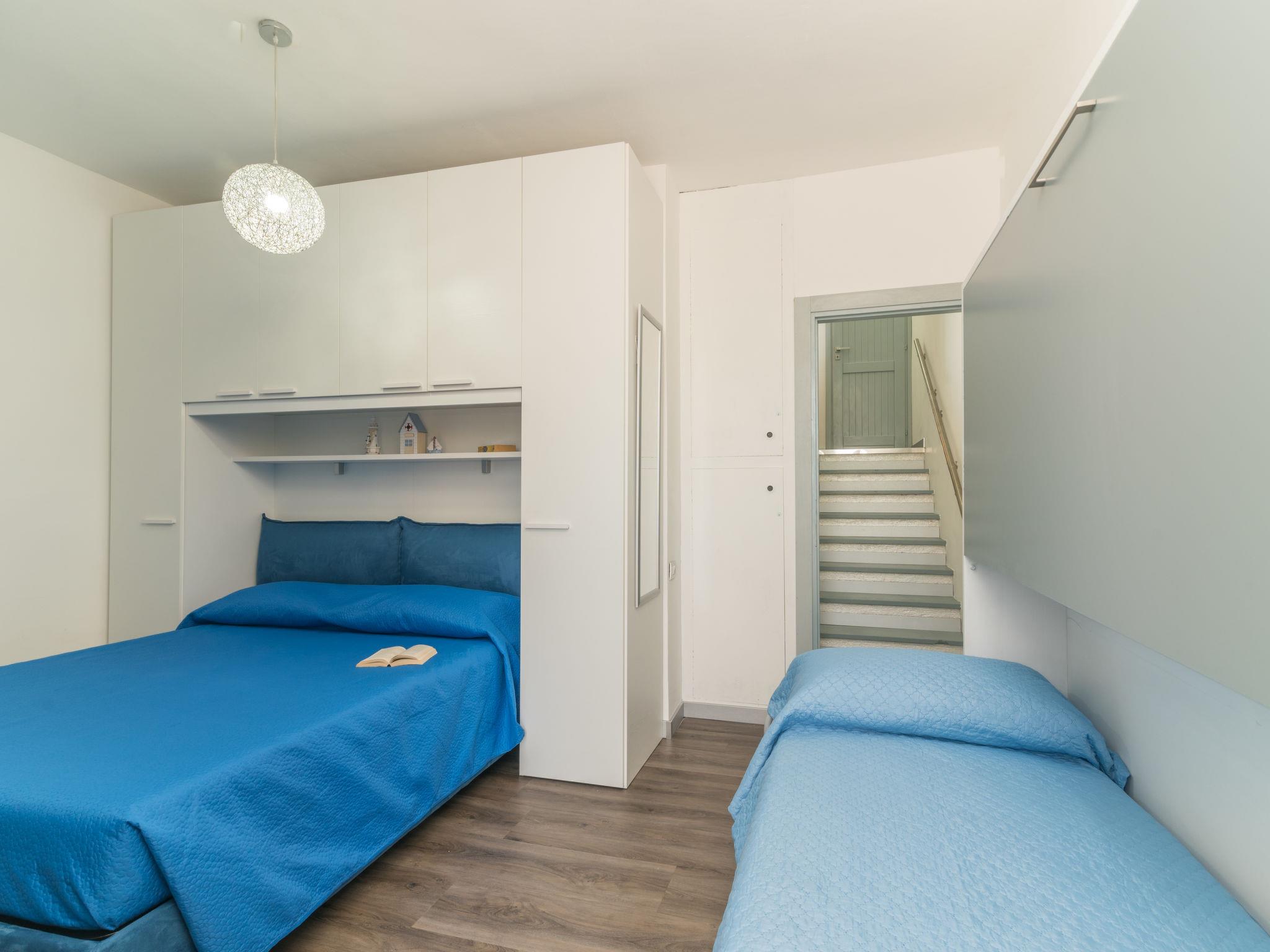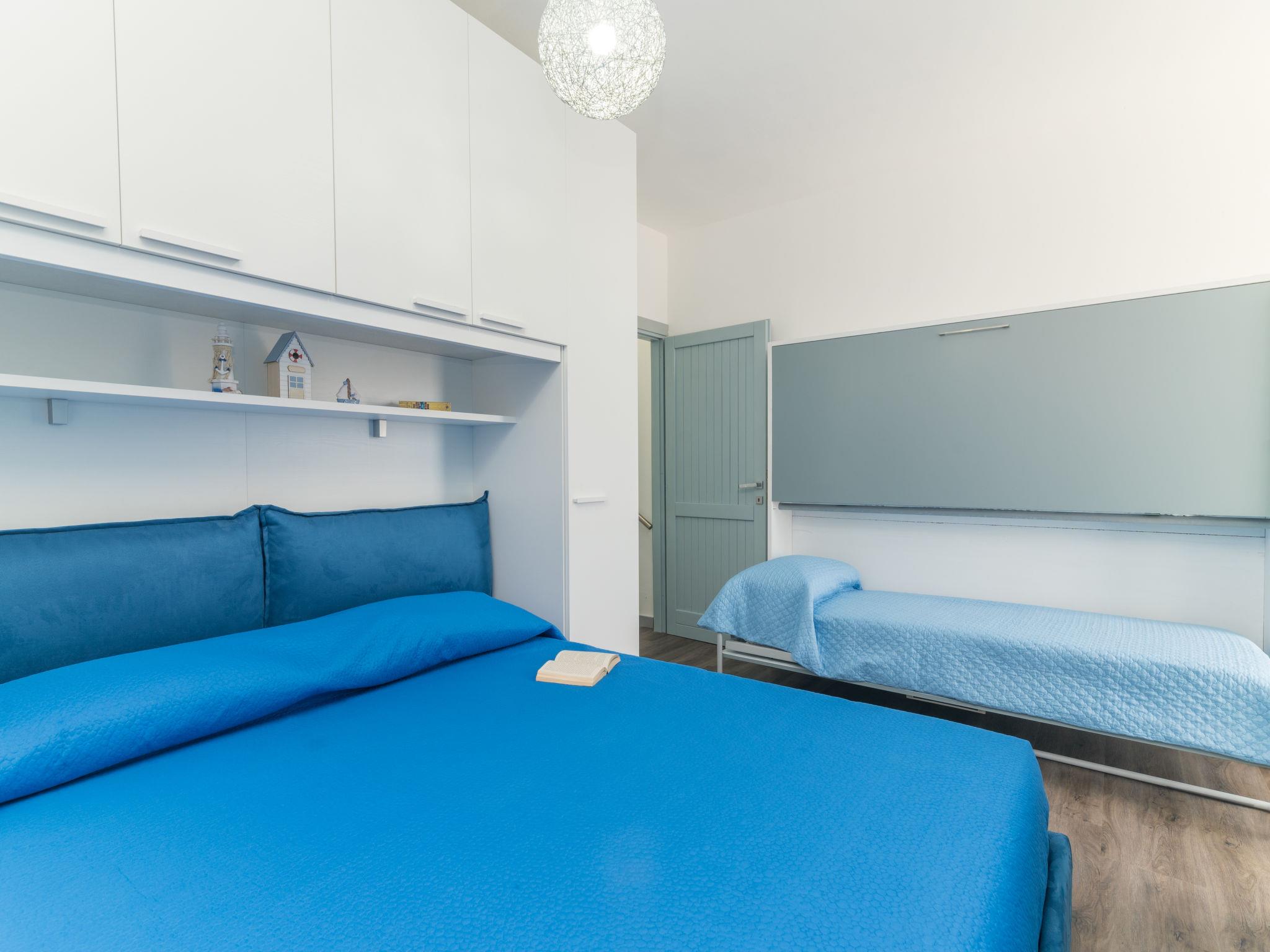 "Baia blu", 3-room apartment 45 m2 on 3 levels. Comfortable and cosy furnishings: living/dining room with satellite TV. Exit to the balcony. Shower/bidet/WC. On the lower ground floor: 1 room with 1 double bed, 2 wall-trunk beds and shower/bidet/WC. Exit to the balcony. Upper floor: open kitchen (4 induction hot plates, microwave, electric coffee machine). Exit to the terrace. No heating option. 2 balconies, terrace partly roofed, garden. Terrace furniture. Beautiful view of the sea and the countryside. Facilities: washing machine, iron, children's high chair, baby cot (extra), hair dryer. Please note: non-smoking house. When there are less than the maximum number of guests staying at the property, not all of the bedrooms will be available for use. IT090063C2000R3445