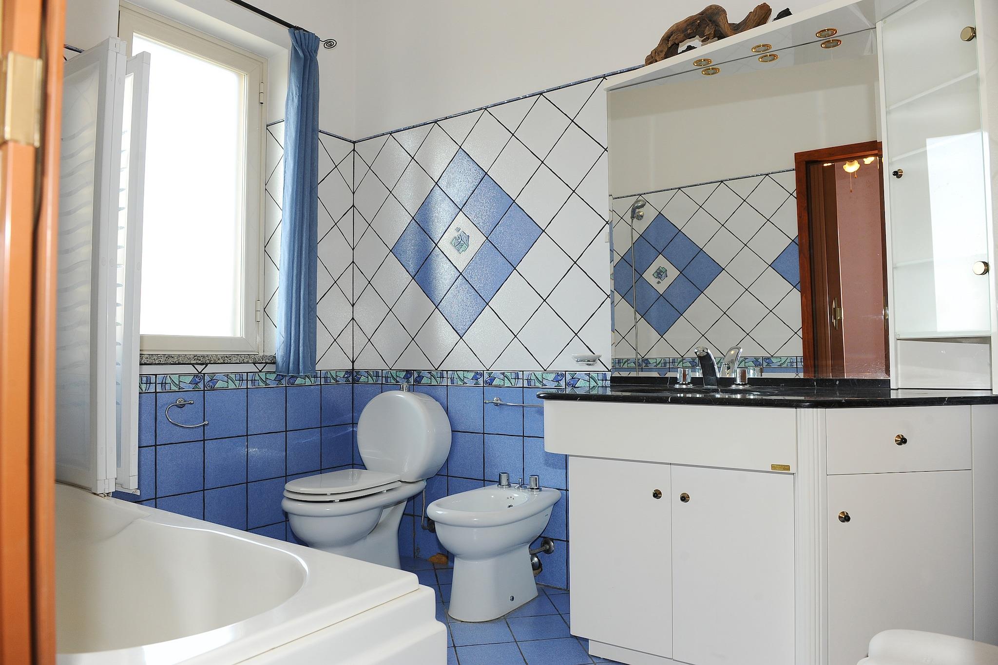 På 2. etage: (åbent køkken(kogeplade(Komfur med seks kogeplader), komfur, emhætte, espressomaskine, ovn, mikrobølgeovn, køle-fryseskab, vaskemaskine), stue / spisestue(spisebord), Soveværelse med badeværelse(dobbeltseng, bruser, håndvask, toilet, bidet, klimaanlæg), Soveværelse med badeværelse(dobbeltseng, badekar med bruser, håndvask, toilet, bidet, klimaanlæg), DVD-afspiller, radio, klimaanlæg, terrasse, strygebræt, strygejern) have, havemøbler, grill, parkering, swimmingpool(deles med andre gæster, 10 x 5 m.), Pladegrill