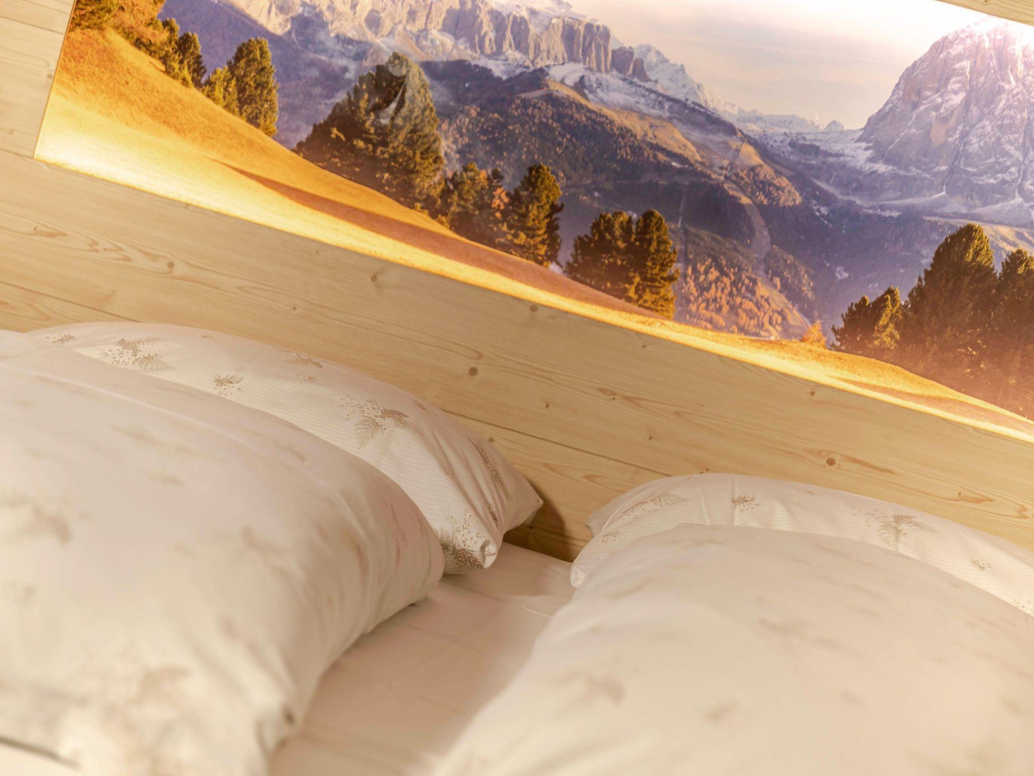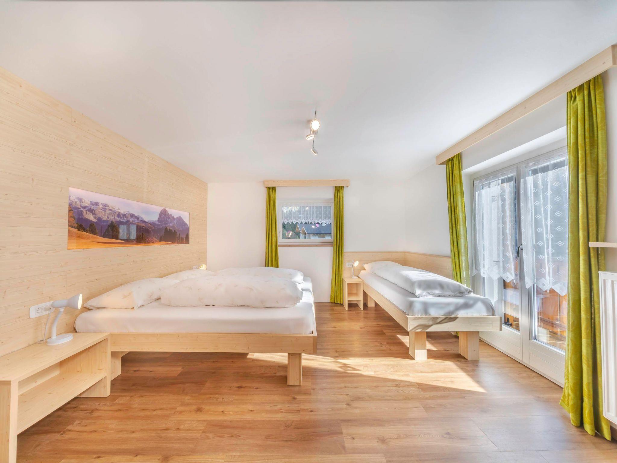 Surroundings and day trips: The house is surrounded by well-tended meadows. The forest is about 100 metres away. The small river is about 50 metres away. It has views of various mountains. There is a restaurant/pizzeria 300 metres from the house. The bus stop is 300 metres from the house. For sports enthusiasts: There are countless hiking trails to rustic huts, which start directly from the house. A ski trail to the valley station of the "Saslong" World Cup course, one kilometre away, and access to the famous Sellaronda with 500 ski slopes. Not far away is the cross-country skiing centre (2 km) Monte Pana to the Alpe di Siusi and Vallunga and the via ferrata, where you can go snowshoeing, tobogganing and ski touring. There is an indoor and outdoor swimming pool with sauna and wellness centre (6 km) nearby. There is also an indoor climbing centre, ice skating rink, tennis, bowling, billiards, horse riding, boccia and table tennis (in the house). For those interested in culture: there are concerts, traditional processions, folkloristic festivals and numerous events. In Selva di Val Gardena (1.5 km) there are shops, restaurants, apres ski and the ruins of Selva di Val Gardena in Vallunga. You can also visit Santa Cristina (1.5 km), Fischburg, the sundial on Monte Pana, the planet trail and the Tervela waterfall or the Christmas market. In Ortisei (6 km), with its picturesque town centre and inviting pedestrian zone, there is a folklore museum, the Unika Gallery, the Art 52 arts and crafts exhibition and you can take a round trip to the Dolomite passes. In Bressanone/Brixen (35 km) there is the Aquarena water park, the Imperial Palace with the Diocesan and Nativity Museum, the Pharmacy Museum, the cathedral and the cloister with late Gothic frescoes. In Bolzano (43 km) you can visit the Dominican Church built around 1270, the Ötzi Museum, the Archaeological Museum, Runkelstein Castle with frescoes from the 14th and 15th centuries, the Talfer Promenade, the Messner Mountain Museum, the Thuniversum and the fruit market. A little further afield you will find the warm bathing lakes of Montiggler See (60 km) and Kalterer See (71 km) as well as Merano (74 km) with the gardens of Trauttmannsdorf Castle, the Touriseum (Museum of Tourism); Rametz Castle with wine tastings, the castle cellar tour and the museum, as well as the Merano Thermal Baths and the spa promenade. From the flat you can also reach the following destinations: Lake Garda (140 km), Innsbruck/Austria (115 km): worth seeing here are the Alpine Zoo (the highest zoo in Europe), the Cathedral of St. Jakob, the Grassmayr bell foundry, Ambras Castle, the Golden Roof, the Berg Isel ski jump, the shopping centres and the casino.