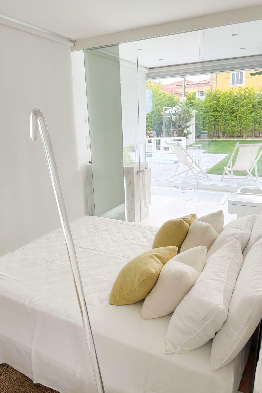 Transparent sleeping area communicating with the garden