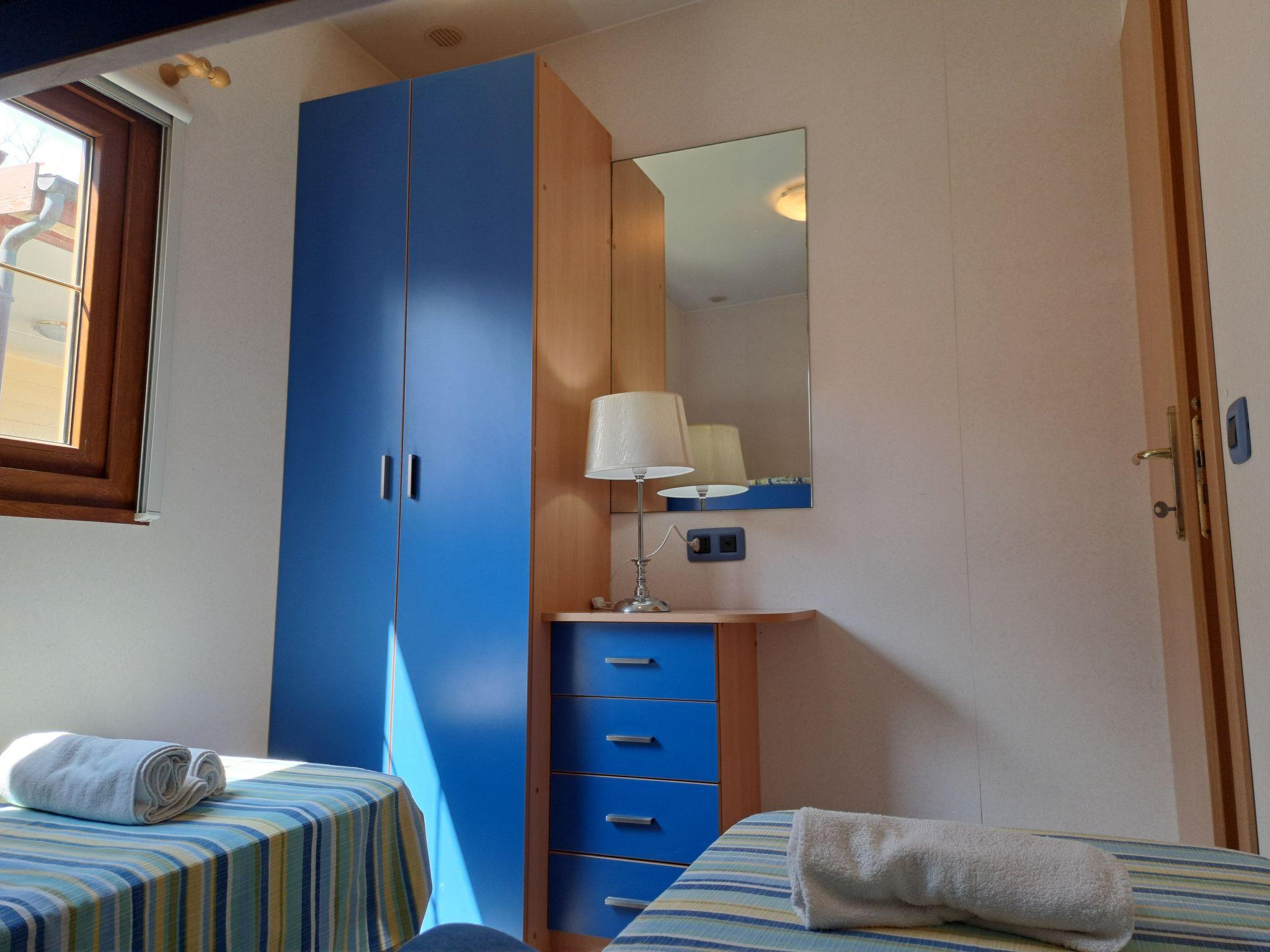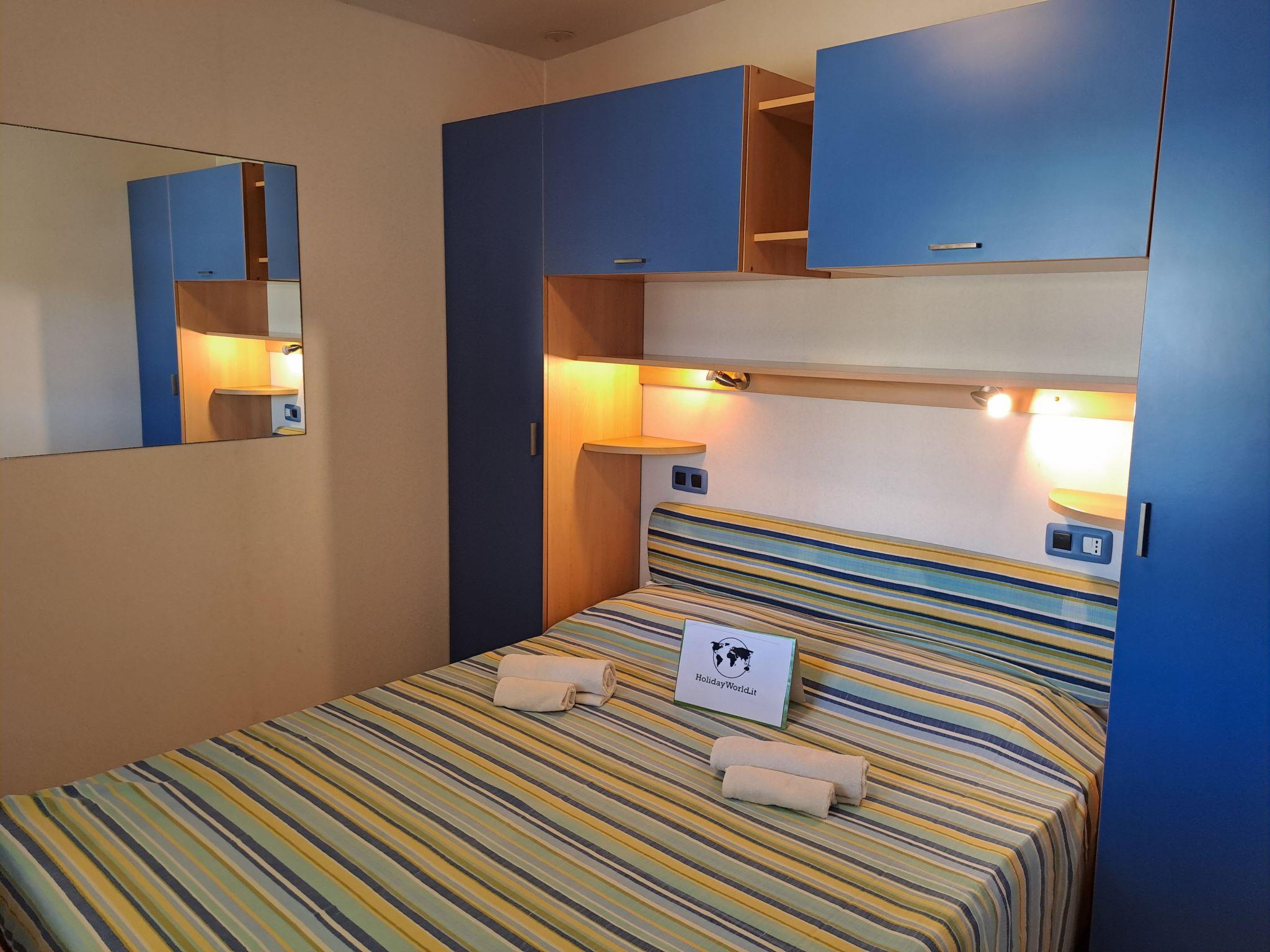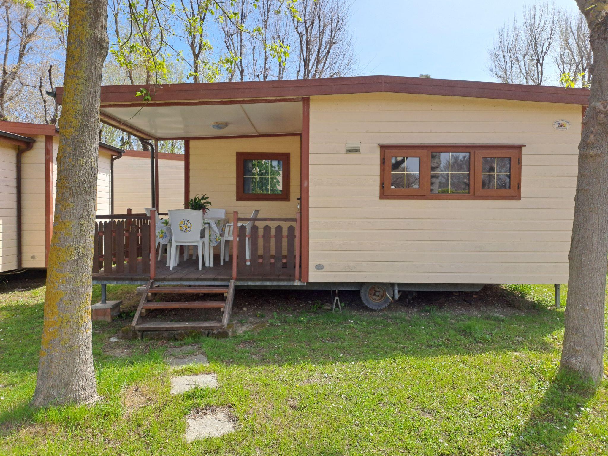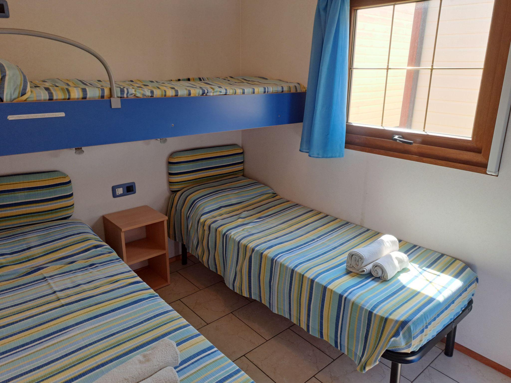Spiaggia d'oro is a cosy and functional house located within a well-organised campsite along the Adriatic coast of Senigallia, in a quiet and easily accessible area. The interior of the house offers a simple and functional atmosphere, designed to guarantee maximum comfort during your stay. At the entrance, a private veranda furnished with a table and chairs welcomes guests, offering an ideal space for outdoor dining or relaxing moments. The interior features a well-organised living room with a fully equipped kitchenette, a comfortable corner sofa, a dining table, a refrigerator and a TV, creating a cosy environment for leisure and conviviality. The sleeping area is divided into two bedrooms: a double room with a bridge wardrobe and chest of drawers and a twin room with a transverse bunk bed, complete with wardrobe and chest of drawers. The private bathroom is equipped with a comfortable shower. The house is air-conditioned thanks to a hot/cold heat pump, with the possibility of adding air conditioning at an extra charge. The interior of the cottage is designed to offer a practical and comfortable holiday in a peaceful environment, ideal for families, couples or small groups.