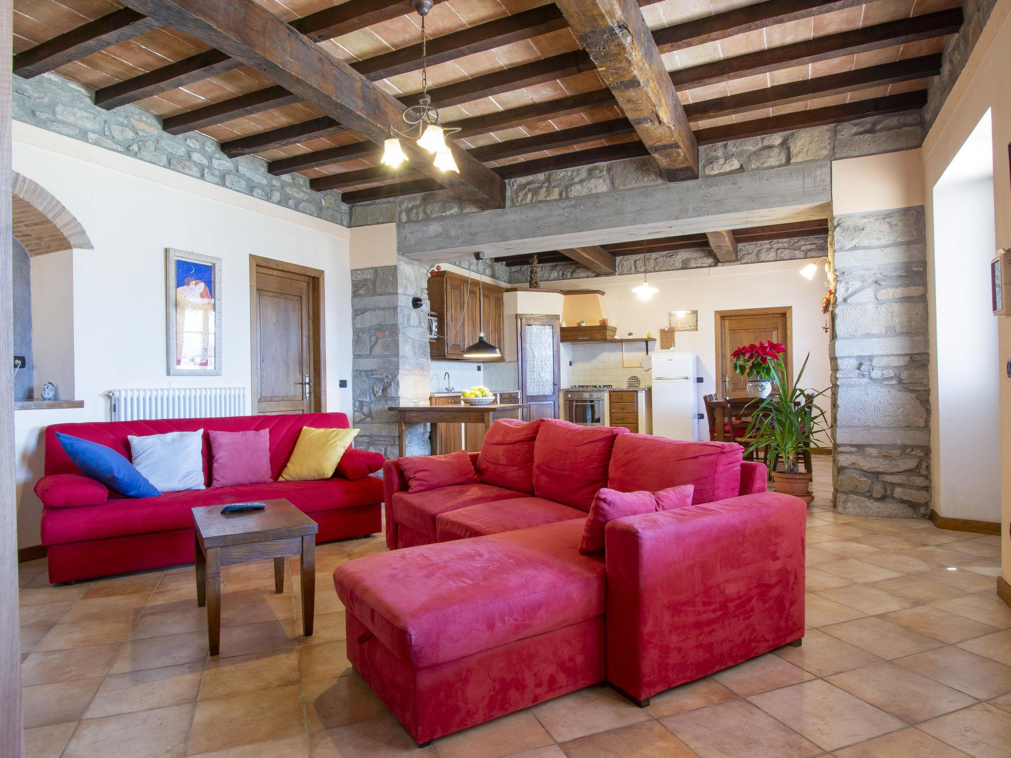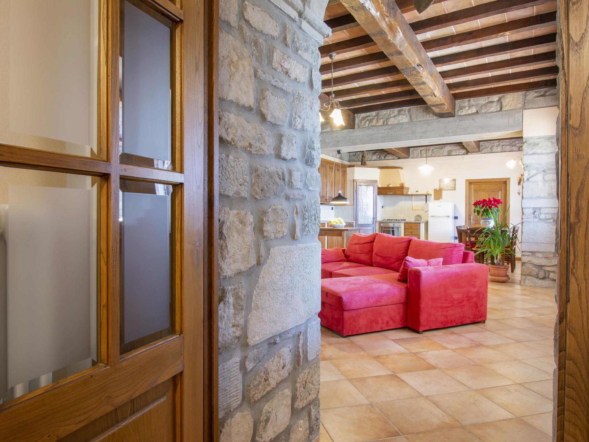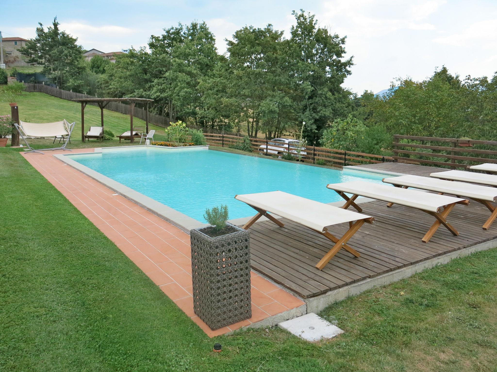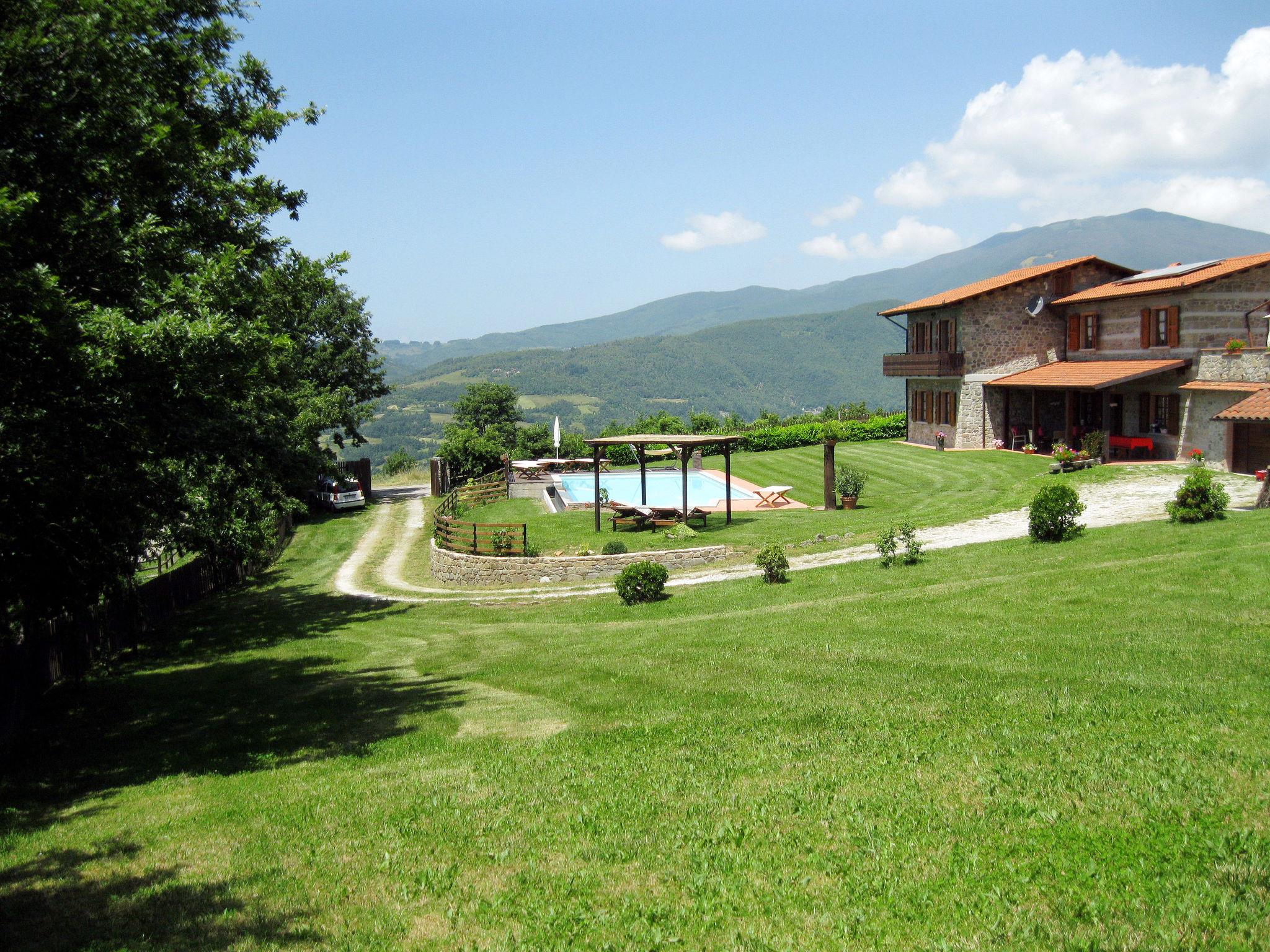Comfortable country house "Il Girasole", 820 m a.s.l.. 2 apartments in the property. On the outskirts, 400 m from the centre of Caprignana, in a sunny, elevated position, 62 km from the sea, in the countryside. For shared use: property 2'800 m2 (fenced), garden lawn. Barbecue. Private: swimming pool (12 x 6 m, depth 140 - 140 cm, seasonal availability: 15.May. - 30.Sep.). Outdoor shower, parking (for 2 cars) on the premises. Shop 300 m, supermarket 4 km, restaurant, bar 350 m, bus stop 5 km, sandy beach "Forte dei Marmi" 62 km. Walking paths from the house 3.5 km. Nearby attractions: Castelnuovo di Garfagnana 17 km, Parco delle Alpi Apuane 34 km, Lucca 60 km, Pisa 80 km, Mountain-bike 3.5 km. Hiking paths: Parco dell' Orecchiella 7 km. Please note: car recommended. Baby equipment on request (included). The owner lives on the same property.