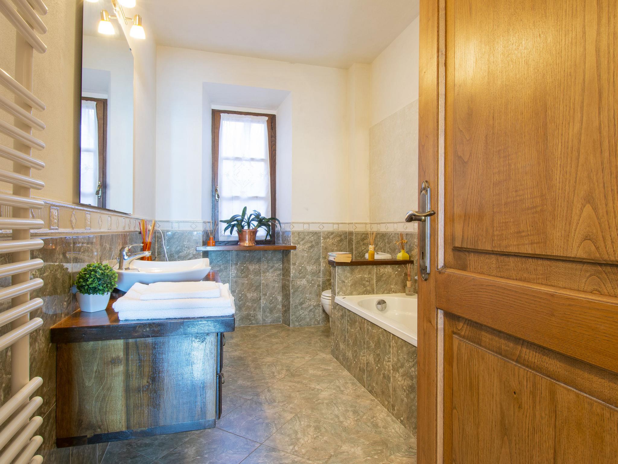 4-room apartment 100 m2, on the ground floor. Object suitable for 6 adults + 2 children. Comfortable furnishings: living room with 1 double sofabed, open-hearth fireplace, dining table and TV. Exit to the loggia. 1 double bedroom. 1 double bedroom with shower/bidet/WC. 1 room with 2 beds (80 cm). Open kitchen (4 hot plates, oven, dishwasher, toaster, microwave, electric coffee machine) with dining table. Exit to the loggia. Bath/shower/bidet/WC. Wood heating (extra). Parquet floors. Patio roofed. Terrace furniture. Very beautiful panoramic view of the mountains. Facilities: washing machine, mosquito net, baby cot for up to 2 year olds. Internet (WiFi, free). Please note: suitable for families. Non-smokers only. Private entrance. No mandatory extra charges to be paid on-site except for local tax. IT046027C2CRZUZG6X