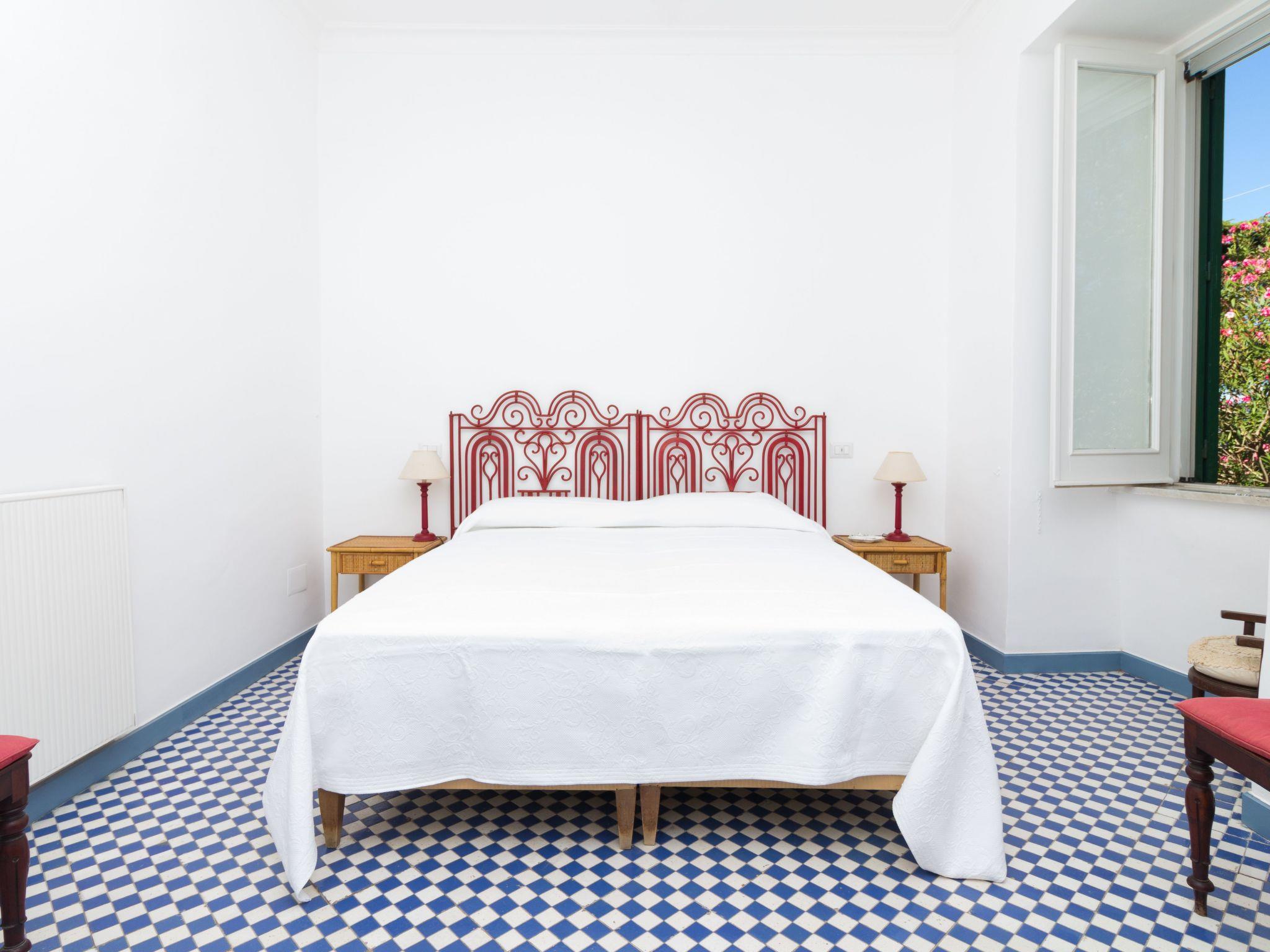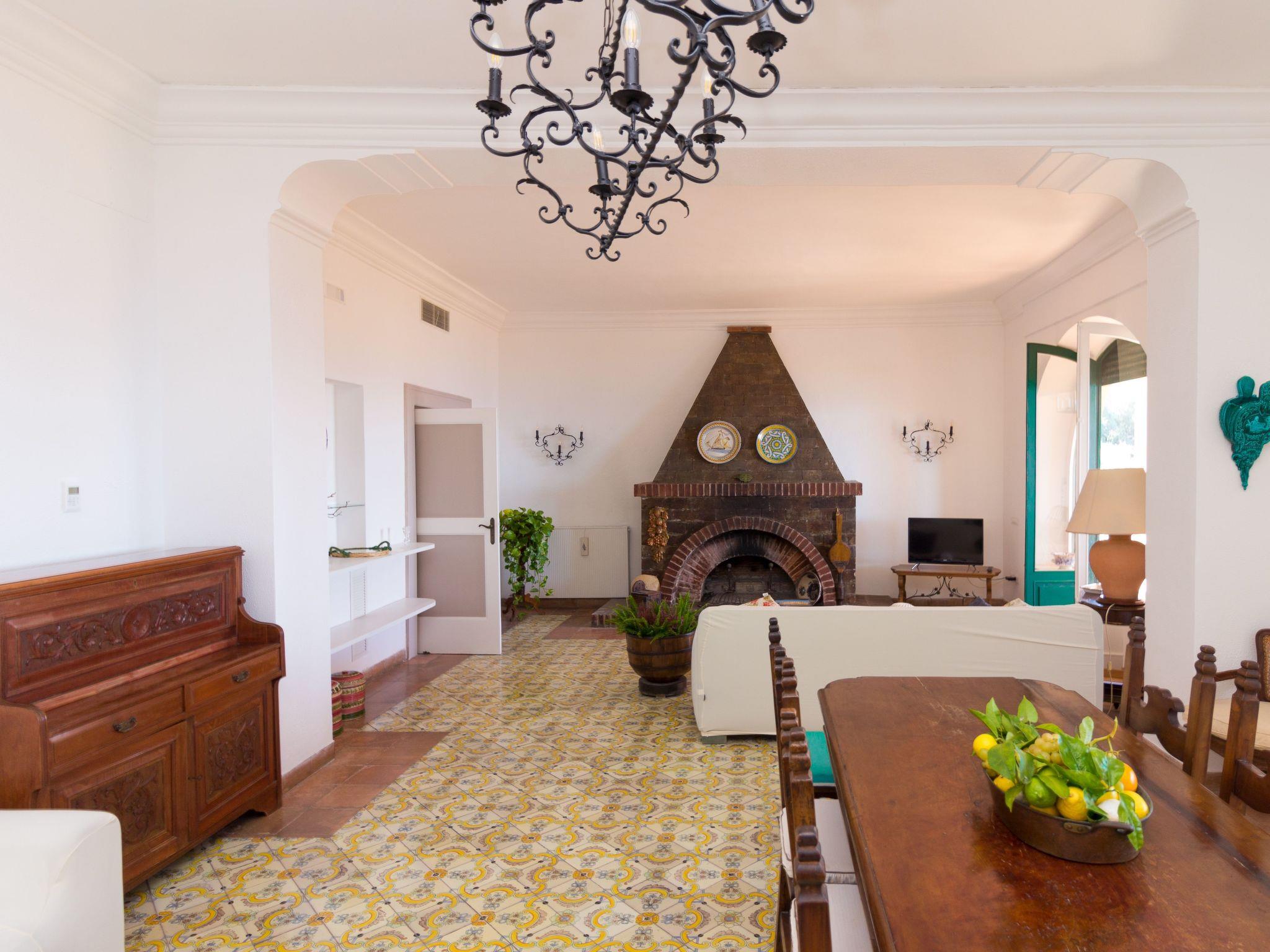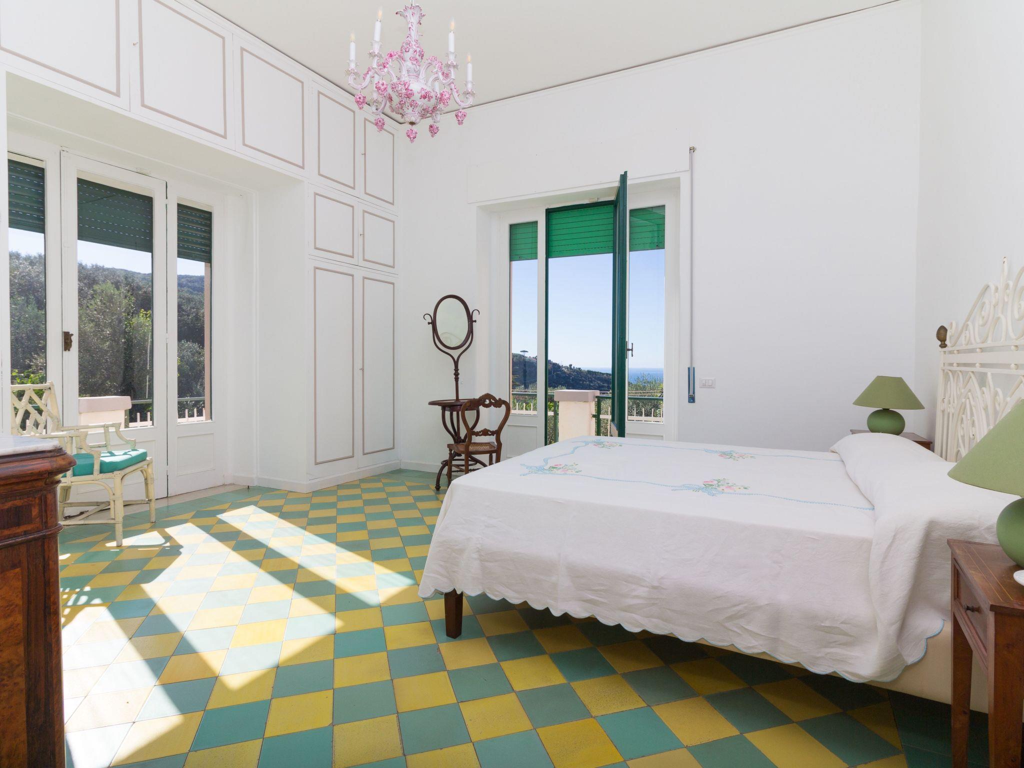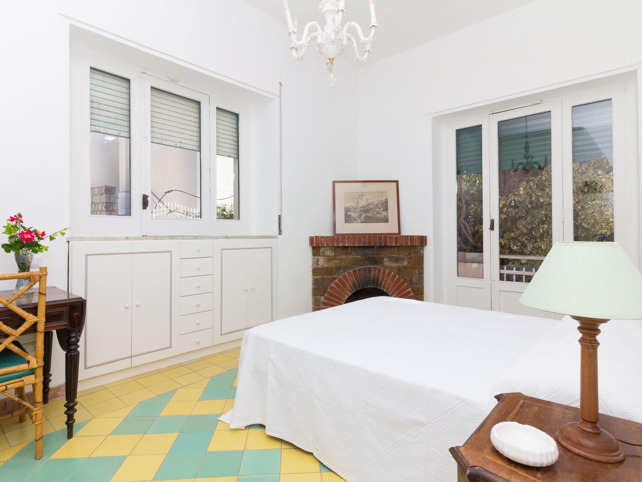 Casa Fiorita was built at the beginning of the 19th century in the typical style of Sorrento mansions. Its restoration in 1960 merged past and present: period furniture and Sorrentine craftsmanship blend with modern comforts. The living area opens onto the terrace, furnished with comfortable sofas, TV and a grey tuff fireplace. The dining room, located in the same large open space, can accommodate 9 people. The large kitchen is equipped with everything you need to prepare meals independently. It is equipped with a fridge with freezer, oven, hob, Neapolitan coffee machine, kettle and toaster. There is also a dishwasher and washing machine. The villa can accommodate up to 9 people in 4 bedrooms with double beds (or two single beds), each with a wardrobe, air conditioning and a private bathroom with shower, bidet and hairdryer. Only one of the bedrooms (with its bathroom) is located on the upper floor, accessible via a spiral staircase. This room has two French beds and a small private roof terrace. A sofa bed is available in the living area. Wi-Fi is available in all rooms and public areas. All described areas are for the exclusive use of guests.