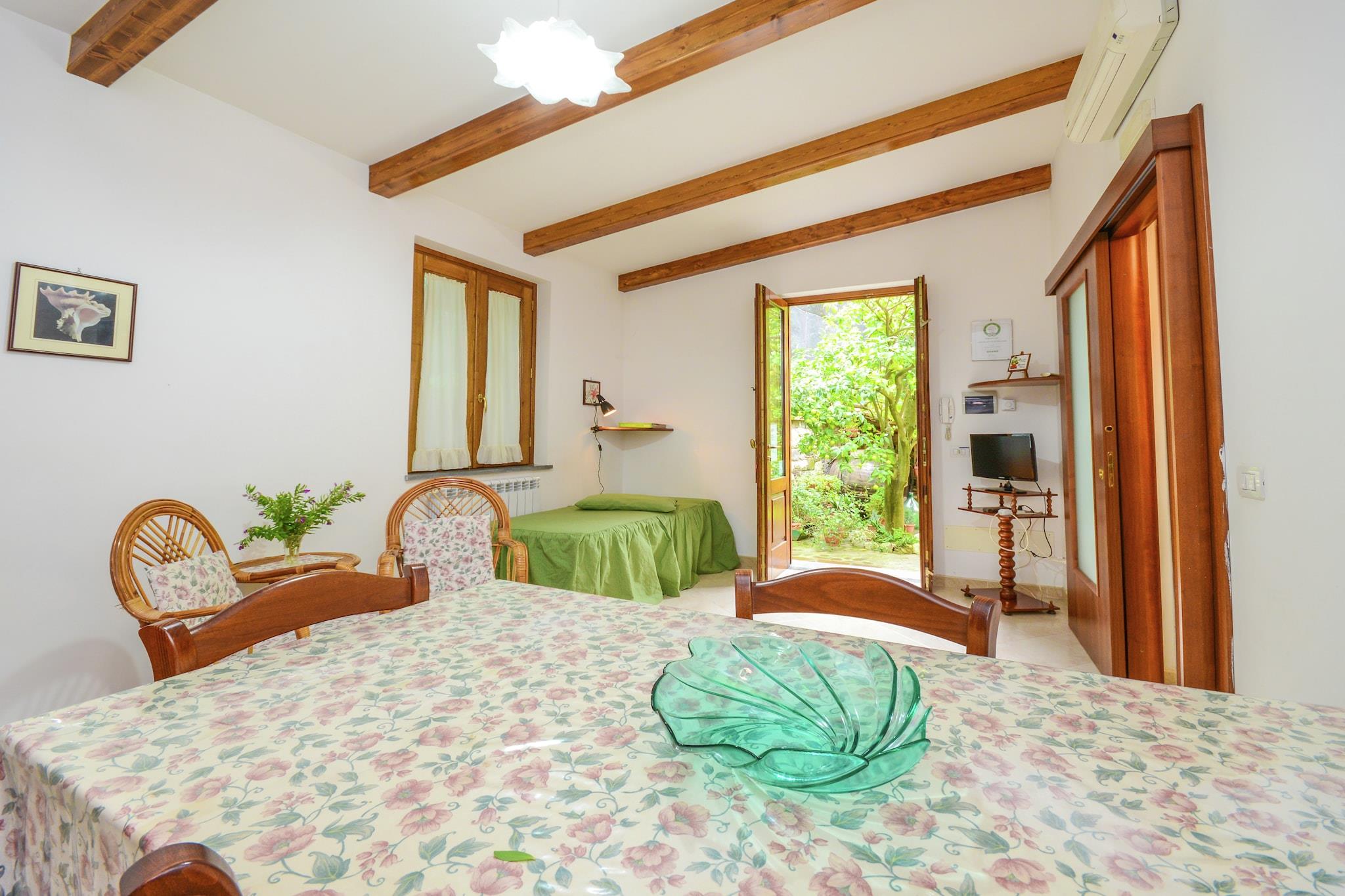 Elegant oase i Sorrento Beliggende i Sorrentos fortryllende gader tilbyder dette charmerende palæ en fredelig tilflugtssted, samtidig med at det bevarer kort afstand til det pulserende bycentrum. Med et smagfuldt indrettet interiør og en frodig fælles have kan gæsterne slappe af i en rolig atmosfære omgivet af duften af citruslunde og den bløde havbrise. Den skyggefulde have er perfekt til afslappet morgenmad eller aftenafslapning, og betænksomme detaljer, såsom en kaffemaskine af høj kvalitet og aircondition, gør ethvert ophold behageligt. Uanset om du nyder de fredelige omgivelser eller forbereder dig på en dag med udforskning, er dette hjem din hyggelige base i Sorrento. Udforsk kystvidundere Sorrento er en perfekt blanding af skønhed og historie, dramatisk placeret over Napolibugten. Udforsk de charmerende gyder i det historiske centrum, beundr panoramaudsigten fra Villa Comunale, eller hop på en båd til Capri eller Positano. For kulturel fordybelse kan du besøge Museo Correale eller tage en naturskøn togtur til Pompeji og Herculaneum. Nærliggende strande som Marina Grande tilbyder klart vand og maleriske omgivelser, mens udsigtspunkter fra klipperne fremviser regionens uforglemmelige solnedgange. Middelhavets smagsoplevelser venter Forkæl dig selv med den rige kulinariske scene, som Sorrento har at byde på, med autentiske trattoriaer og fine restauranter kun få minutter væk. Spis på Ristorante L’Antica Trattoria for en romantisk atmosfære og traditionelle retter, eller prøv Il Buco, en Michelin-stjernet perle, der tilbyder moderne italiensk køkken. For en lokal favorit serverer Da Emilia i Marina Grande frisk fisk og skaldyr lige ved strandpromenaden.